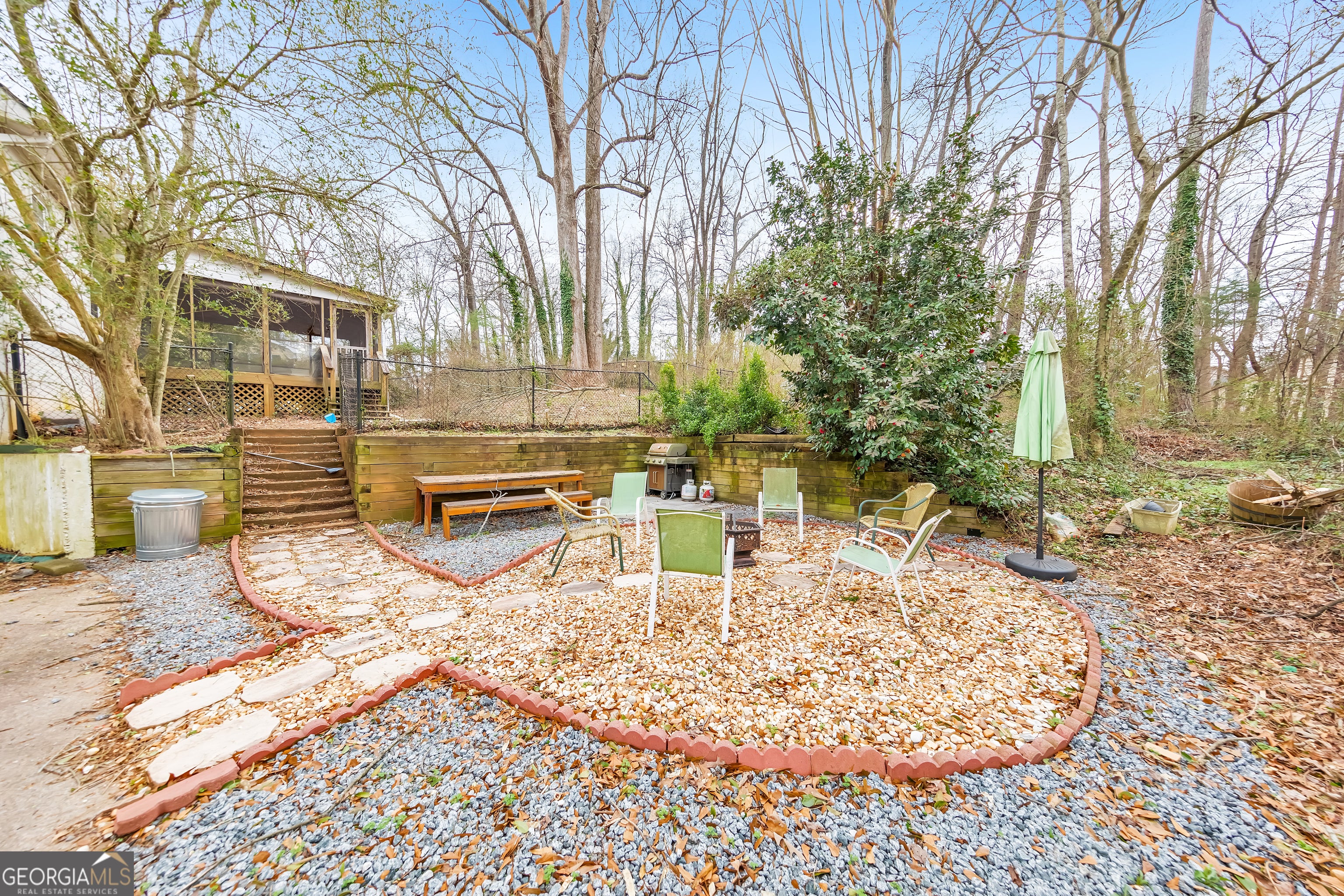 Welcome to this charming 4 bed / 3 bath East Cobb home tucked away in a quiet neighborhood. Step inside to an inviting living room with a gas log fireplace that flows into a kitchen equipped with stainless steel appliances, white cabinetry, and a laundry closet with washer and gas dryer. A main-level bedroom and full bath offer an easy option for family and guests. Upstairs, two spacious bedrooms share a hall bath with a new toilet. The finished lower level offers updated flooring and versatile space that is ideal for an in-law suite with its own living room, kitchenette, and bedroom with a walk-in closet and updated full bathroom. Enjoy relaxed outdoor living on the screened-in porch overlooking a partially fenced backyard. Beyond the fenced area, you'll find a cozy fire pit space along with a storage shed for tools or lawn equipment. Upgrades include updated windows and a four-year-old roof. With shopping, dining, and schools close by, this home offers an ideal blend of convenience and everyday comfort.