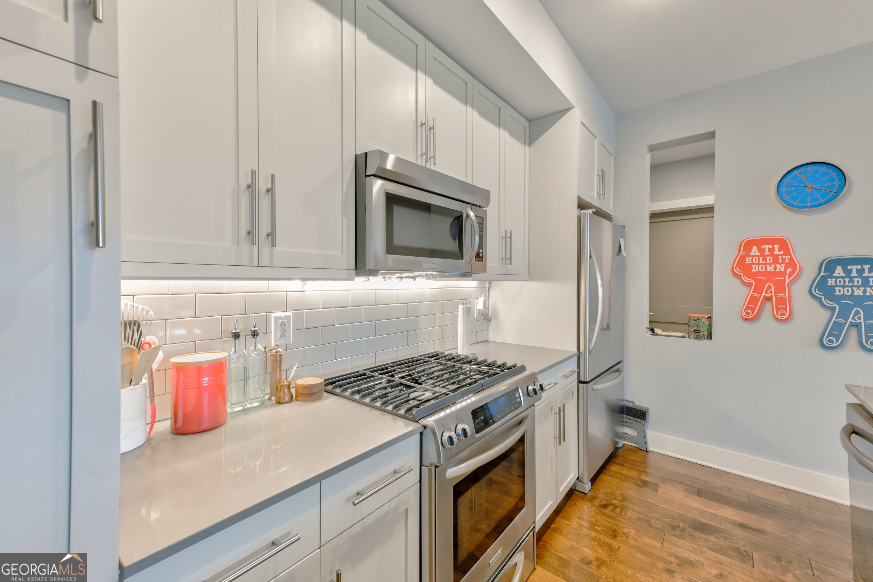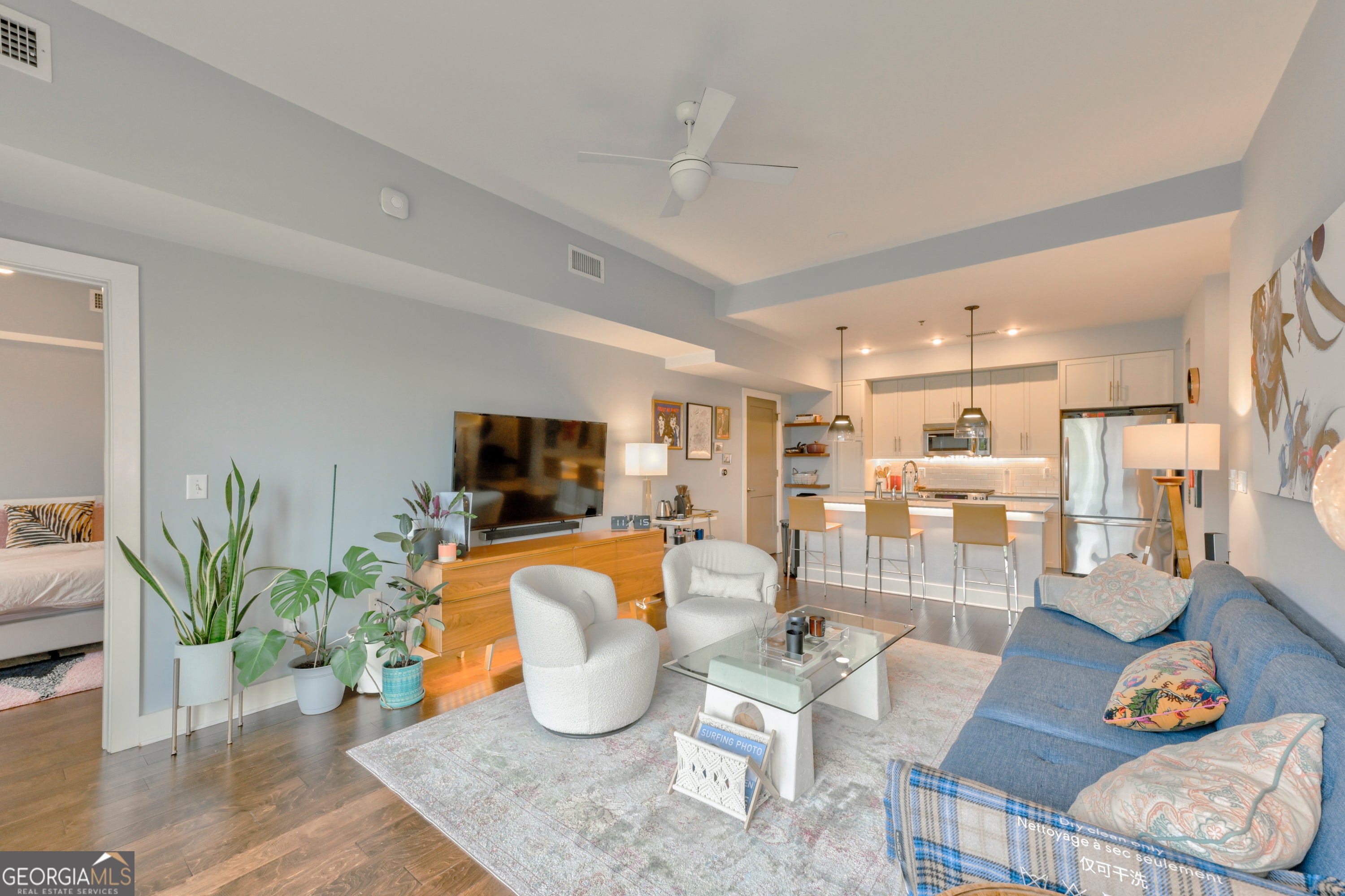 PRIME LOCATION + LOWEST PRICED 2 BEDROOM IN THE BUILDING! Live in one of West Midtown's most sought-after buildings-White Provision Residences. This LUXURIOUS, light filled 2BR/2BA condo is perfectly situated with everything you need! The home features high-end hardwood floors throughout (NO CARPET except in closets), SOARING 10-foot ceilings, and sprawling double glass sliding doors that flood the space with NATURAL LIGHT. The OPEN-CONCEPT layout includes a chef's kitchen outfitted with stainless steel appliances, a gas range, sleek cabinetry, modern fixtures, and an oversized island perfect for entertaining. The unit also features a 20+ foot PRIVATE BALCONY with stunning skyline views, while overlooking the vibrant energy of West Midtown! The SPACIOUS primary bedroom is fitted with two large windows, a large walk-in custom closet, and a stylish bathroom featuring a double vanity and deep soaking tub with a shower combo, creating a SPA-LIKE retreat. The secondary bedroom is equally SPACIOUS and offers LARGE WINDOWS with nice views, a full bathroom with subway tiles and shower/tub combo, and a spacious walk-in closet! This unit includes 2 DEEDED PARKING SPOTS ON THE SAME FLOOR, one of which has ITS OWN EXCLUSIVE TESLA CHARGER. Residents of White Provision enjoy TOP-TIER AMENITIES, including a ROOFTOP POOL with new furniture, a grilling area, a 24/7 FITNESS CENTER, and SECURE GATED ACCESS. Ideally situated WALKING distance from your favorite retail stores and restaurants, and just minutes from I-75/85, Georgia Tech, Midtown, Buckhead, Bitsy Grant Tennis Center, and the BELTLINE. This condo truly offers the perfect blend of LUXURY and CONVENIENCE!