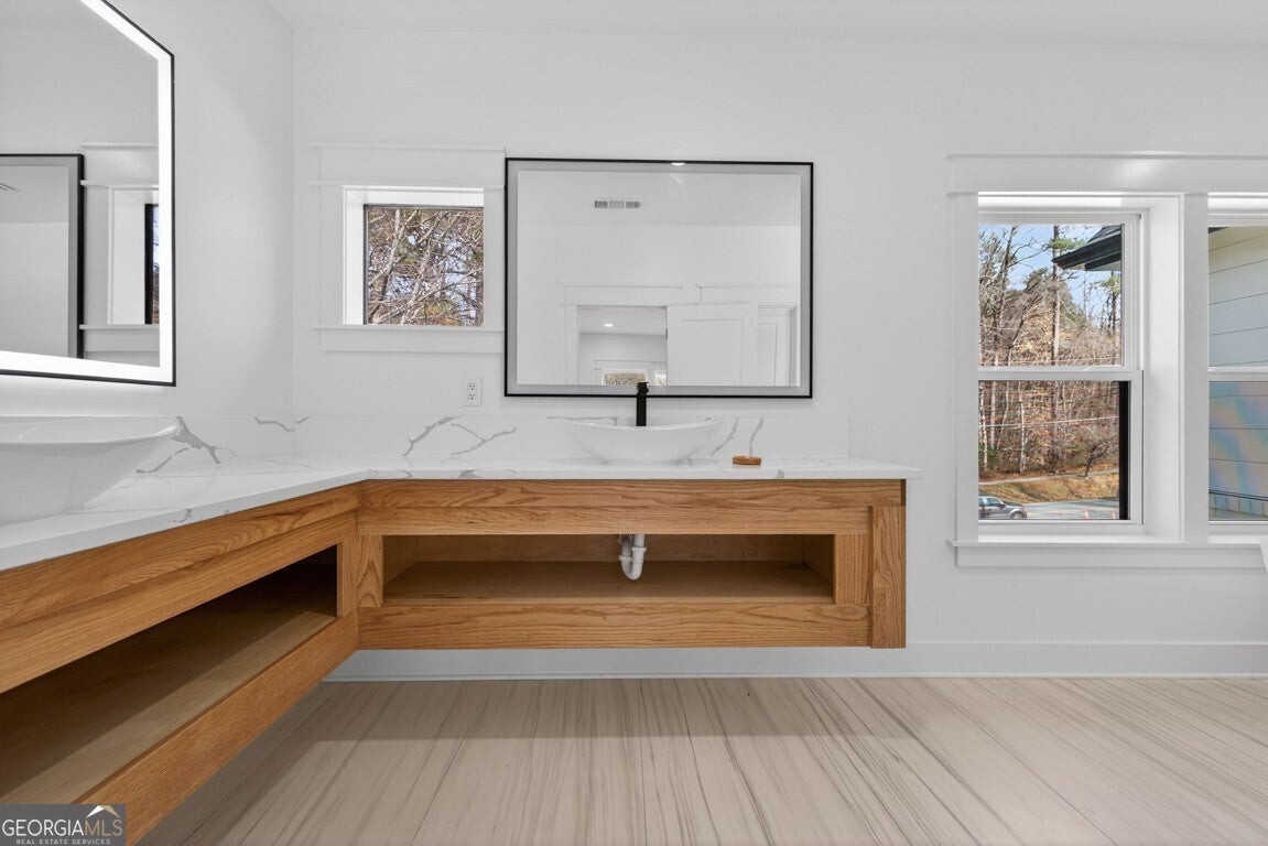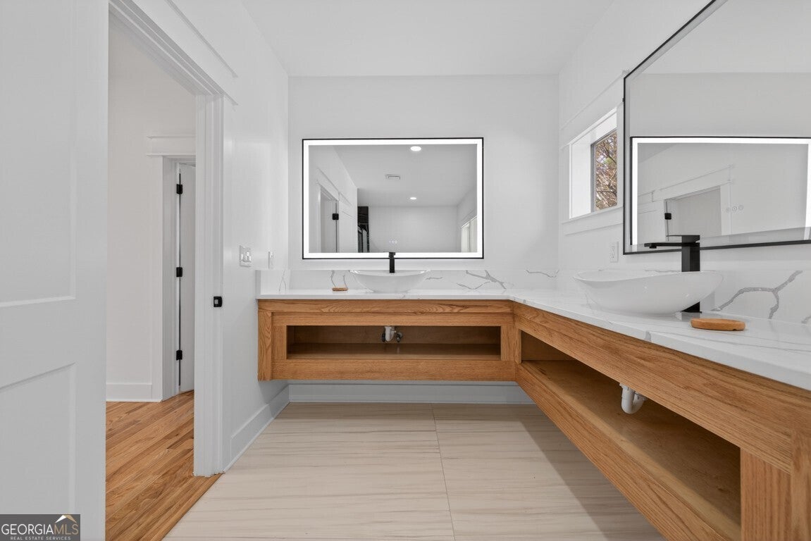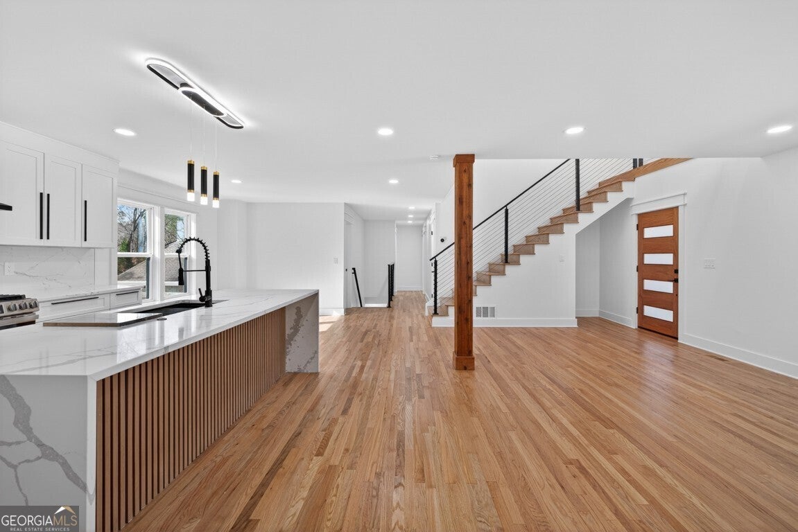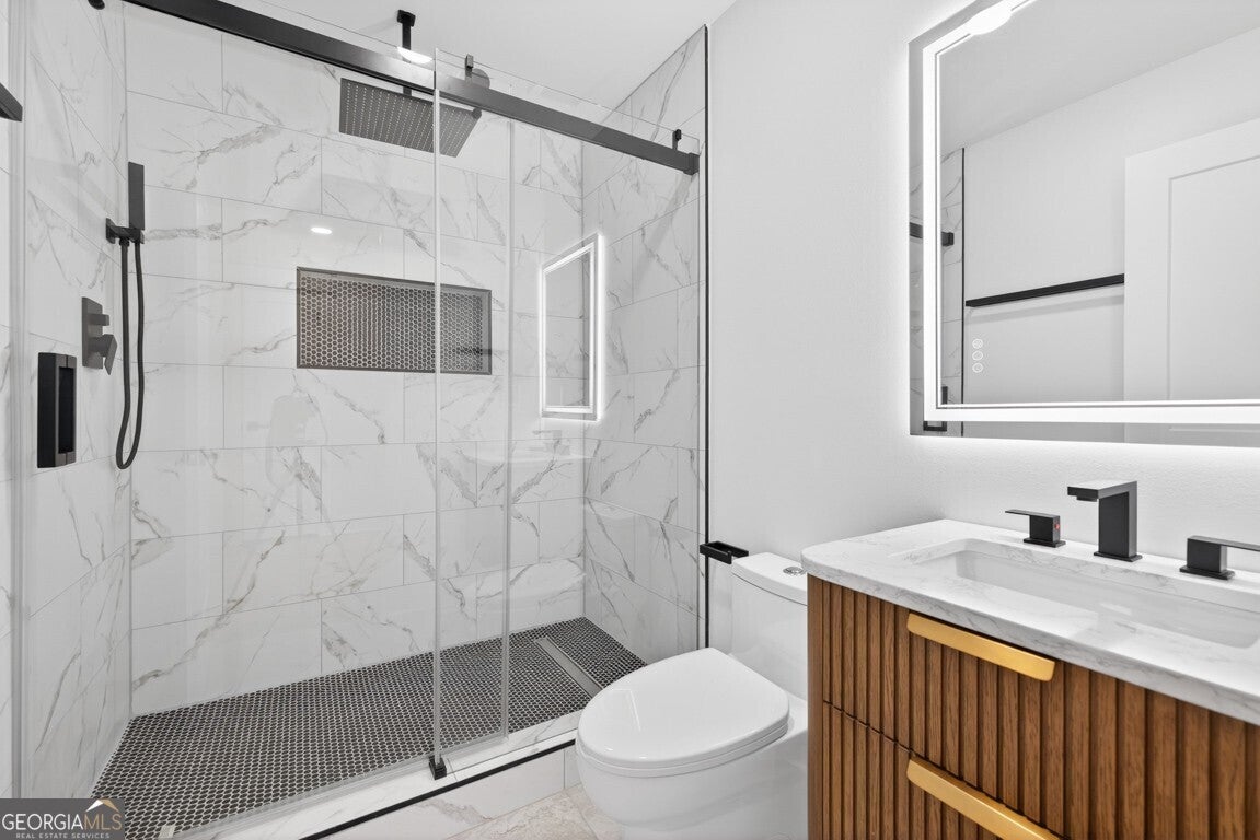 Experience modern living in this beautifully renovated home situated on over half an acre in the heart of Downtown Norcross. This exceptional property features 6 spacious bedrooms and 5 full baths, including a fully finished in-law suite/apartment with a private entrance, perfect for multigenerational living or guests. The brand-new upper level showcases a fabulous great room with a stunning two-story fireplace, an additional bedroom, and a cozy office. Enjoy the grand primary suite, complete with his-and-hers walk-in closets and a spa-inspired bathroom featuring heated floors, an oversized shower, a soaking tub, and lighted mirrors. The main level offers 3 bedrooms and 2 full baths, along with a gourmet kitchen boasting quartz countertops and backsplash, plus a secondary kitchen with additional freezer space. Elegant architectural details are found throughout the home. Step outside to an oversized back porch with a fire pit, conveniently located off the in-law suite. The property also features a circular driveway and is within walking distance to downtown shops, restaurants, and parks. Don't miss this incredible opportunity in one of Norcross's most desirable locations!