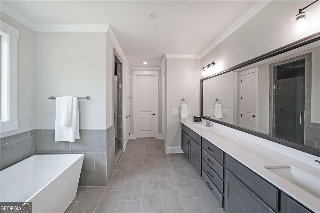 - Interior FeaturesDouble Vanity, High Ceilings, Master On Main Level, Roommate Plan, Separate Shower, Soaking Tub, Split Foyer, Tile Bath, Walk-In Closet(s)