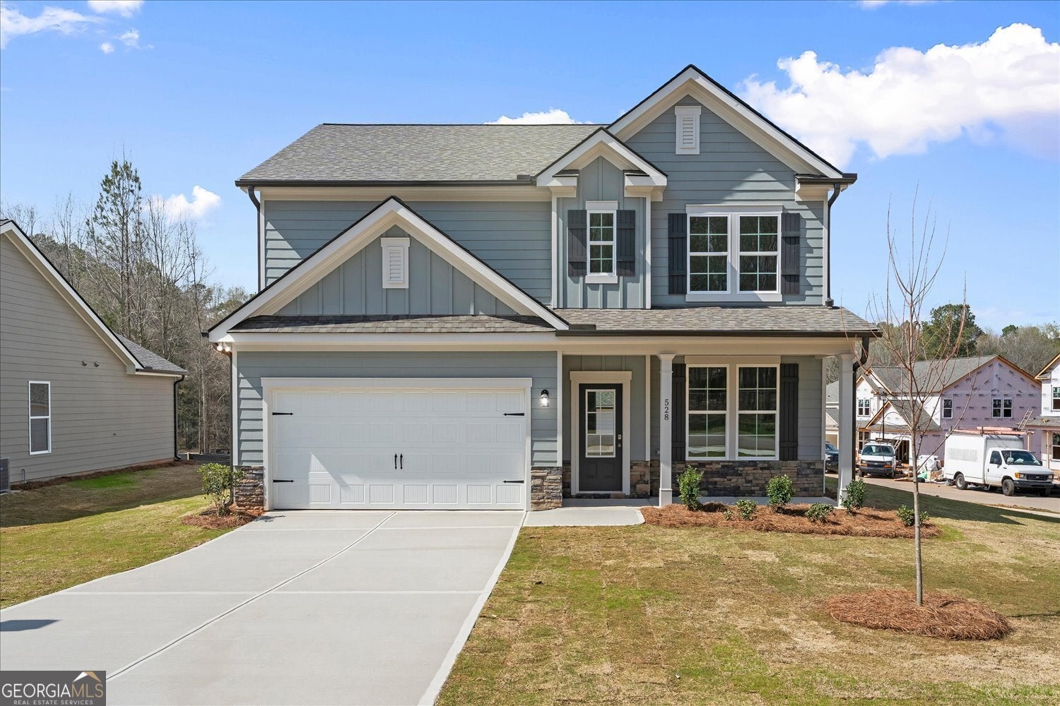 The Baxley plan built by My Home Communities. Ellington Farms offers beautifully crafted new construction homes conveniently located just minutes from Athens and Highway 316, providing easy access to shopping, dining, and commuter routes. This thoughtfully designed community blends modern style with low-maintenance living. Homes feature durable textured cement siding with Hardiplank Board & Batten or shake accents (per plan), complemented by stone watertables, architectural shingles, and bronze aluminum gutters. Each home includes a 2-car front-entry garage and a concrete patio, perfect for outdoor enjoyment. Inside, buyers will appreciate 9' ceilings on the main level, open and functional floor plans, and quality finishes throughout. Kitchens are appointed with 36" shaker-style painted cabinets with crown trim, granite countertops, stainless steel appliances, undermount double-bowl stainless steel sink, and islands (per plan)-ideal for both everyday living and entertaining. Primary suites feature dual vanities, granite countertops, elongated toilets, and a 4' fiberglass shower, while all bathrooms include granite surfaces. Additional interior highlights include brushed nickel lighting, Peerless satin nickel fixtures, modern 2-panel shaker interior doors, metal balusters, and generous shelving in laundry rooms, closets, and pantries. Ellington Farms homes are built with energy efficiency in mind, offering R30 ceiling and R13 wall insulation, 14 SEER electric HVAC systems, Low-E vinyl windows, and programmable thermostats (per plan). Community HOA is affordable with annual dues of $350 and includes a QBW Home Buyer's Warranty for added peace of mind. Discover quality new homes in a convenient location-Ellington Farms is the perfect place to call home.