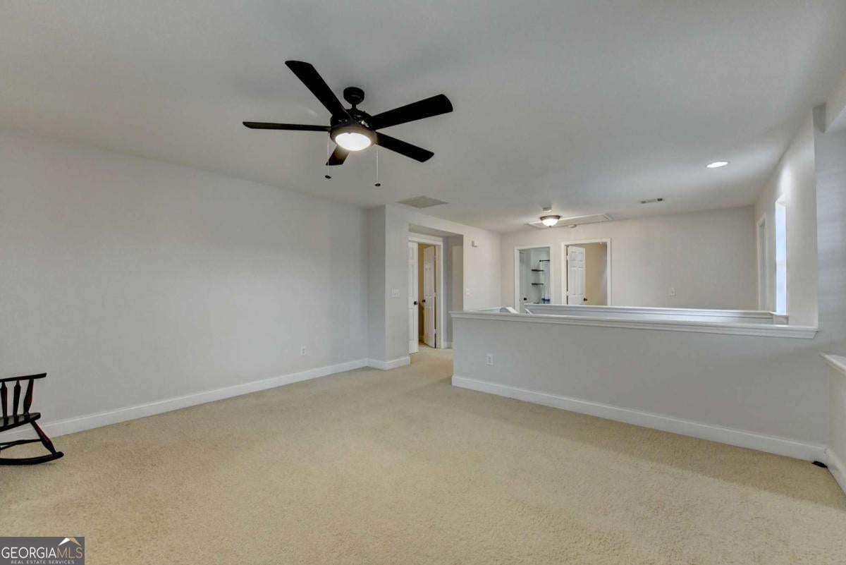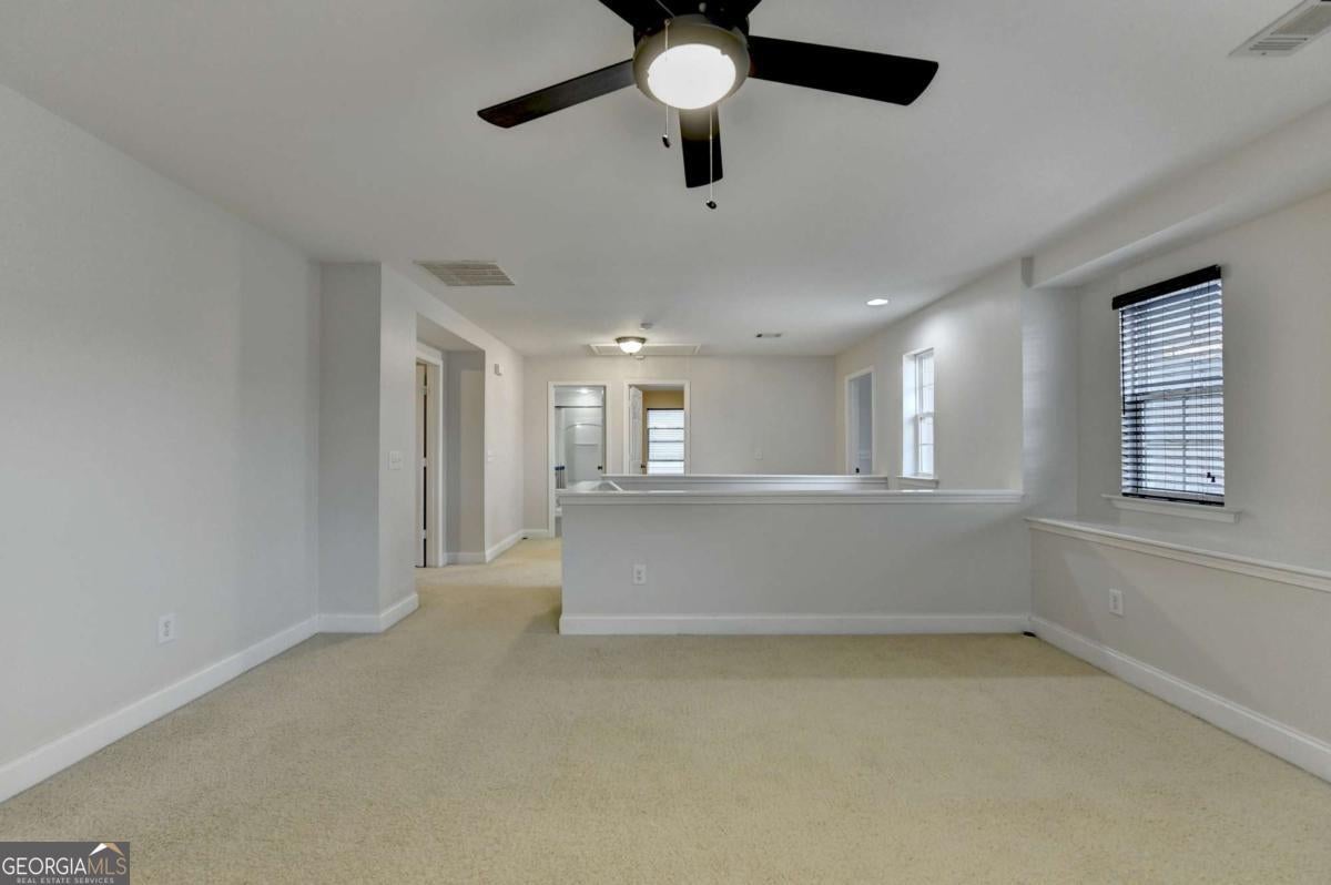 Beautifully maintained and move-in ready 3-BEDROOM, 2.5-BATH home with a spacious kitchen, upstairs LOFT AREA and LEVEL, PRIVATE BACKYARD perfectly situated on a quiet CUL-DE-SAC STREET! The FRONT PORCH welcomes you into the hardwood foyer. To your left is a versatile DINING ROOM or OFFICE AREA that leads to the family room. The warm and inviting FAMILY ROOM offers a MARBLE FIREPLACE, ceiling fan and a wall of windows that fill the space with NATURAL LIGHT. The large KITCHEN is perfect for the family chef and features STAIN-GRADE CABINETRY, a huge ISLAND, STAINLESS STEEL APPLIANCES, GAS RANGE, HARDWOOD FLOOR, and a light, bright BREAKFAST AREA with a door leading to the PATIO and wide open, LEVEL, 3 SIDE FENCED PRIVATE BACKYARD. The main level also includes a spacious LAUNDRY ROOM and a stylish HALF BATHROOM with cabinetry and floating shelves. Upstairs is an expansive LOFT AREA, a space that offers endless possibilities! Perfect as a media room, playroom, home office, secondary living area, or game room. The MASTER SUITE is a true retreat with a SITTING ROOM, large WALK-IN CLOSET, ceiling fan and a spa-like bathroom that features STAIN-GRADE CABINETRY, DOUBLE VANITY, SOAKING TUB, TILE FLOOR, and a separate SHOWER WITH GLASS DOOR. TWO generously sized secondary bedrooms and a full BATHROOM with tile floor, cabinetry, tub/shower combo, and floating shelves complete the upper level. The backyard is fenced on three sides, offering excellent privacy and plenty of room for entertaining or play. The exterior of the home was painted in 2025 and the ROOF is only 5 YEARS OLD! The Lanier Springs neighborhood features outstanding community amenities, including a resort-style POOL with a huge KID'S SLIDE, splash pad, TENNIS and pickleball courts, and a large CLUBHOUSE. Located in top-rated BUFORD CITY SCHOOLS, just 5 minutes from Lake Lanier, and convenient to shopping, dining, and entertainment, this exceptional home is the perfect place to call home!