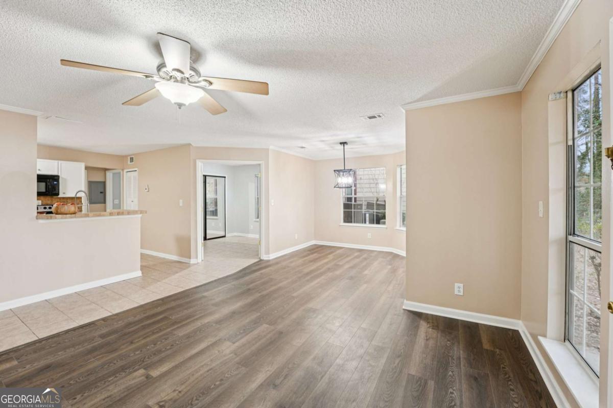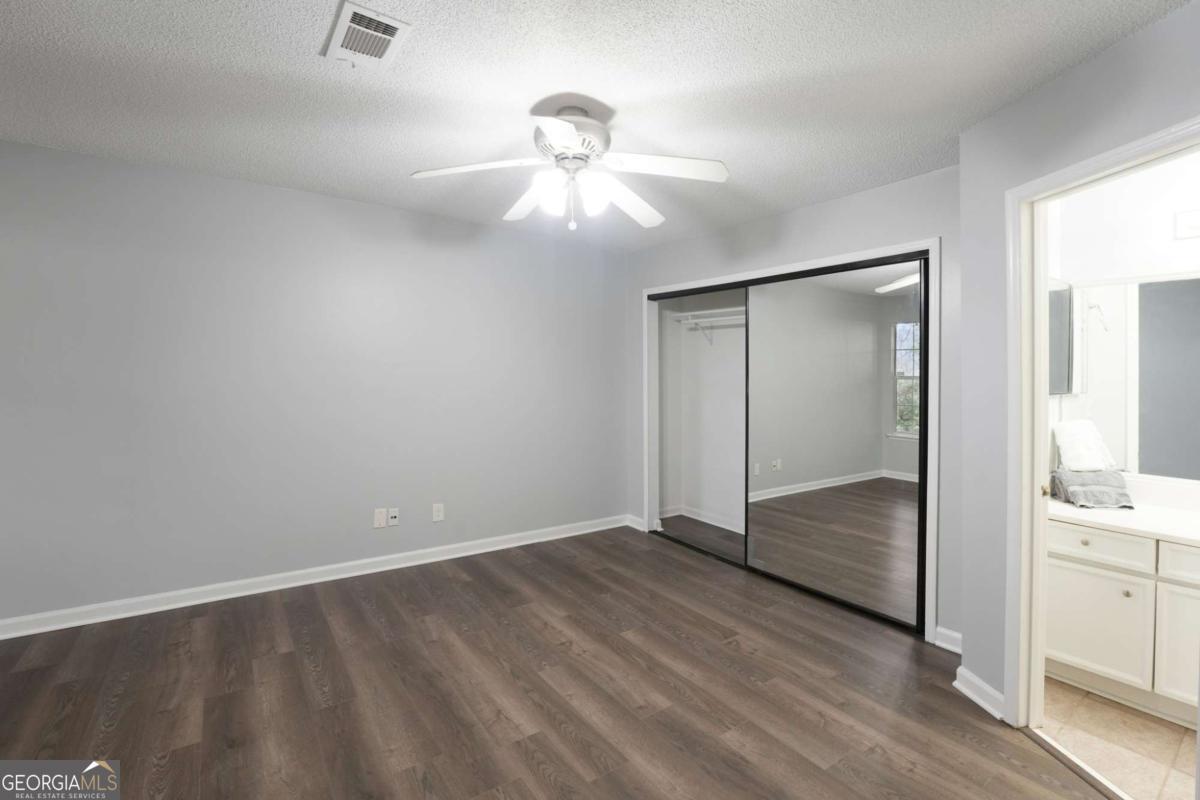 Perfectly suited for those looking to simplify without sacrificing comfort, this beautifully renovated 3-bedroom, 2-bath condominium in Rivermont Village offers low-maintenance living in a peaceful, well-established community close to everyday conveniences. The home has been completely updated with new luxury vinyl plank flooring, fresh neutral paint, updated lighting, and new plumbing fixtures in the kitchen and bathrooms-allowing you to move in and enjoy without the worry of projects or repairs. The bright, modern finishes create a calm and welcoming atmosphere that feels both stylish and easy to maintain. The floor plan is thoughtfully designed for comfort and flexibility. Two spacious bedrooms with attached bathrooms provide privacy for owners and guests alike. The third room offers versatility and can be used as a home office, hobby room, exercise space, or additional bedroom-ideal for today's lifestyle while still keeping the home manageable in size. This unit is ideally located within the community-not near the main entrance, yet just a comfortable walk to the pool and mailbox. The home faces away from the street, creating a quiet and private setting. From the back porch, enjoy tranquil views of the golf course, offering a serene backdrop for morning coffee, reading, or unwinding at the end of the day. Rivermont Village features a well-connected HOA and excellent amenities including a clubhouse, fully equipped fitness center, and swimming pool. Stepless entry from the pool gate. Residents also have the option to join the Rivermont Country Club for additional golf, dining, and social opportunities. A standout feature of the community is access to a private Chattahoochee River park, perfect for peaceful walks and enjoying nature close to home. Adding to the appeal, this condo is conveniently located near a wide variety of shops, restaurants, and grocery stores, making daily errands quick and easy while still enjoying a quiet residential setting. Whether you're downsizing from a larger home, seeking a lock-and-leave lifestyle, or looking for a comfortable space that blends privacy, convenience, and community, this home offers the perfect next chapter.