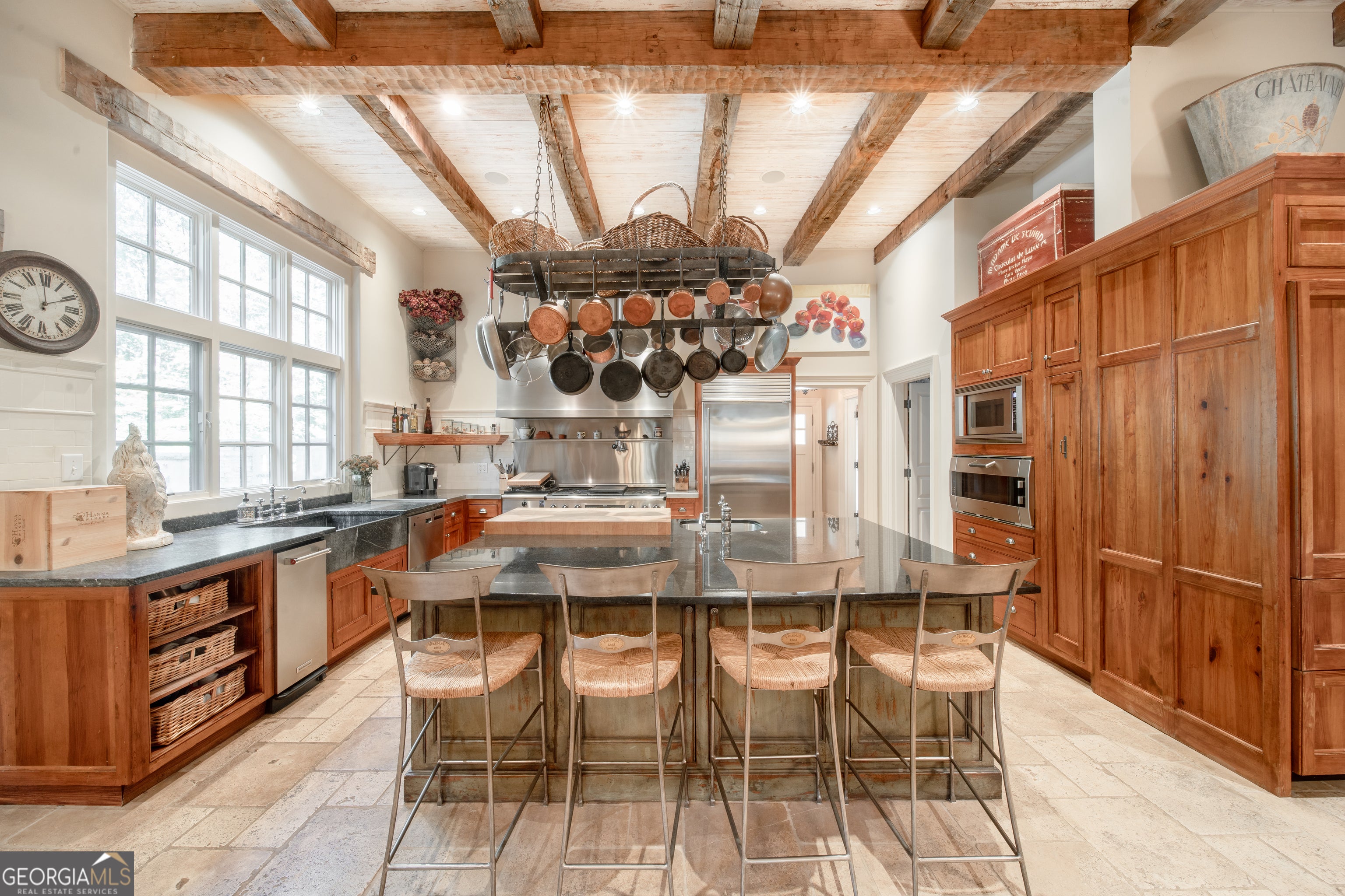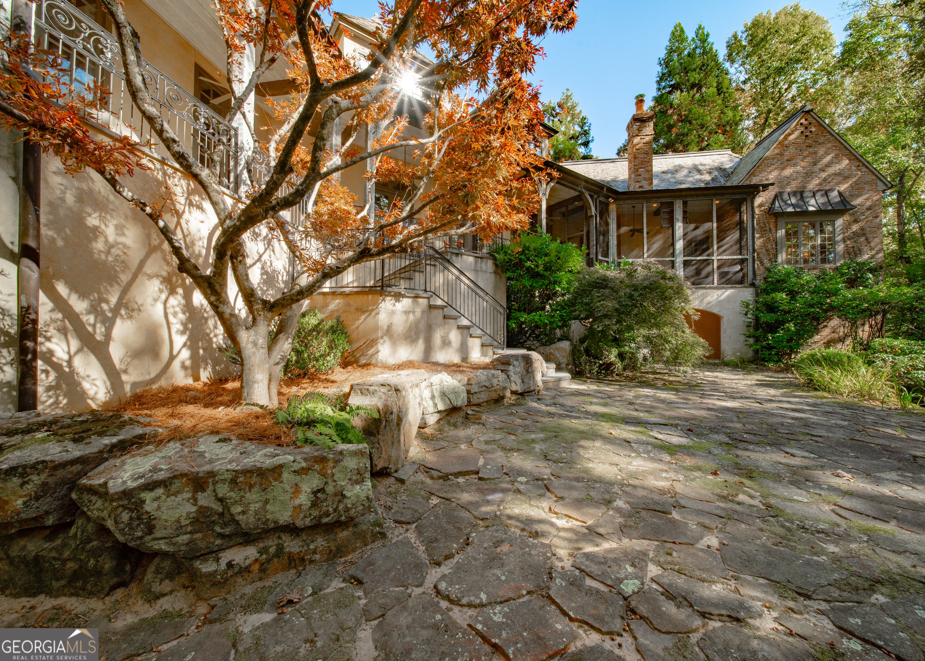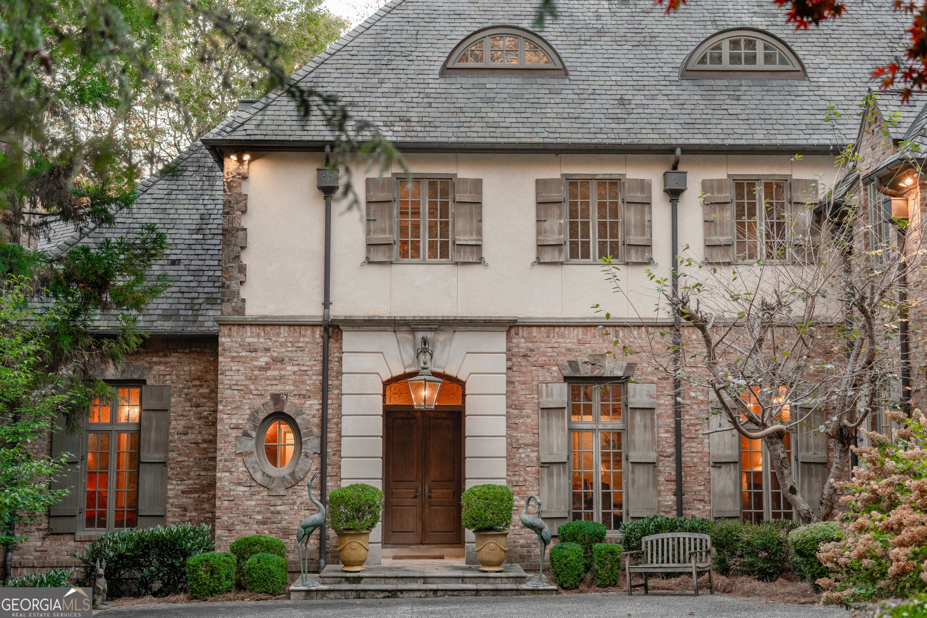 Welcome to Corbett Manor, an extraordinary 112-acre estate where refined luxury and natural beauty exist in perfect harmony. Just five minutes from downtown Clarkesville, this remarkable property offers an elevated lifestyle surrounded by private hardwood forests and impeccably maintained grounds. The stately exterior showcases timeless craftsmanship with a sophisticated blend of stone, brick, and hard-coat stucco, complemented by a slate roof and copper gutters. Through grand mahogany doors, the foyer welcomes you with Italian limestone flooring and soaring 13-foot ceilings. Limestone tile and rich heart pine floors flow throughout the main level, while floor-to-ceiling custom windows flood the home with natural light. A Lutron lighting system enhances both ambiance and ease of living. At the heart of the home, the chef's kitchen is designed for both beauty and performance, featuring commercial-grade appliances including dual Sub-Zero refrigerators and freezers, custom heart pine cabinetry, a DACOR dual-fuel range with double ovens, stainless steel hood, and a Gaggenau pizza oven. Granite and butcher-block countertops, an oversized island with prep sink, two dishwashers, and a limestone farmhouse sink complete the space. Adjacent, a cozy sitting area with heated floors, fireplace, and wet bar invites relaxed gatherings. The kitchen and dining area, seating ten overlook the private "secret garden"-a manicured courtyard with fountain, potting room, and built-in grill ideal for entertaining and alfresco dining. The primary suite is a serene retreat featuring a sitting area with fireplace and imported French marble mantel, a spa-inspired bath with heated floors, Jacuzzi tub, steam shower, custom dual-sided walk-in closet, and a private screened balcony. Just beyond, the library offers wormy chestnut paneling and a cozy fireplace. The second level hosts four spacious bedrooms, each with en-suite baths and walk-in closets. A Juliet balcony overlooks the Great Room with custom wood beams and soaring 26-foot vaulted ceilings. This level also includes a craft room and a private bedroom with bonus space and separate access above the three-car garage ideal for guests or a live-in nanny. Designed for entertaining, the terrace level features a game room with billiards, dry bar, fireplace, home theater, fitness room, and full bath, along with a generously sized laundry room, mudroom, and direct access to the property's dog run. Outdoor living spaces include a screened porch with bluestone flooring, expansive rear balcony, and courtyard cooking area, while imported antique French iron railings add old-world charm throughout. Additional features include a walk-in pantry, custom cabinetry, upgraded security system, abundant storage, and a beautifully gated entry. Corbett Manor is a rare sanctuary of timeless elegance, comfort, and thoughtful design offering an unparalleled luxury lifestyle in a truly remarkable setting.