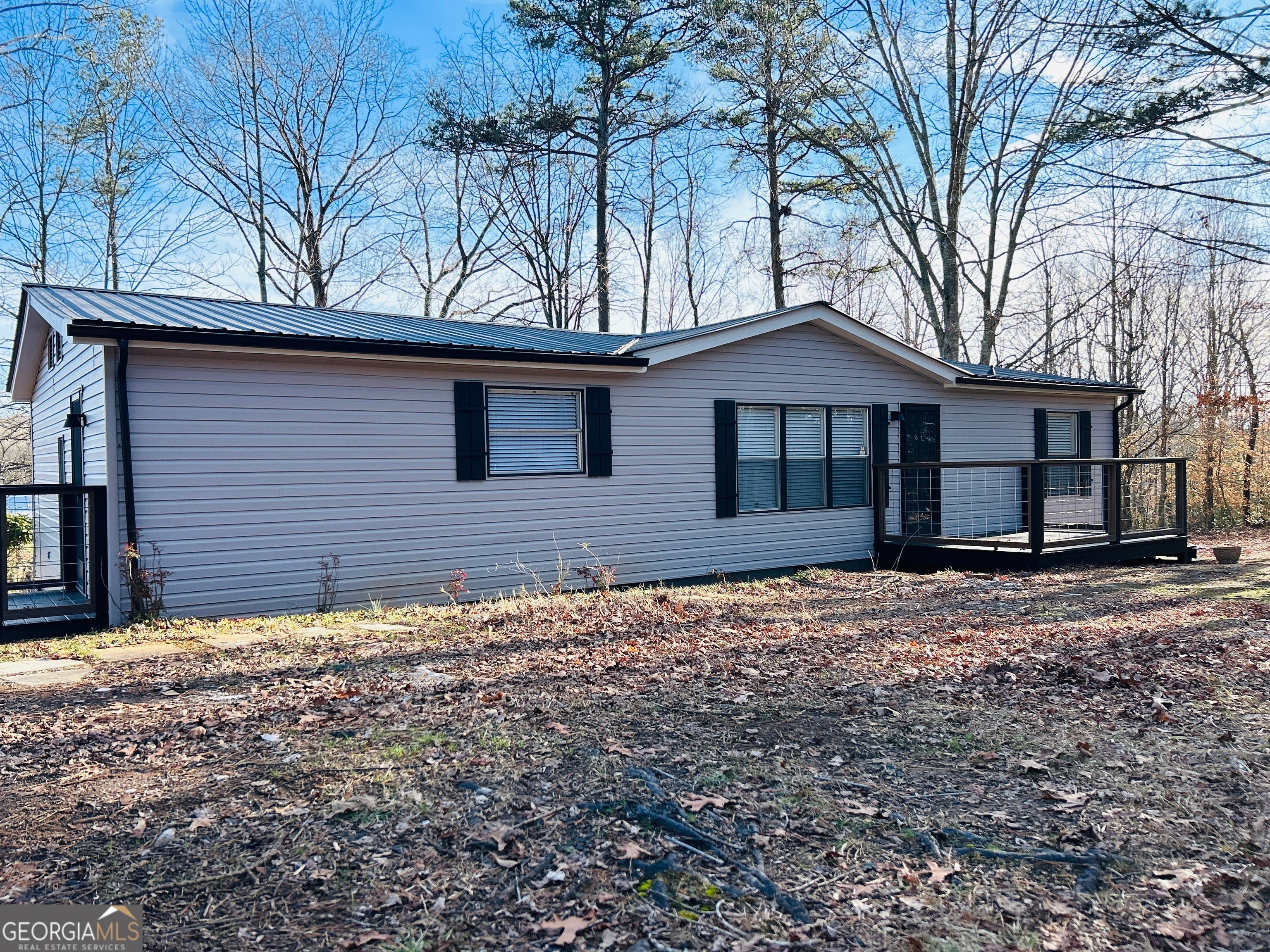 Recently updated and renovated home in southern Habersham County. New flooring, new kitchen and appliances, new paint and lighting fixtures. New porches for front and side entries. This mobile home is on a permanent foundation and sits on a partially wooded 1.27 acre lot in a country setting. A split bedroom plan provides lots a space and privacy. A large open floor plan includes a living room highlighted by new LVP flooring and a fireplace. There's gracious space for plenty of different dining room options. The kitchen features new butcher block countertops and new appliances. A large laundry / mud room offers additional space for pantry and extra storage.