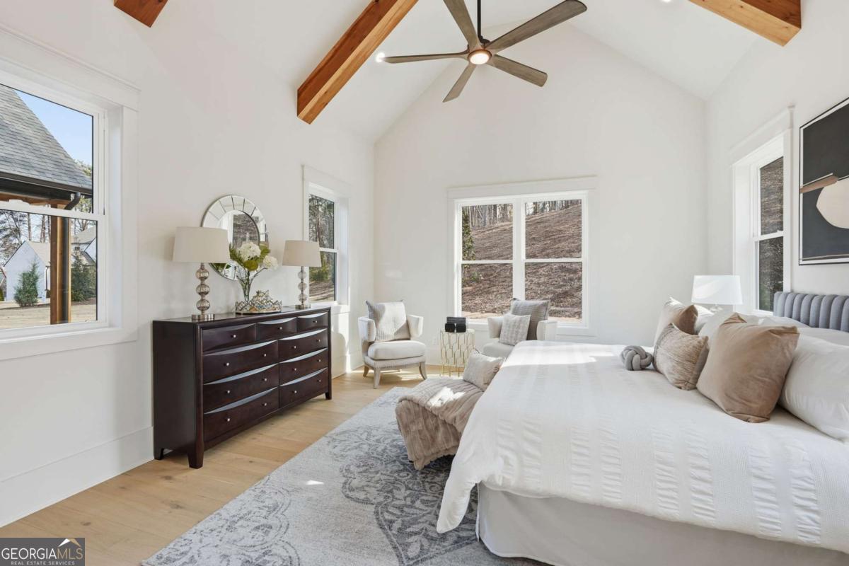 - Interior FeaturesBeamed Ceilings, High Ceilings, Master On Main Level, Other, Walk-In Closet(s), Wet Bar