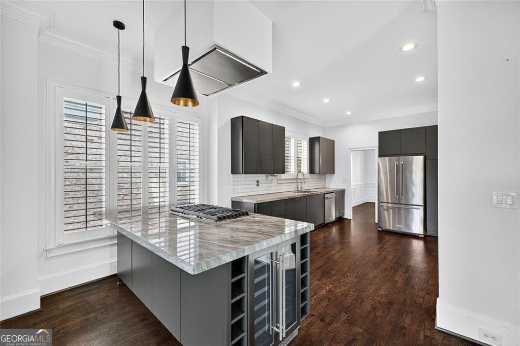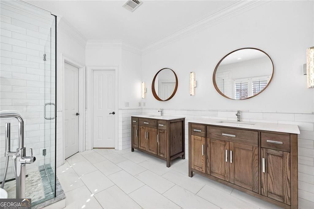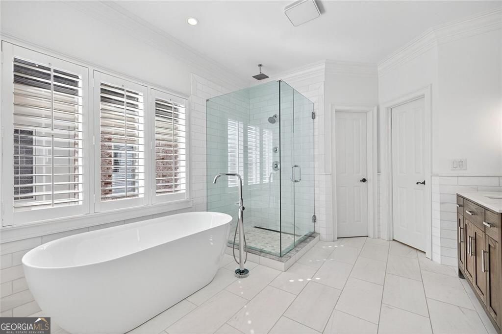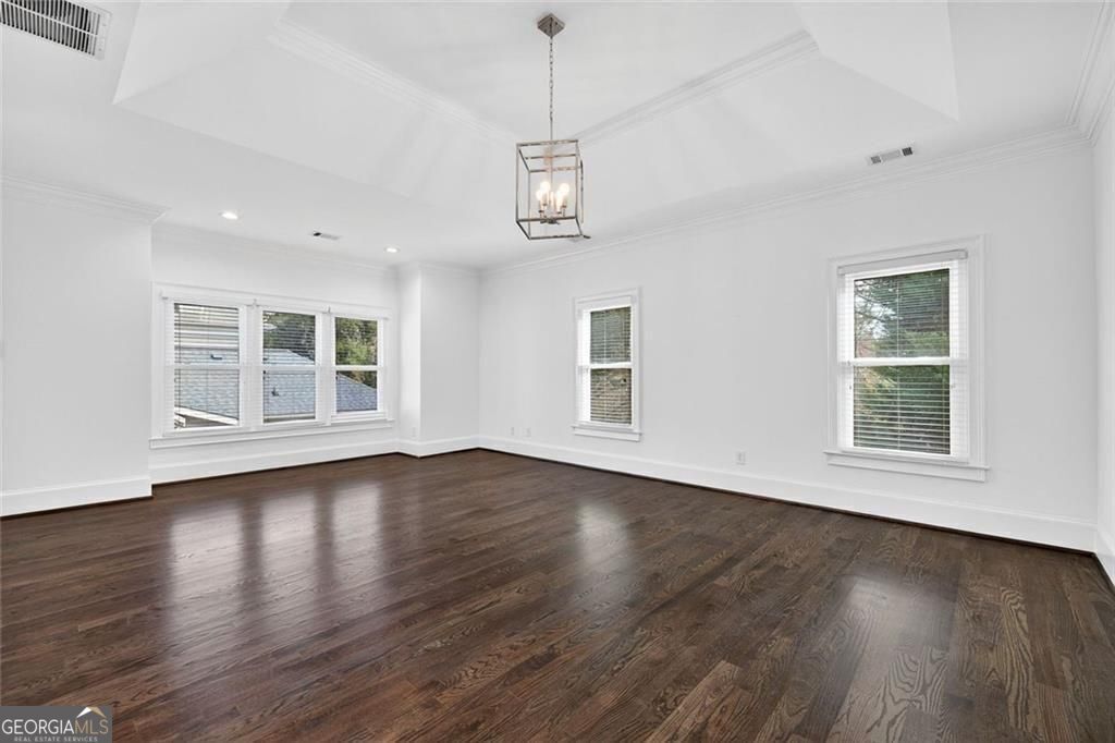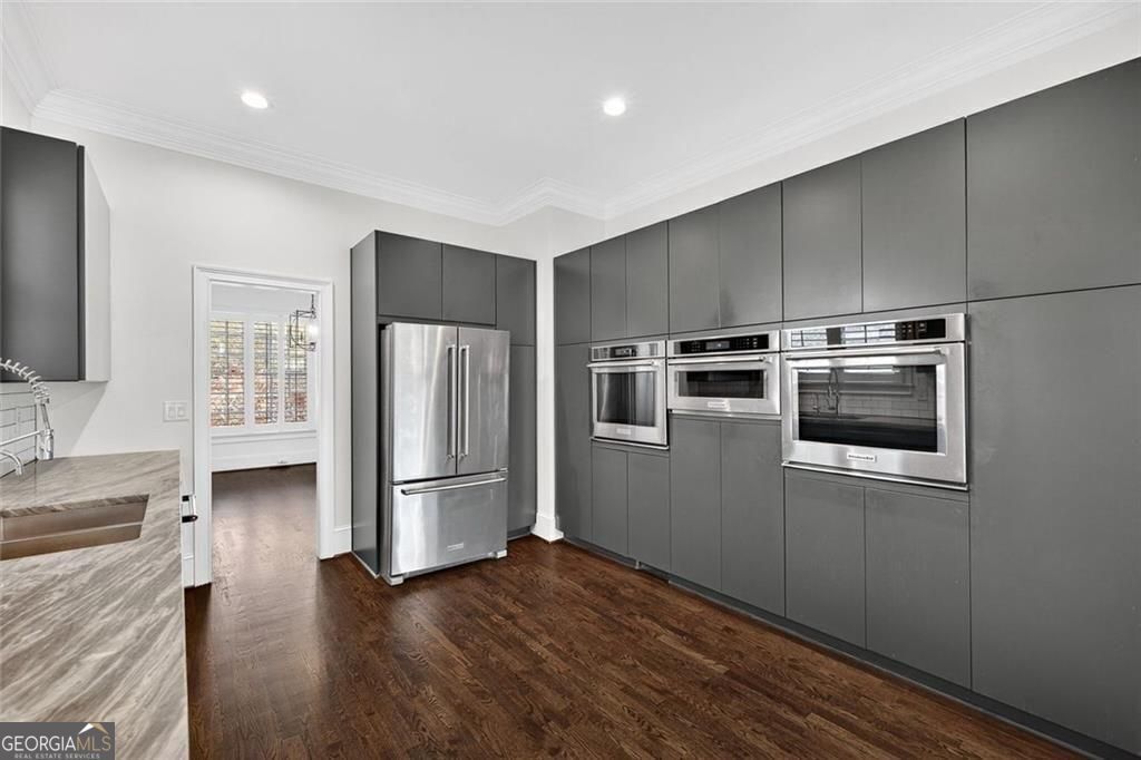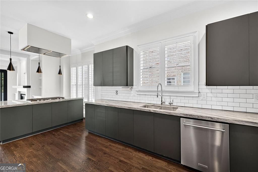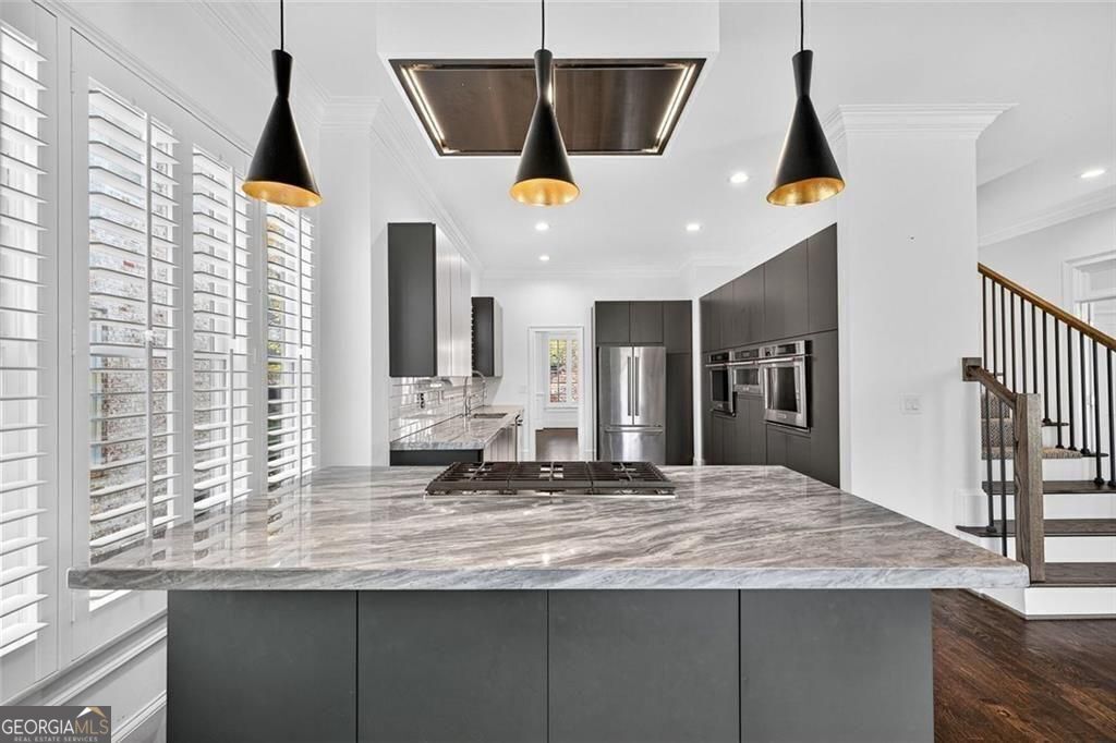 This completely reimagined residence offers a rare combination of thoughtful design, modern upgrades, and an incredibly private backyard setting. Featuring a brand-new roof, designer kitchen, and fully updated baths, every inch of this home has been carefully curated for today's lifestyle. From the moment you arrive, the refreshed exterior, manicured landscaping, and striking Japanese maple create an inviting first impression. Inside, a bright, open foyer welcomes you, flanked by a formal living room and an elegant dining space with a butler's pantry, ideal for both everyday living and elevated entertaining. The main level unfolds seamlessly with designer hardwoods, updated lighting, and an airy, open-concept layout. At its center, the fireside family room is anchored by a coffered ceiling, custom built-ins, and a dramatic wall of sliding glass doors that open to the expansive deck, creating a true indoor-outdoor connection. The kitchen is a standout, clean-lined and modern with flat-panel cabinetry, thick stone countertops, a generous island with seating, double wall ovens, gas cooktop, and beverage fridge. A main-level guest suite or private office with full bath adds flexibility for today's evolving needs. Upstairs, the primary suite offers a refined retreat with a tray ceiling, dual walk-in closets, and a spa-like bath featuring dual vanities, a freestanding soaking tub, and a glass-enclosed shower. Two additional ensuite bedrooms and a spacious laundry room complete the upper level. The finished terrace level expands the home's versatility with a full in-law suite including bedroom, bath, kitchen, and living/media space-perfect for extended stays or multi-generational living. An additional finished area just off the garage is ideal for a home gym, studio, or climate-controlled storage. Outdoors, enjoy a flat, low-maintenance terraced yard and an expansive deck designed for entertaining, relaxing, and play, all with a sense of privacy that's hard to find in this location. Ideally positioned just minutes from Mason Mill Park, Emory, Children's Healthcare, the VA Hospital, and the shops and restaurants of Virginia-Highland, this home delivers a compelling blend of convenience, space, and elevated Intown living.