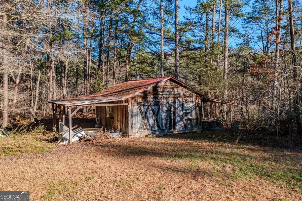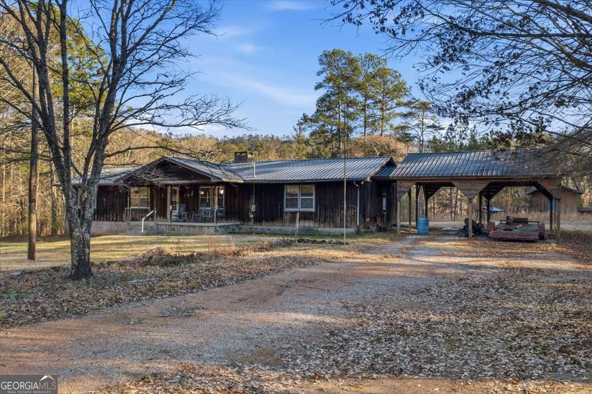 3.6 acres with a 3 bedroom, 2 bath home located less than one mile from Sloppy Floyd State Park. This property features a durable metal roof, a welcoming covered front porch, and a spacious large dining room for gatherings and entertaining. The main living area offers an open concept layout anchored by a centralized fireplace, creating a comfortable flow between the living, dining, and kitchen spaces. The primary suite is ready for updates and finishing touches, offering excellent potential for added equity and customization. A full unfinished basement provides storage, workshop options, or future expansion opportunities. The acreage includes a large open lot with space for outdoor hobbies, gardens, animals, or future improvements-rare to find with this level of privacy and usability. With its solid structure, outdoor setting, and proximity to recreation, this home offers both immediate livability and exciting long-term potential.