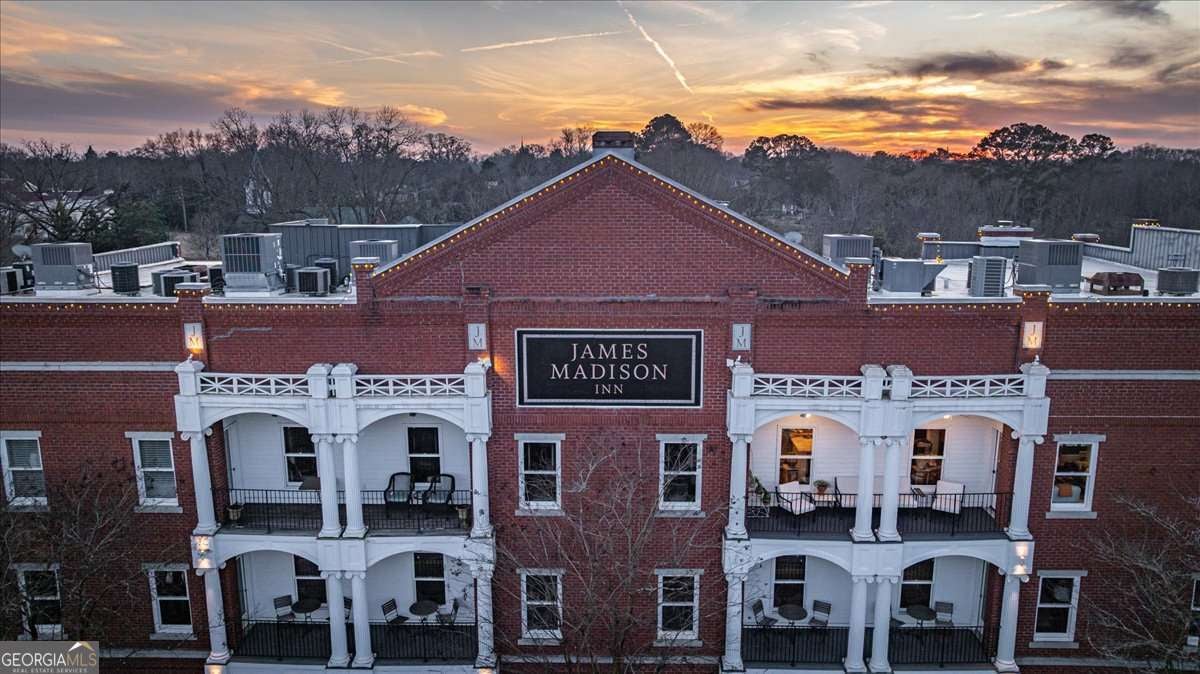 What an extraordinary opportunity! This breathtaking penthouse condo, perched atop the iconic James Madison Inn sits in the heart of historic Madison, offering unparalleled luxury and charm. Enter through magnificent double copper doors into a dramatic two-story foyer, or through an elevator that takes you from the lobby of the Inn directly into the living room. There the magic unfolds. The living room is bathed in light from the windows & flanked by balconies. Open the French doors to an oversized balcony perfect for grand gatherings, intimate evenings, or for savoring sunsets over town. An alcove off the living room features built-ins ideal for showcasing books, art, or collectibles. The kitchen: a masterpiece w/ professional-grade Viking appliances, a massive island, custom built-ins resulting in timeless charm & high-functionality. A lovely butlers pantry w/ a wine cooler & space for all the entertaining essentials compliment this space. The dining room easily accommodates large gatherings. Adjacent, the cozy den w/ balcony ideal for relaxing & watching the fun below. The enchanting primary suite is complete with cozy fireplace & access to two private balconies. The fully updated spa bath boasts dual vanities, an oversized shower, garden tub, sauna, and two full closets. Two more beautiful BRs with dedicated baths, & balcony access. Ascend via elevator to the 2nd-floor flex space-perfect as a home office, media room, or whatever suits your lifestyle. Then, climb the stairs to your private rooftop terrace for unforgettable evenings under the stars. This rare penthouse w/ endless outdoor living options also includes an amazing 480 bottle wine cellar, a private store room & two garage spaces. Professionally and lovingly updated with the aid of top-tier designers, the home features walnut floors, beautiful renovations, exquisite wallpapers, draperies, and enhancements throughout. This one of a kind penthouse offers the ultimate dream lifestyle.