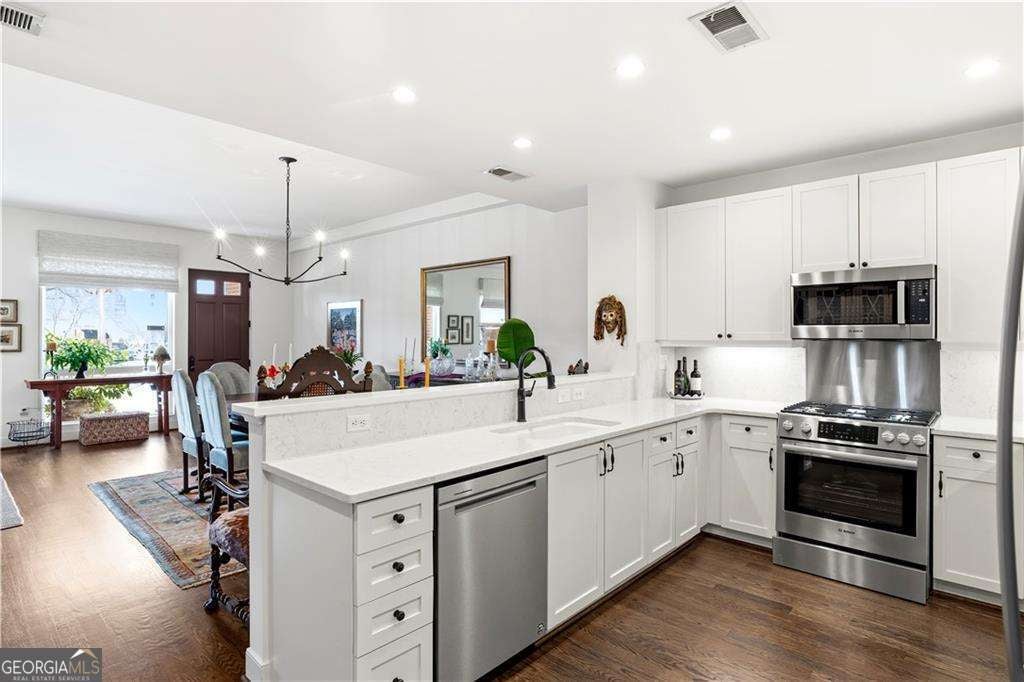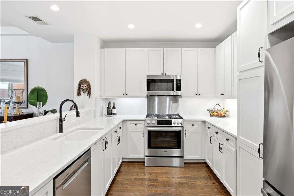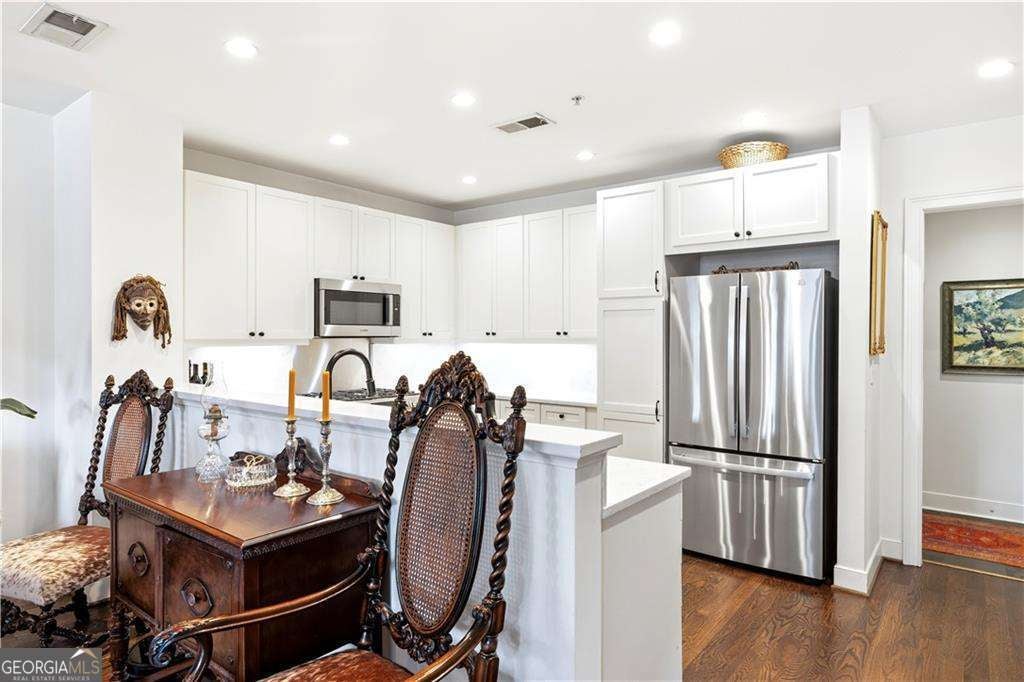 Welcome to 1183 Commerce Drive, a thoughtfully updated townhome and one of only six townhomes at The Artisan, a highly desirable and well-managed community in the heart of Downtown Decatur. With on-site management and a reputation for being exceptionally well run, The Artisan offers a rare combination of privacy, convenience, and peace of mind. This move-in-ready home features a functional, welcoming layout designed for both everyday living and easy entertaining - all just seconds from the best of the City of Decatur. The main level welcomes you with hardwood floors throughout, abundant natural light, and a bright, refreshed kitchen featuring repainted cabinetry, new quartz countertops, and a full suite of brand-new appliances, including a refrigerator, stove, microwave, dishwasher, and garbage disposal. Major system upgrades, including a new HVAC system and new water heater, provide added comfort and energy efficiency. A convenient half bath on the main level is perfect for guests, while the open flow creates an ideal space for hosting or relaxing at home. Just off the living room, a patio extends the living space outdoors, and a private entry and two dedicated parking spaces located right outside your back door add everyday ease. Upstairs, you'll find two spacious bedroom suites, each with its own private, attached full bathroom, offering exceptional comfort and privacy. The primary suite serves as a true retreat and features his-and-hers closets, a double vanity, a separate shower and soaking tub, and access to a private balcony. The second bedroom offers its own ensuite bath, ideal for guests or additional household members. An additional upstairs office provides flexible space ideal for working from home or study, while the hall laundry closet includes a new washer and dryer, thoughtfully placed for everyday convenience. The Artisan's amenities complete the experience, offering a true urban lifestyle with a strong sense of community. Residents enjoy a rooftop pool with stunning city skyline views, where neighbors often gather for casual cocktail hours and meet-ups, along with grilling stations on the pool deck, a fireplace, and comfortable seating areas ideal for hosting and connecting. A clubroom with a full kitchen provides the perfect space for larger gatherings and events, while the fitness center supports an active lifestyle. A beautifully landscaped outdoor garden with a water feature offers a peaceful retreat in the middle of the city, balancing vibrant social spaces with quiet moments of relaxation. Location truly sets this home apart. Downtown Decatur is right outside your door, with award-winning restaurants, bars, markets, and shops less than a block away, and MARTA just one block from the home. Enjoy immediate access to City of Decatur schools, vibrant community amenities, and everything that makes Decatur one of the most sought-after places to live.