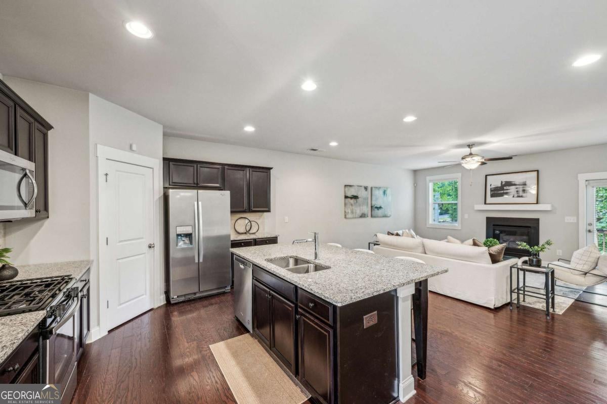 Modern Living Meets Prime Location in Gated White Oak at East Lake, Tucked inside the private, gated community of White Oak at East Lake, this beautifully maintained townhome offers the ideal combination of space, functionality just minutes from the heart of Decatur. This home features 3 spacious bedrooms, 2 full baths, 2 half baths, and an expansive flex space that easily adapts to your needs-whether that's a home office, guest suite, gym, or media room. The main level welcomes you with hardwood floors, abundant natural light, and an open layout that makes everyday living and entertaining effortless. The kitchen boasts a generous granite island, stainless steel appliances, ample prep space, and a walk-in pantry, flowing directly into the living room with a gas fireplace and custom mantle. Step out to your private Rear deck surrounded by greenery-the perfect spot to unwind. Upstairs, the primary suite offers a peaceful retreat with double vanities, a soaking tub, a glass shower, and a large walk-in closet. Two additional bedrooms with walk-in closet and a centrally located laundry space. This townhome is perfectly positioned just minutes from Decatur's top spots- including Agnes Scott College, Emory University, and the DeKalb Farmers Market-as well as beloved neighborhoods ike Downtown Decatur, Kirkwood and East Lake. Parks, shopping, and dining are right around the corner, and Downtown/Midtown Atlanta just a short drive away. Bonus: This home is investor-friendly with no rental restrictions. Don't miss this rare opportunity to own a stylish, move-in-ready home in one of East Lake's most desirable gated communities!