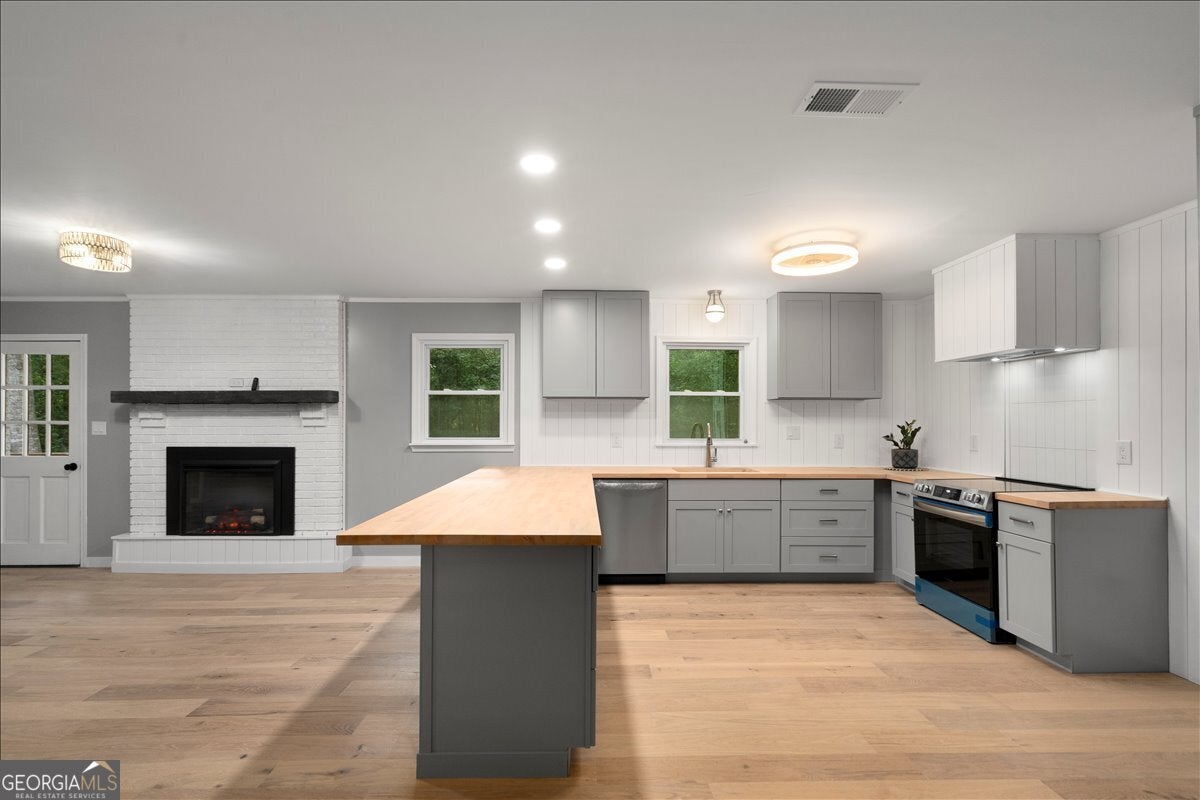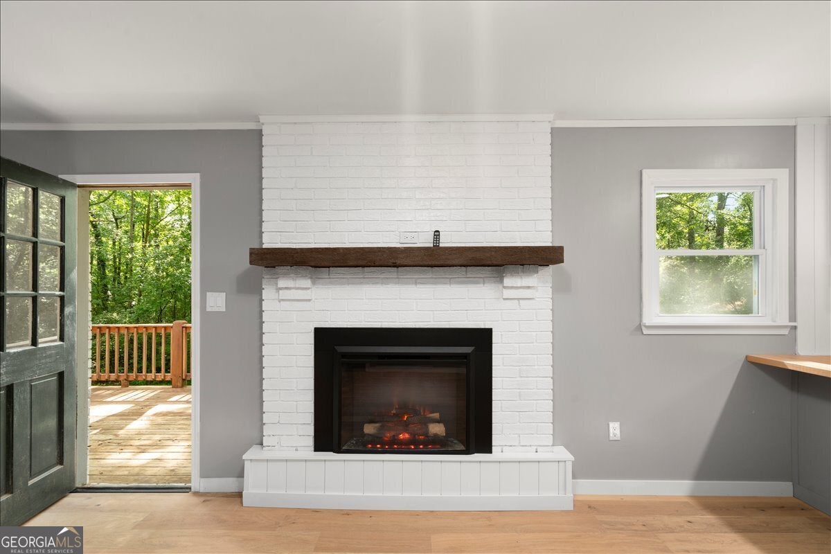 Step into a thoughtfully reimagined mid-century ranch that balances timeless character with today's comforts. This fully updated three-bedroom home with a dedicated office, and two bathrooms offers inviting spaces to gather, unwind, and entertain. Tucked along a quiet street in Winterville, the setting provides a rare sense of privacy while remaining close to parks, the Firefly Trail, and everyday shopping conveniences. From the moment you arrive, the covered front porch, serene surroundings, and newly installed energy-efficient windows set the tone. Inside, French oak engineered hardwood floors flow throughout the main living areas, leading into a bright, open layout anchored by an impressive kitchen. Designed with both style and function in mind, the kitchen features new wood shaker cabinetry, updated appliances, Delta champagne bronze fixtures, a custom range hood, solid alder countertops, and a generous ten-foot peninsula ideal for hosting. A sleek electric fireplace adds warmth and modern flair, positioned near the rear entrance that opens to a deck overlooking the private backyard. The primary suite offers a peaceful retreat with ample closet space, tranquil backyard views, and a private bath showcasing a glass-enclosed walk-in shower, porcelain tile, and a quartz double vanity. The secondary bathroom is equally well-appointed with a marble-topped double vanity, full tub, porcelain tile surround, and plentiful storage. Outdoors, the backyard feels calm and expansive with no rear neighbors, offering space for entertaining, gardening, or simply enjoying the outdoors. This home delivers the ease of truly move-in-ready living in a setting that feels both private and connected.