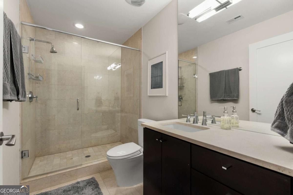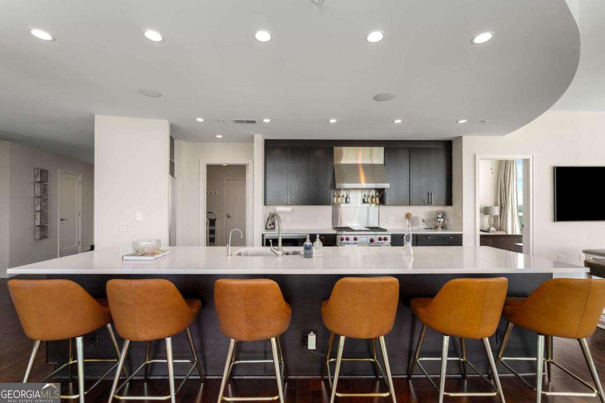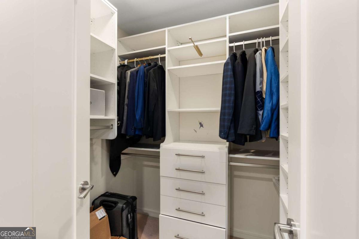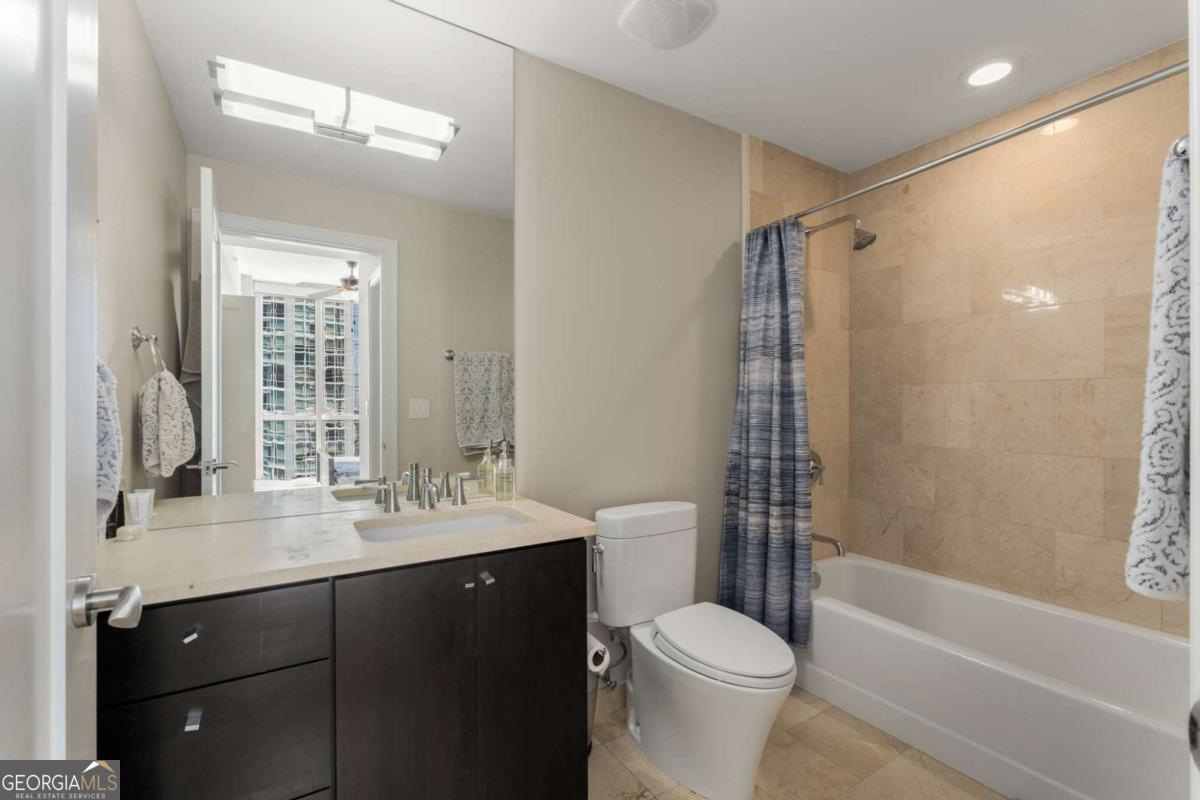 Sexy AND Smart? This seductive city home showcasing smart home Control 4 technology makes entertaining a breeze setting the mood throughout the entire home with one touch! Experience elevated living in this expansive residence thanks to dramatic floor to ceiling windows offering sweeping views of the Atlanta skyline, dazzling sunsets and twinkling night views. The open concept living and dining areas flow seamlessly into a sleek, mahogany stained chef's kitchen equipped with premium Wolf and Sub-Zero appliances, a Bosch dishwasher, warming drawer and a long center island with seating for six! A separate catering entrance adds functionality while the wet bar featuring a Sub-Zero wine fridge and ice maker is clutch when entertaining. Smart upgrades throughout the home include Control4 automation, motorized shades throughout the home, custom closets and rich hardwood floors. The spacious primary suite is a relaxing retreat, offering a sitting area, private terrace with views of Buckhead, walk-in closets and dual spa-inspired master baths boasting his & her water closets and connected by a luxurious walk-in shower. Two additional bedrooms offer generous space each with its own bath featuring granite finishes. Additional highlights include a separate laundry room and two parking spaces. This full-service building includes valet parking, 24 hour concierge and a fantastic amenity level showcasing a gym, clubhouse, pool, dog run and massage rooms. Sophisticated, stylish and located in one of Atlanta's premier buildings - this is city living at its finest!