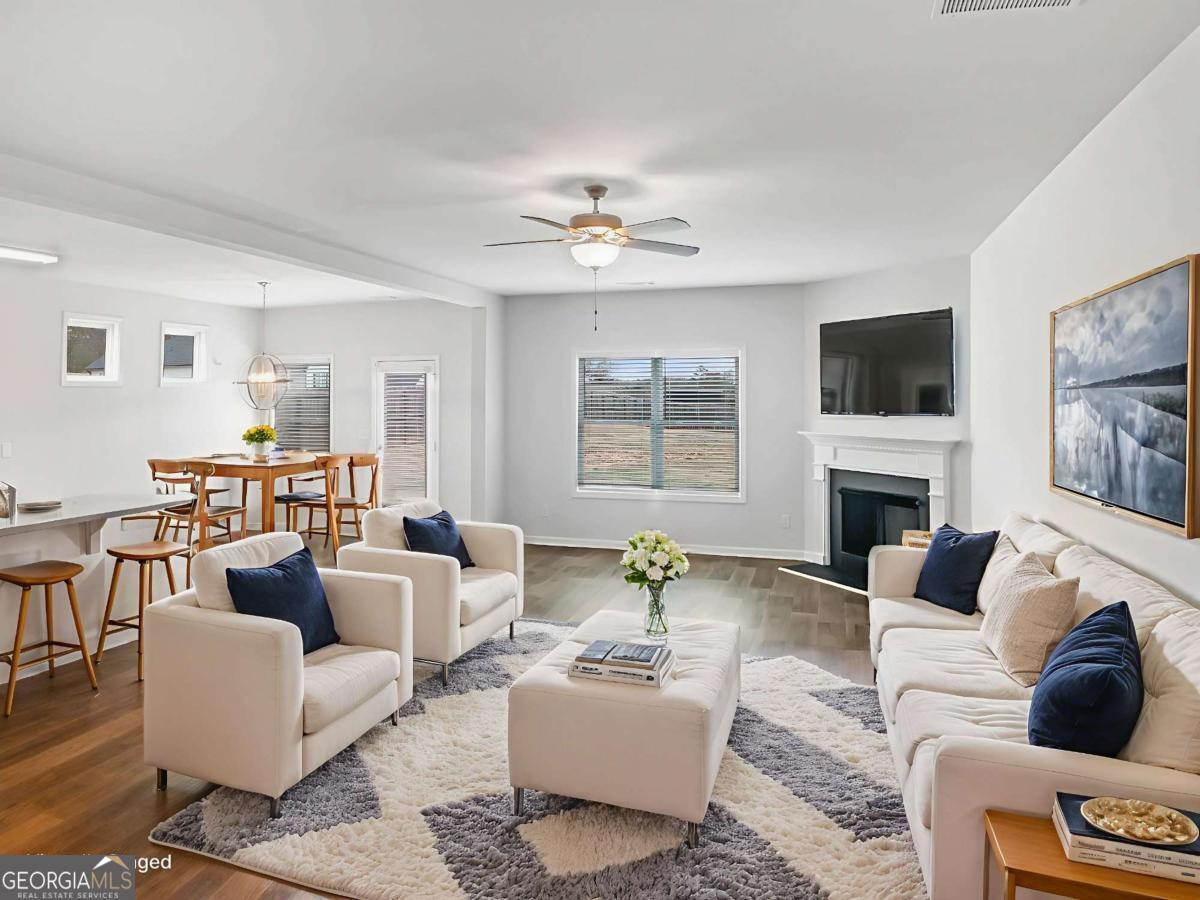 Welcome home to this beautiful 4-bedroom, 3-bath ranch situated on a desirable corner lot in Winder. A welcoming covered front porch invites you inside, where you'll find an open-concept floor plan designed for both everyday living and entertaining. The family room features a cozy fireplace and flows effortlessly into the dining area and kitchen, creating a bright, connected living space. The kitchen is thoughtfully designed with white cabinetry, granite countertops, stainless steel appliances, and a center island, offering plenty of prep space and storage while remaining open to the main living areas. The primary suite is conveniently located on the main level and serves as a private retreat with a tray ceiling, a spacious walk-in closet, and a well-appointed en-suite bath featuring a double vanity, separate soaking tub, and walk-in shower. A standout feature is the direct access from the primary suite to the laundry room, adding exceptional convenience. Two additional main-level bedrooms, both with walk-in closets, share a full bath. Upstairs, you'll find a fourth bedroom with a walk-in closet and full bath, ideal for guests, a teen suite, or a private home office. Step outside to enjoy the patio and fully fenced backyard, offering plenty of room to relax, play, or entertain on this over half-acre lot. With its flexible layout, spacious lot, and inviting design, this home is the perfect blend of comfort, functionality, and style.