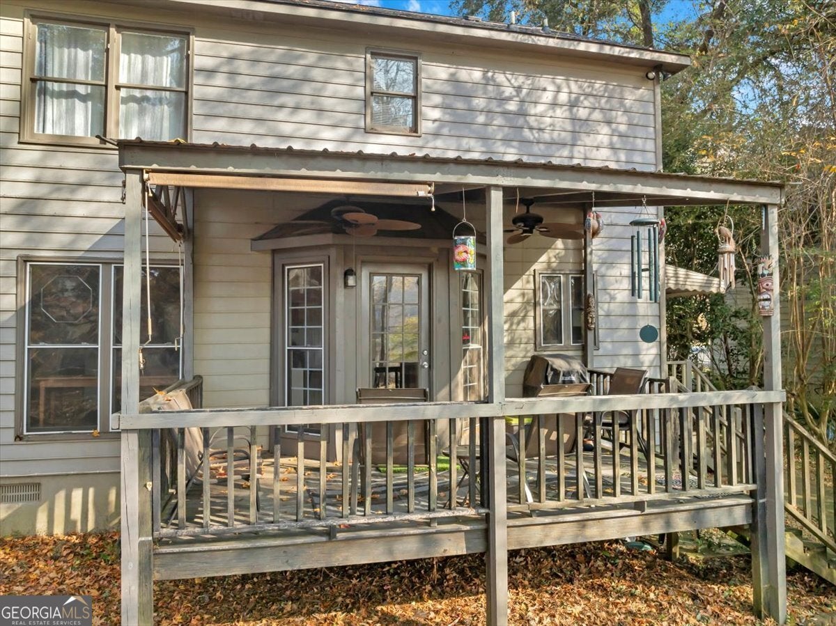 Discover the perfect lakeside retreat in this inviting two-story home featuring 3 bedrooms and 2.5 baths. Step through the welcoming foyer into a comfortable family room highlighted by a cozy fireplace. Adjacent to the family room is a dedicated dining area that flows seamlessly into the kitchen, complete with a breakfast nook, ample cabinetry, and well-appointed stainless steel appliances. From the kitchen, step out onto the covered back deck and take in serene, unobstructed views of the lake. The second-level primary suite offers tray ceilings, a ceiling fan, and an en-suite bathroom for added comfort and convenience. You'll also find two additional bedrooms and a full bath-perfect for family or guests. Outside, a spacious workshop provides excellent storage or flexible use for hobbies, equipment, or outdoor gear. The expansive covered deck, equipped with dual ceiling fans, provides an ideal setting for entertaining, relaxing, or enjoying year-round lake breezes. A private single-slip dock offers direct access to the water for fishing, boating, or simply soaking in the peaceful scenery. Don't wait for spring to start living your lakefront dream-come see how this charming property can become your very own home sweet home.