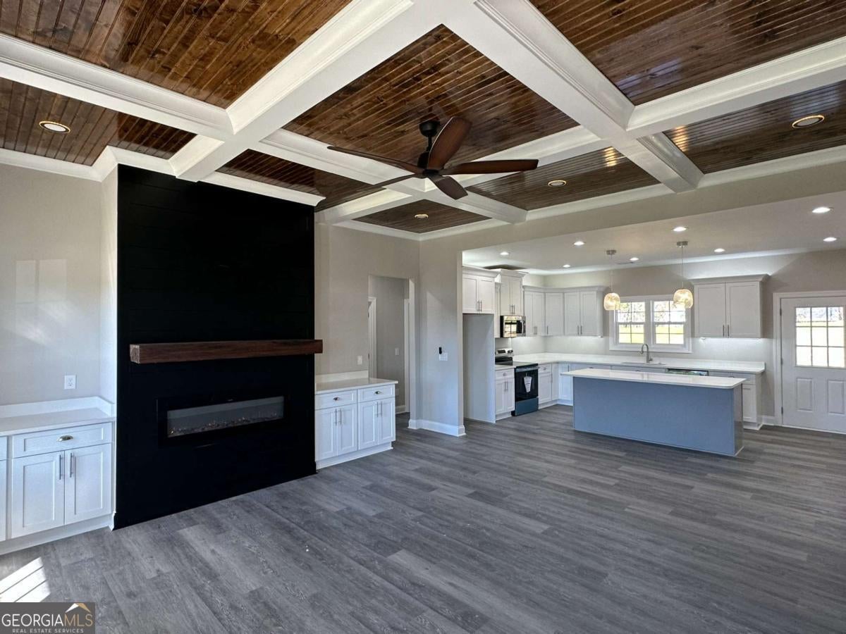 New construction custom home showcasing a contemporary design with attention to detail throughout. Interior features include wood-accent ceilings in main living areas, LED accent lighting in closets, and electric fireplace inserts enhancing both comfort and style. The open-concept kitchen connects seamlessly with the dining and living areas, offering a modern and functional layout. A covered rear patio and generous backyard provide excellent outdoor living space. No HOA. Conveniently located in South Augusta with easy access to Deans Bridge Road and I-520. Augusta offers a strong sense of community, steady growth, and a well-known blend of military presence, golf tradition, and expanding local amenities, making it an attractive place to live and invest.