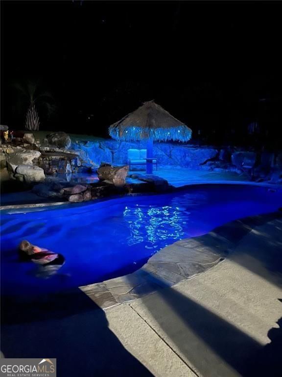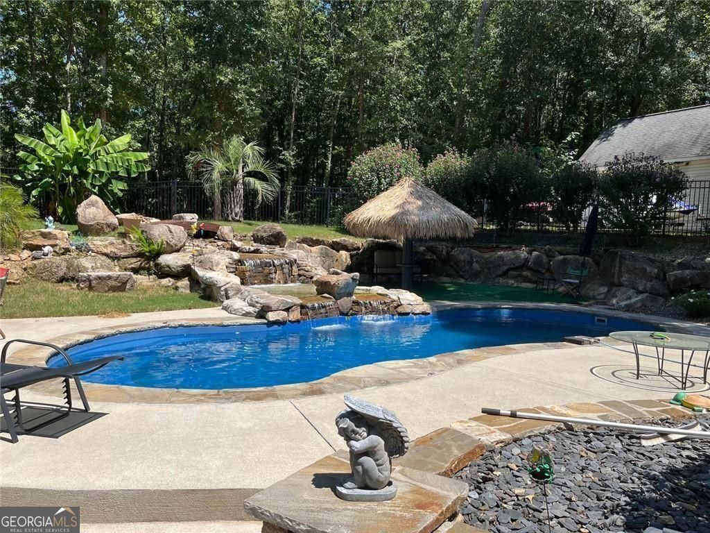 Welcome to 95 Tyler Woods Drive, a beautifully updated home situated in one of Newnan's most desirable communities. The newly renovated kitchen features sleek countertops, modern cabinetry, and stainless steel appliances, making it an ideal space for both everyday living and entertaining. The open floor plan flows seamlessly into the family room, which boasts a cozy fireplace and an abundance of natural light. Significant updates include a new roof installed in 2023, complete with gutter guards and downspouts, as well as brand-new windows. These enhancements provide comfort, efficiency, and peace of mind for years to come. Step outside to discover a true backyard oasis. The sparkling heated pool is complemented by a sanded tiki hut with a soothing waterfall, creating a resort-style retreat right in your backyard. A spacious patio and lush landscaping offer plenty of room for gatherings or quiet relaxation. Upstairs, the serene owner's suite features a spa-like bathroom, providing a tranquil escape, while additional bedrooms offer comfort and flexibility. Conveniently located near schools, shopping, and dining, this move-in-ready home blends modern upgrades with vacation-style amenities in the heart of Newnan.