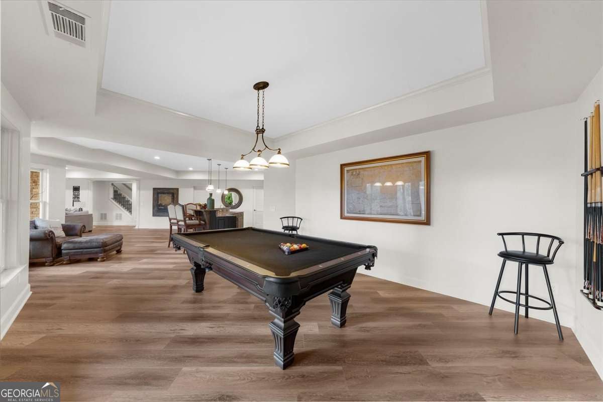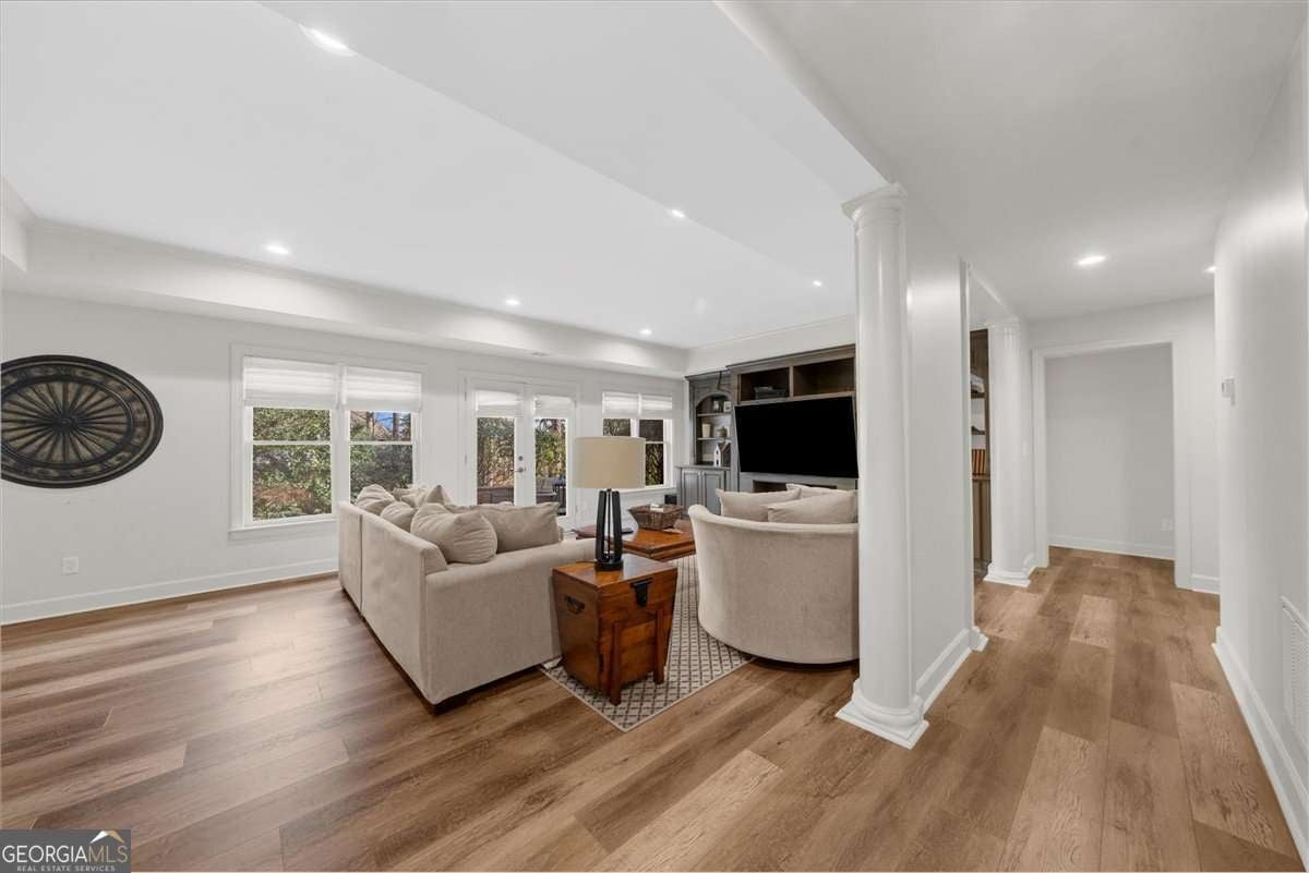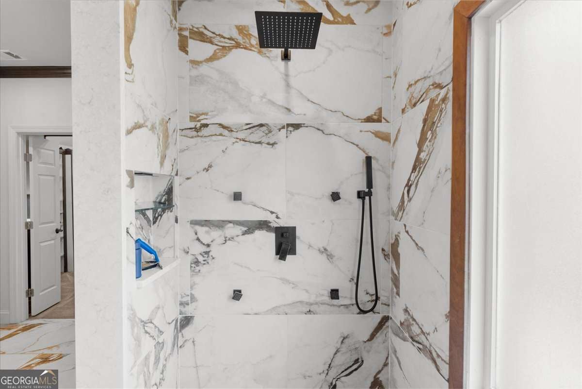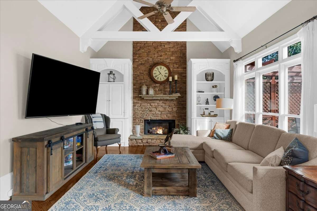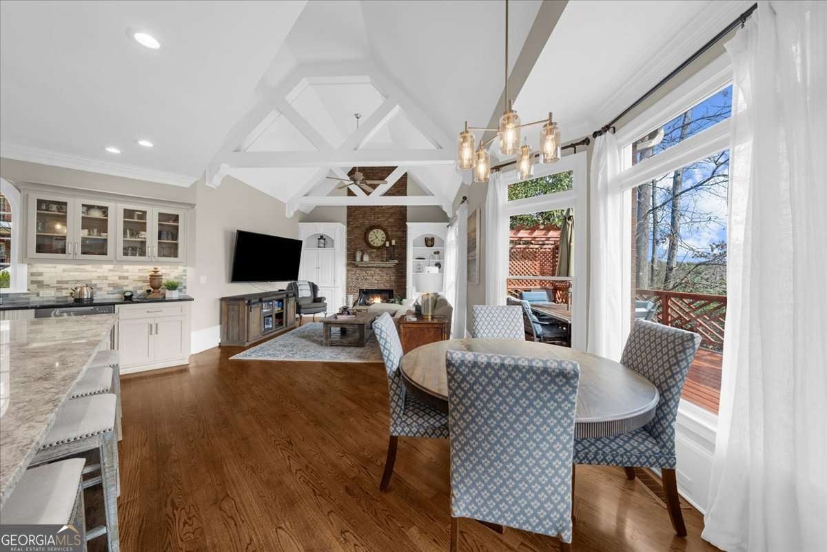 Exquisitely updated 6-bedroom, 5.5-bath, four-sided brick home located on a quiet cul-de-sac in the highly sought-after Falls of Autry Mill. This one-owner home has been meticulously maintained and thoughtfully upgraded throughout and is situated in the final phase built in the community. Every bathroom has been beautifully updated, with the primary bath offering a truly stunning retreat. Conveniently located off the primary bathroom is the laundry room. The spacious primary suite also features a large walk-in closet, fireplace, and custom built-in bookshelves. An ensuite bedroom is located adjacent to the primary suite. Across the hall are two additional bedrooms that share a Jack-and-Jill bath, each with its own private sink and vanity area. The main level includes a guest suite and a separate half bath. The kitchen is exceptional, featuring an extra-wide island, custom cabinetry, designer lighting, Thermador gas cook top, Wolf oven, Sub Zero fridge with panels, Fischer & Paykel dishwasher, and a very large walk-in pantry. A breakfast area opens seamlessly to the keeping room, creating an inviting space for everyday living and entertaining. Besides the powder room on the main level, from the pantry to the garage is another "half bath" area. The finished basement offers a custom full bath, bar/kitchen area, and an additional bedroom currently used as a home gym. Two unfinished rooms provide ample space for mechanicals and storage. Walk out to the backyard, where you'll find a firepit surrounded by lush greenery-perfect for outdoor gatherings. This home offers generous living spaces ideal for hosting large gatherings while maintaining comfort and elegance throughout.