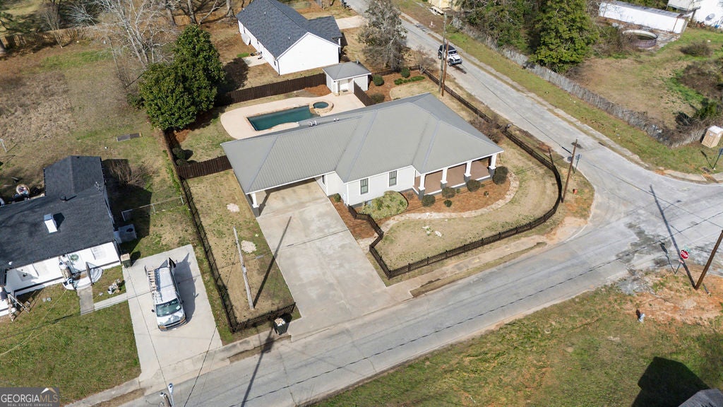 Absolutely spectacular Restoration by James Hamlett of this 1910 true Craftsman home. This home abounds with high quality sourced materials, craftsmanship and finishes true to the the original build date of this home, PLUS features additional modern day luxury. The exterior wood siding and interior wood flooring are original to the home. Inside, the home restoration was taken down to the studs. Highlights include: Metal Roof, Pella Wood Windows, Spray foam exterior walls and ceilings, Attic floored in back half of home, On Demand Water Heater, Back Up Generator, Plantation Shutters, Heated Electric flooring in Master Bath, Integrated Appliances, Pool and Hot Tub with Kool Decking and a Pool House (heated by Propane), Custom Cabinetry/Built Ins and Trim Work, Rejuvenation Hardware, Kohler Plumbing Fixtures. The home is spacious with an open flow, tall ceilings and wonderful natural light. There are 2 bedrooms. The master bedroom has pocket doors and 2 closets- both with built-ins, and 1 is a walk in. The master bathroom has heated tile flooring - perfect to get ready for your day on this brisk Georgia weather. There is a spacious tiled shower, separate toilet, his/her sinks and a linen closet. The guest bedroom doubles as an office with built in desk and shelving. If you really enjoy cooking and/or entertaining, the kitchen would make a professional chef proud. Subzero integrated appliances (dishwasher is Bosch), new LED undermount lighting, kitchen sink water filter, new disposal, concrete tops newly resealed, custom cabinetry and tile backsplash. There is a dry bar as well off of the dining area. Wonderful lighting streams through the windows from the backyard and when you open up the plantation shutters, you have a clear view of the private pool/hot tub area. There is a new wood deck off of the back door leading you onto Kool Decking that surrounds the chlorinated pool and hot tub. The pool house matches the home and has a brand new hot tub heater. All of the fencing has new stain, the exterior has new paint. This home is an absolute work of art and a true must see for those looking for quality and style in a small charming town. No need to jump in the car - a short stroll leads you to downtown with various dining options, a meat house for local fresh meats/dishes, drugstore, banking, and post office. There is also a small park with walking trail and gazebo. Downtown has been receiving its own facelift recently. Within a mile or 2 of this home, Ingles grocery store, car wash, Dollar General. 50 min drive to Newnan, Peachtree City or Griffin. Enjoy life without the hustle and bustle on your doorstep! High speed internet within City of Woodbury. Be sure to check out the Zillow 3D tour in the listing! The master bathroom photos that have the free standing tub are for example purposes if interested in adding a tub.