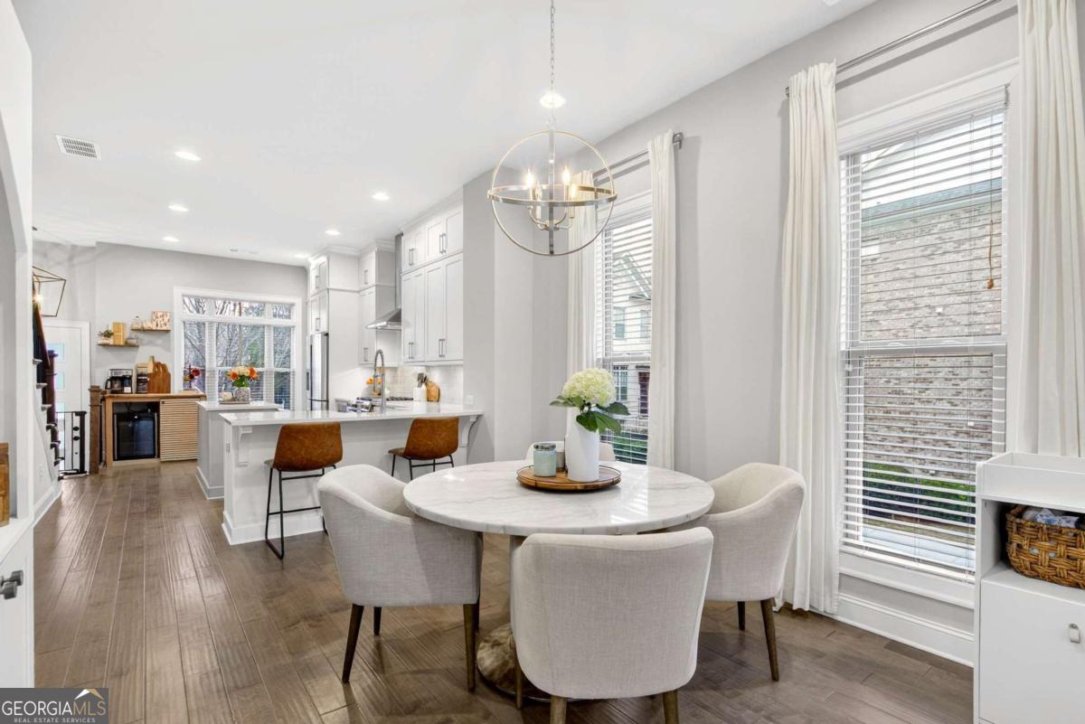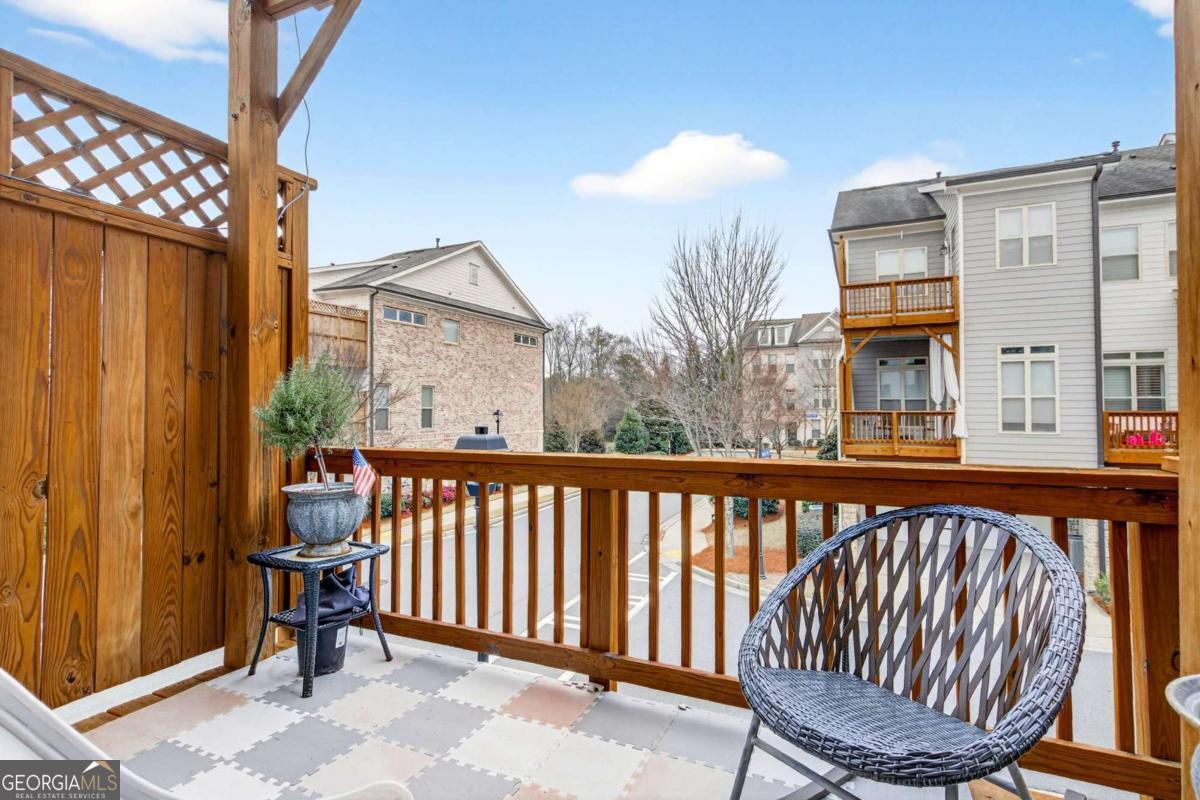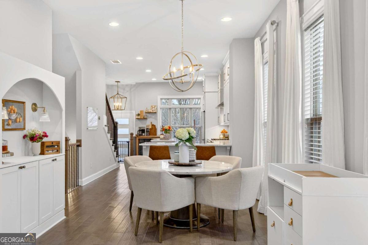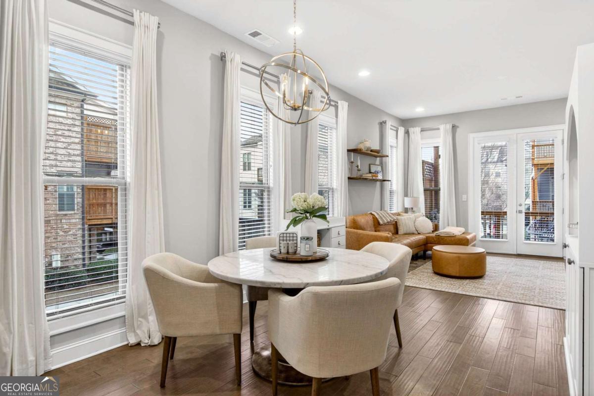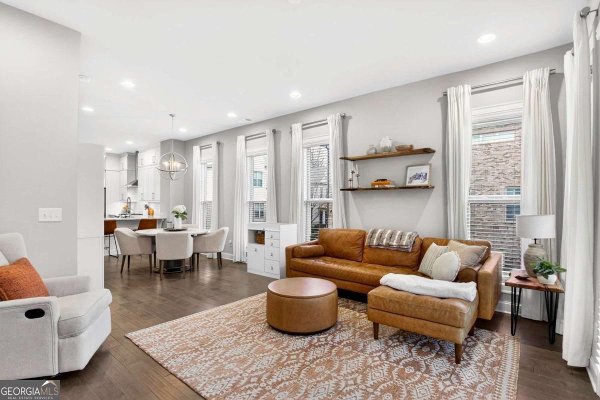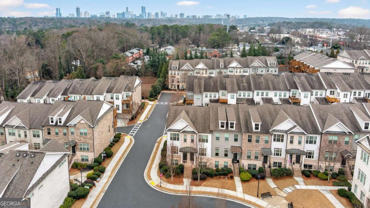 Welcome to 4302 Parkside Place, a stunning end-unit townhome ideally located in the heart of the prestigious Townes at Chastain-a sought-after gated community just minutes from Chastain Park. Built in 2018, this beautifully maintained residence offers an exceptional blend of modern luxury, thoughtful design, and low-maintenance living, enhanced by exceptional natural light from its end-unit position. The bright, open-concept main level showcases 10-foot ceilings, expansive windows, and abundant sunlight throughout. The spacious living area is elevated by custom built-ins and rich custom wood paneling, creating a warm, sophisticated atmosphere ideal for both relaxing and entertaining. The gourmet kitchen is a chef's dream, featuring Cambria Quartz countertops, Wellborn cabinetry with cabinets extending to the ceiling, and premium stainless steel appliances, perfectly blending elegance and functionality. Just off the living room, step onto a covered private deck, offering a peaceful outdoor retreat ideal for morning coffee or enjoying rainy days. Upstairs, two generously sized bedrooms each feature en suite bathrooms, including a luxurious primary suite that opens to a second private deck, providing a private space to unwind. Both bedrooms include walk-in closets, maximizing storage without sacrificing style. The lower level offers a versatile den or home office, ideal for remote work, a media room, or a quiet retreat, adding valuable flexible living space. With 1,801 square feet of thoughtfully designed interiors, this home also includes freshly stained exterior decks, gas heating, and a central HVAC system for year-round comfort. Residents of Townes at Chastain enjoy outstanding amenities including a community swimming pool and BBQ area, all within a secure, beautifully landscaped setting. This turn-key end unit presents a rare opportunity to own in one of Atlanta's most desirable communities, where style, comfort, and location come together seamlessly.