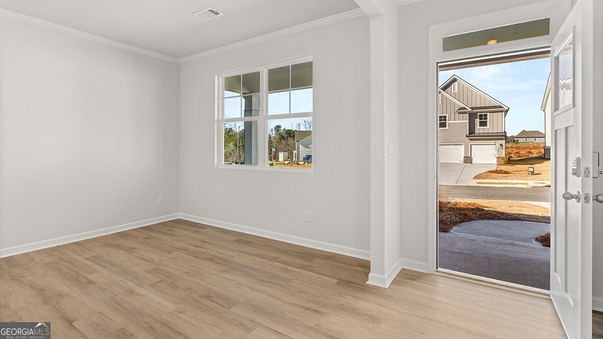 Welcome to 194 Hampton Terrace, featuring the wonderful Hayden floorplan. The Hayden is a two-story, single-family home plan available at Hamptons at Riverwood in Dallas, GA. This plan offers 5 bedrooms and three bathrooms in its 2,511 square feet and an attached 2-car garage. The main level on the Hayden is what makes it stand out most. As you enter the front door, you'll come upon a flex room through an inviting cased opening - the perfect space for whatever you may need, be it a dining room, study, or playroom. Traveling deeper into the home, the spacious kitchen stuns with its large center island, walk-in pantry, stainless-steel appliances, and attached dining area, perfect for entertaining guests or having a nice dinner with family. The adjacent living room is the ideal space to gather with loved ones or relax after a long day of work. A bedroom and full bathroom round out the main level, great for guests or in-laws. Up the stairs to the second floor, you'll come upon the primary suite: a spacious bedroom and bathroom with a double vanity, separate tub and shower, water closet, and large walk-in closet. The upstairs living room is centrally located between three additional bedrooms, the third bathroom, and the laundry room. The Hayden's upstairs is also rich with storage space, boasting two linen closets and a storage closet off the loft area in addition to each bedroom's closet. Does 194 Hampton Terrace in the Hamptons at Riverwood Community sound like a dream come true for you? Get in touch today for more details and availability about this dream home in Dallas, GA!