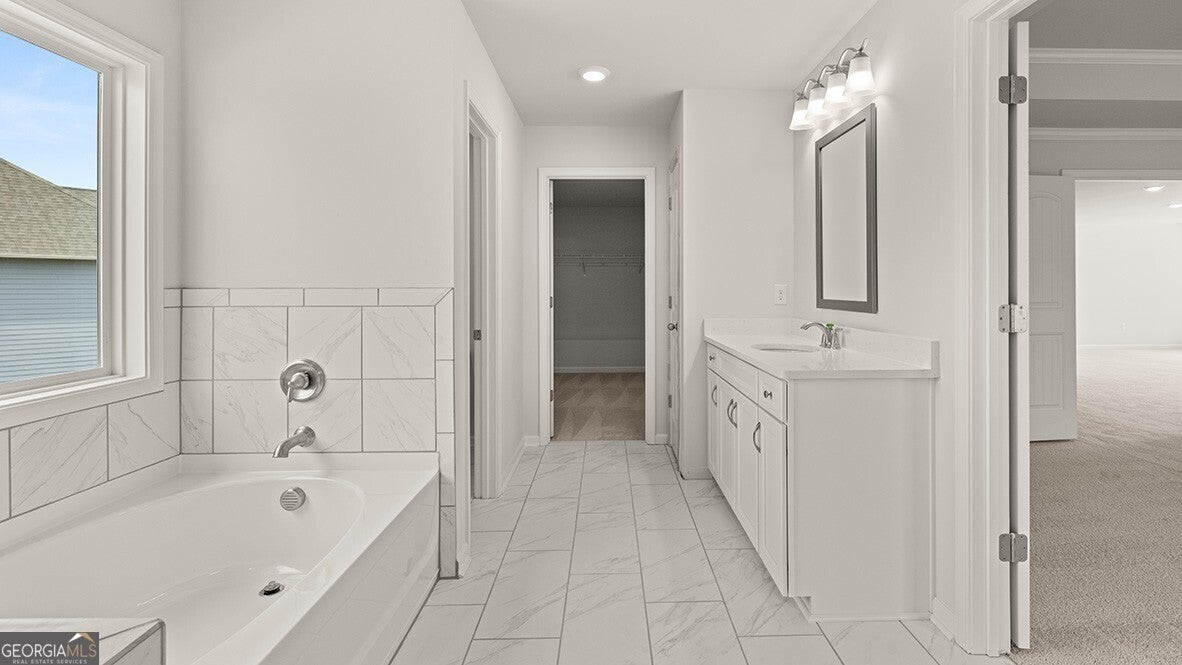 - Interior FeaturesDouble Vanity, High Ceilings, Separate Shower, Soaking Tub, Walk-In Closet(s)