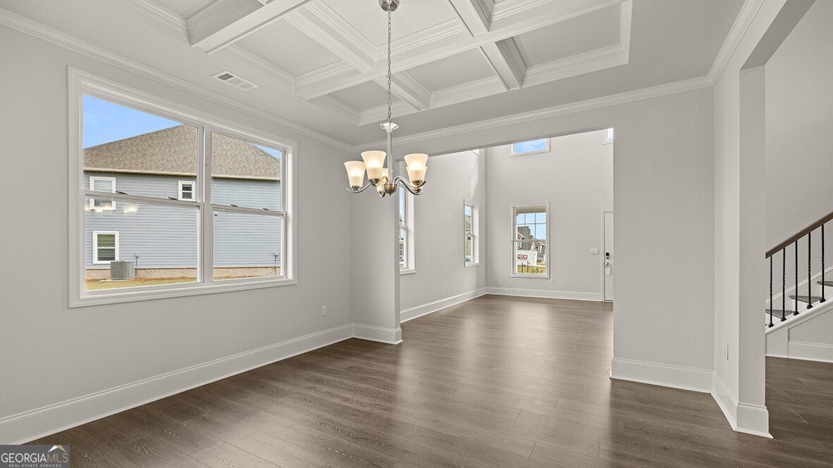 Introducing 145 Parkview Drive in our Dallas, GA community of Hamptons at Riverwood. The Westerly floorplan offers 5 bedrooms and 4 bathrooms in 3,773 square feet with a 3-car garage. This home has all the space your family needs and more! As you walk into the home, you are immediately greeted by the 2-story foyer living area. Walking past the open dining room with coffered ceilings, you enter the grand kitchen. The family's home-cook will enjoy all the kitchen has to offer, including the 42" cabinets, upgraded tile backsplash, and stainless-steel appliances. A large quartz island overlooks into the family room, providing countertop seating. The kitchen opens into a large living room, perfect for entertaining guests or having a cozy night with the family. The main floor also has a full bedroom and bathroom, perfect for guests or in-laws. The 3-car garage provides ample space for you cars and storage. Head upstairs to the open loft area that can be used as a media room or extra living space for your family. The primary suite is located on this level, featuring an oversized bedroom, a deluxe bathroom, and a large walk-in closet. The second floor features an additional 3 bedrooms and 2 bathrooms. These bedrooms and bathrooms are perfect for a growing family and their guests. If it sounds like the Westerly at 145 Parkview Drive is your perfect fit, give us a call today to schedule your on-site appointment and tour in Hamptons at Riverwood in Dallas, GA.