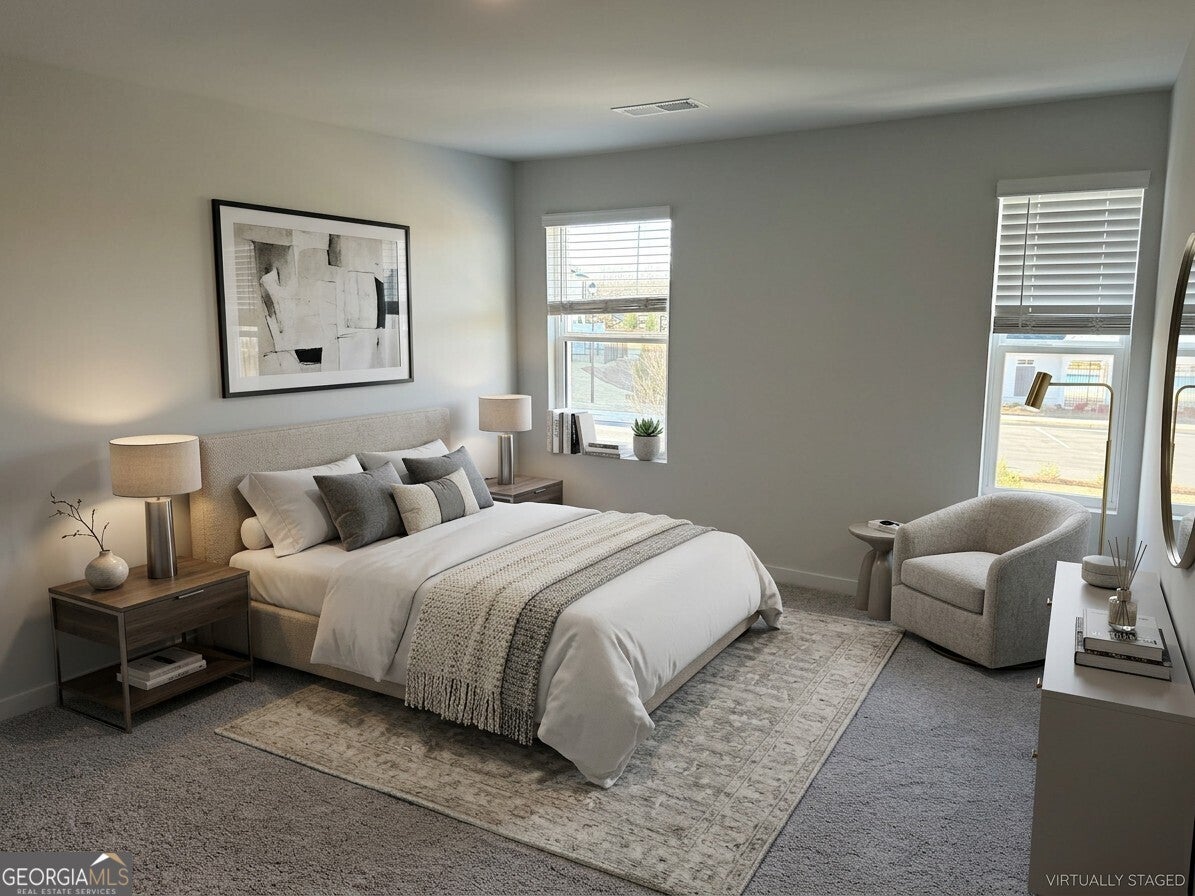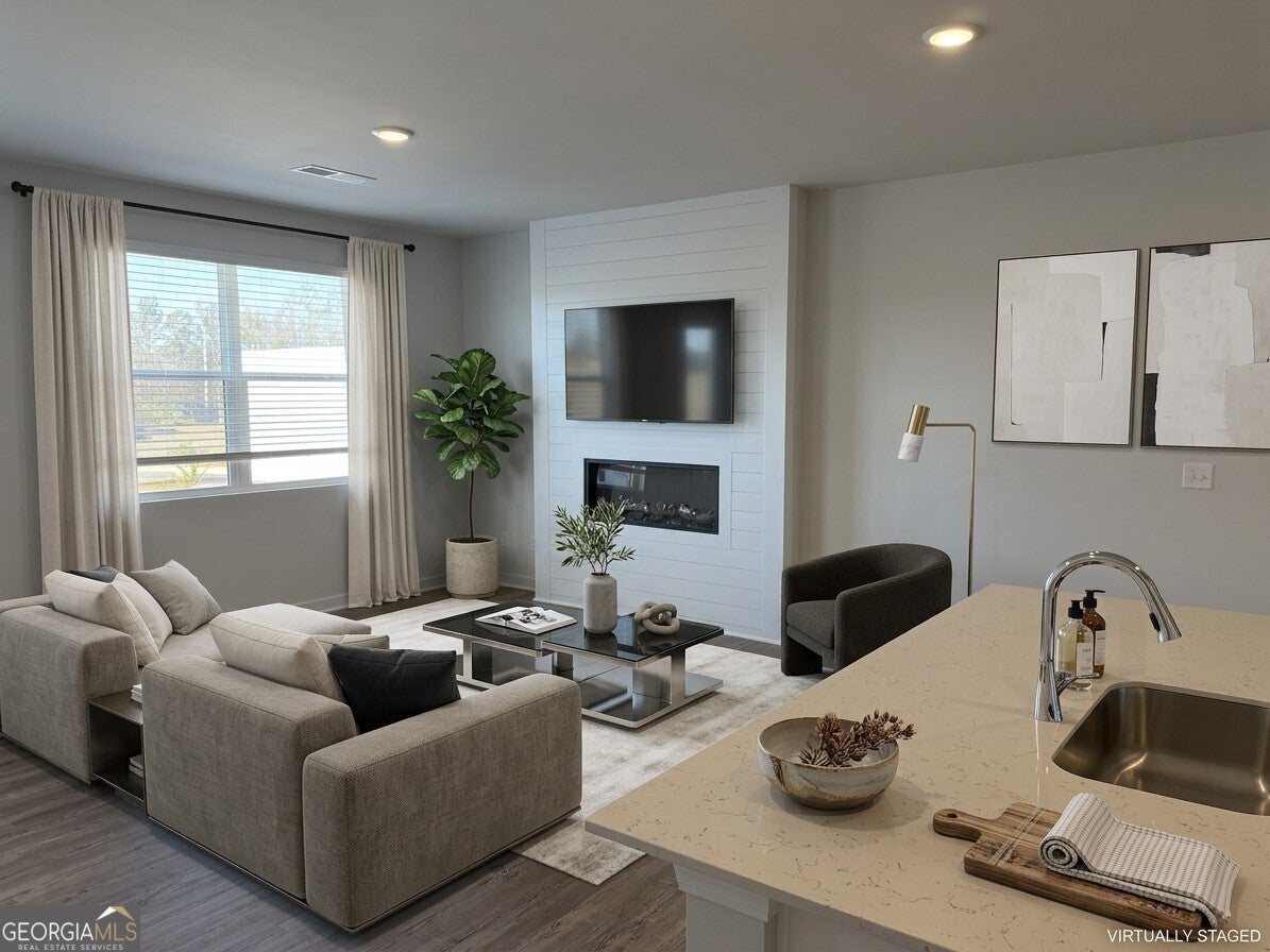 Step into comfort and possibility in this brand-new, never-occupied townhome, thoughtfully designed to feel warm, inviting, and ready to be called home. Filled with natural light and modern finishes, this 3-bedroom, 2.5-bath, two-story residence offers the perfect blend of style, comfort, and functionality. A welcoming extended hallway draws you into the open-concept main level, where luxury vinyl plank flooring, recessed lighting, stone countertops, and all-new stainless steel appliances create a fresh yet cozy atmosphere. The chef-inspired kitchen truly anchors the home, featuring a spacious center island, ample pantry storage, and an easy flow into the dining and living areas ideal for casual family meals, quiet mornings, or hosting friends. The living room's charming fireplace adds a touch of warmth, making it the perfect place to relax and unwind. Upstairs, soft plush carpeting leads to the peaceful owner's suite, your own private retreat with a walk-in closet and a spa-like bathroom complete with double vanities, a soaking tub, and a walk-in shower. Two additional bedrooms, each with walk-in closets, share a beautifully appointed full bath, offering comfortable space for loved ones, guests, or a home office. A two-car garage provides everyday convenience, while the community's resort-style amenities including a swimming pool, playground, clubhouse, and pickleball court invite you to enjoy life just outside your front door. Conveniently located near shopping, dining, banks, and parks, and less than 30 minutes from Lake Lanier, this home offers a welcoming lifestyle in a location you'll love. Pets are negotiable. Don't miss this rare opportunity to live in a pristine, brand-new home schedule your private showing today and experience all this exceptional townhome has to offer.