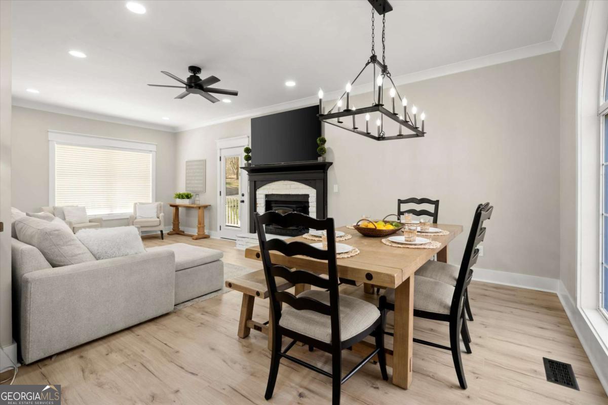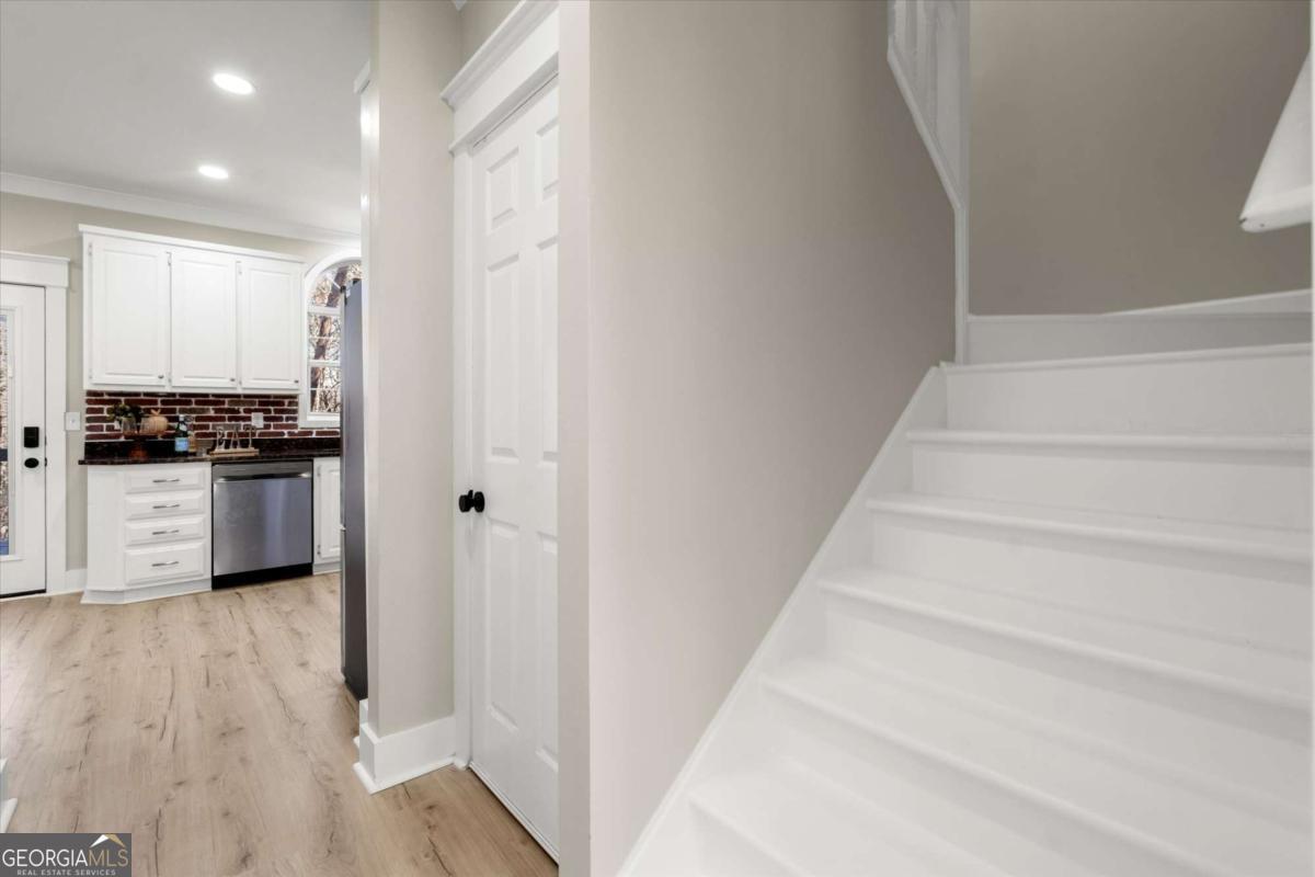 Welcome to 377 Westchester Way, a beautifully refreshed 3-bedroom, 2.5-bath home offering 2,224 finished square feet, including a finished basement. Sitting on a serene .65-acre wooded lot in a quiet neighborhood, it's an incredible find. This home has been thoughtfully updated from top to bottom with a focus on comfort, style, and everyday functionality. Fresh interior paint and durable 12mm luxury vinyl plank flooring run throughout all levels, creating a cohesive and modern look. Cove crown molding, updated baseboards with quarter-round trim, and modern window and door trim add polished detail, while new interior door hardware, light fixtures, outlets, switches, and added recessed lighting brighten every space. The main living areas offer both warmth and flexibility, highlighted by a redesigned fireplace that complements the updated trim and finishes. The kitchen features a new brick backsplash and updated appliances, including a new dishwasher and a refrigerator installed in January 2026 (the refrigerator is available to remain). Double glass doors and stylish barn doors create an ideal home office or flex space, perfect for today's work-from-home lifestyle. Upstairs, bedrooms are enhanced with custom closet systems, including a barn door in the primary closet, adding both function and character. The finished basement adds valuable living space with added electrical and conditioning, ideal for a media room, gym, guest space, or playroom. Exterior updates include a freshly painted porch, new porch stairs and structural supports, new exterior doors, new lattice, and refreshed landscaping with North Carolina river rock, all of which contribute to excellent curb appeal. These extensive updates make this home truly move-in ready and easy to enjoy from day one. Located in a quiet, established neighborhood with easy access to shopping, dining, and all that Canton has to offer, this home is truly move-in ready, no projects, no stress. Updated, spacious, and ready for its next owner, this is the perfect place to start your homeownership journey. Schedule your showing today!
