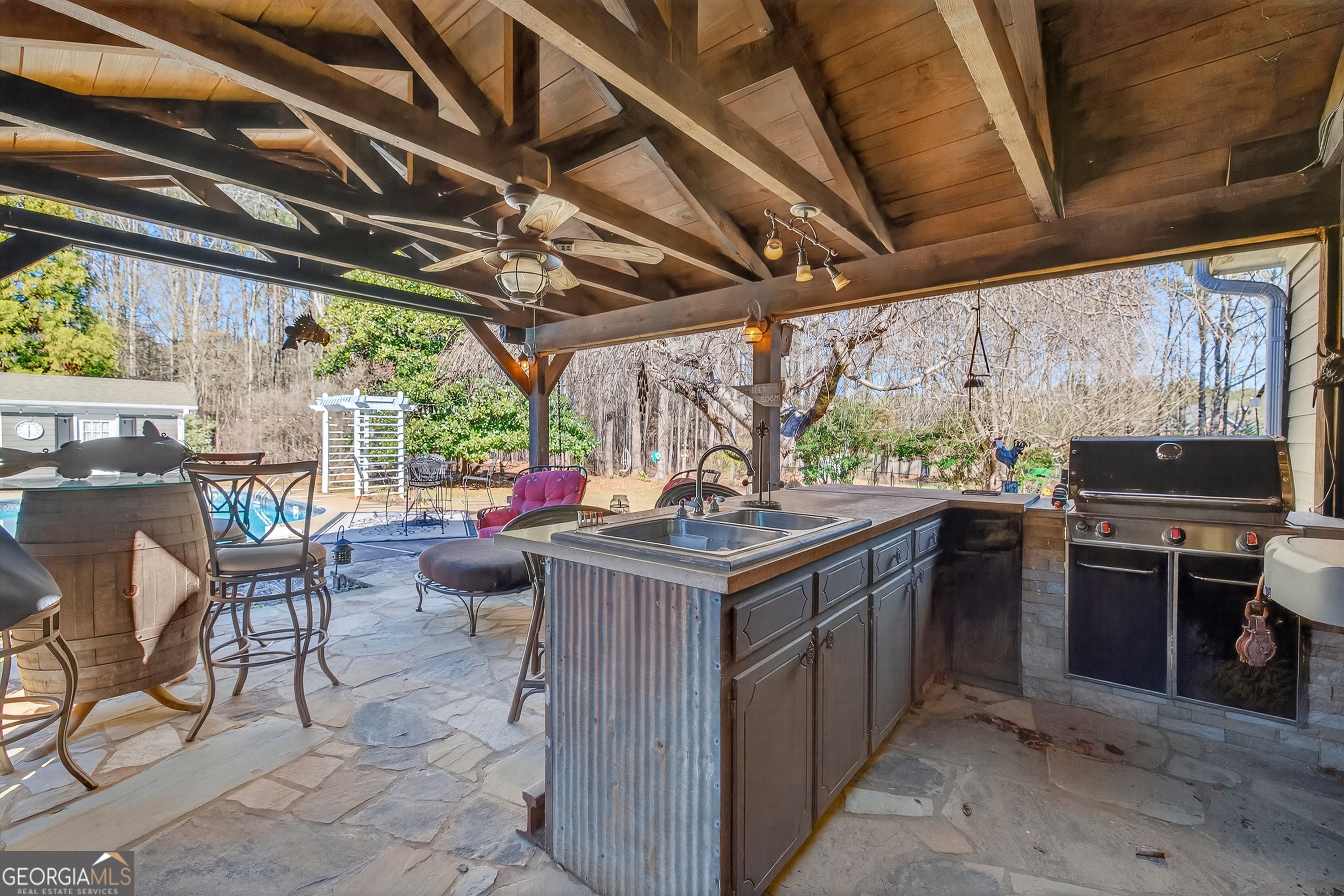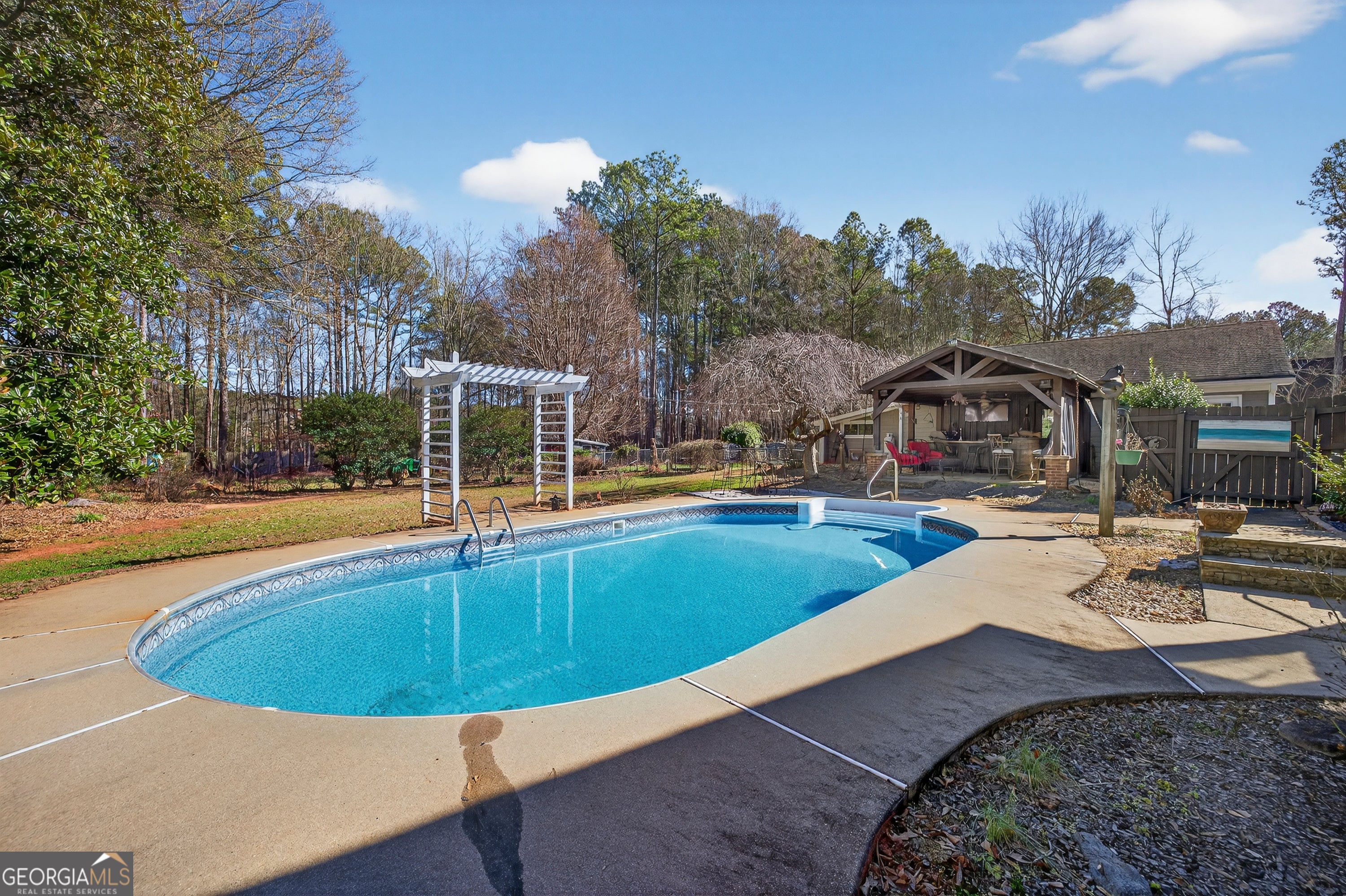 Never before on the market, this special home was designed for making memories. Situated on 2.45 acres in an established Social Circle neighborhood, this 3-bedroom, 2-bath ranch offers space, privacy, and convenience just minutes from sought-after Social Circle schools and historic downtown shops and restaurants. The ranch home features a functional layout with a kitchen offering granite countertops, an office located just off the kitchen, and a separate dining room-perfect for everyday living or entertaining. Outdoors, you'll find a true backyard retreat with an in-ground pool, covered outdoor bar, and built-in grill, creating an ideal setting for gatherings and relaxation. A detached garage provides flexible space for a workshop, storage, or hangout spot. The expansive yard includes a dedicated fenced area behind the pool, ideal for gardening or chickens, offering endless possibilities for those who enjoy outdoor living. Conveniently located near I-20 for easy commuting, this property delivers a rare opportunity to enjoy both privacy and accessibility.