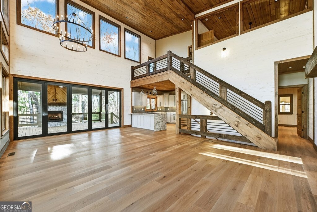 Located in the highly sought-after Aska Adventure Area, this Mountain Modern retreat offers the best of both worlds: a peaceful getaway and a high-end potential investment. Set on 1.79 acres with stunning year-round mountain views from every level, this 4-bedroom + loft, 3.5-bath home blends upscale comfort with rustic charm. Inside, an open-concept layout welcomes you with a gourmet kitchen featuring custom flooring, solid surface countertops, a large farmhouse sink, and a sleek tiled backsplash. The kitchen flows into the spacious great room, where a floor-to-ceiling stacked stone fireplace and a wall of windows bring the outdoors in. Perfect for entertaining or unwinding, the terrace level includes a wet bar/kitchenette, a second stacked stone fireplace, and direct access to one of several expansive decks. Outdoors, enjoy a large party deck with a wood-burning fireplace, plus multiple levels of covered and open-air decking to soak in the views. Custom-tiled bathrooms, hardwood flooring on the main and upper levels, and thoughtfully designed finishes throughout add to the home's appeal. Just minutes from hiking in the National Forest or launching a canoe on the Toccoa River, it's an outdoor lover's paradise. Whether you're looking for a personal mountain retreat or a short-term rental property, this home checks every box.