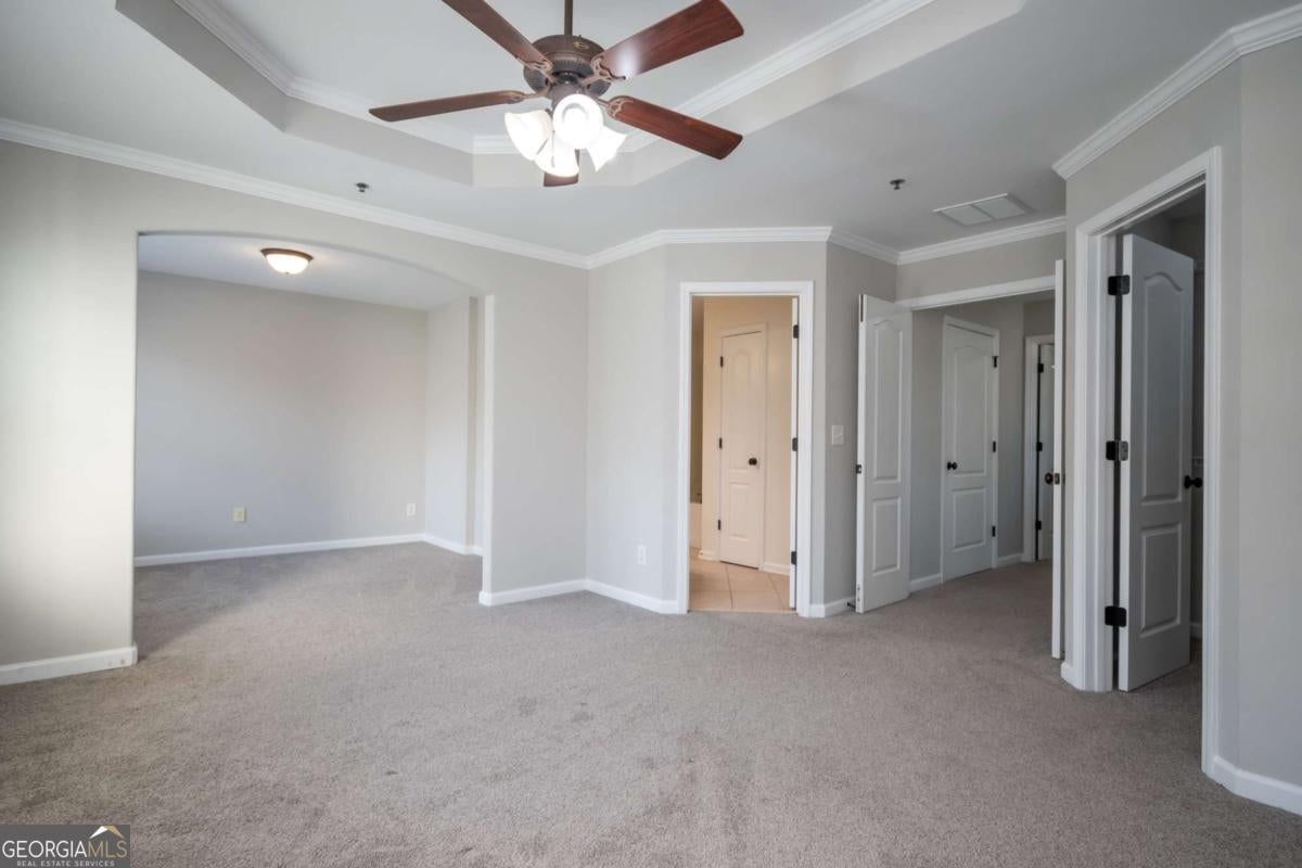 - Interior FeaturesBookcases, Double Vanity, High Ceilings, Pulldown Attic Stairs, Separate Shower, Soaking Tub, Tile Bath, Tray Ceiling(s), Vaulted Ceiling(s), Walk-In Closet(s)