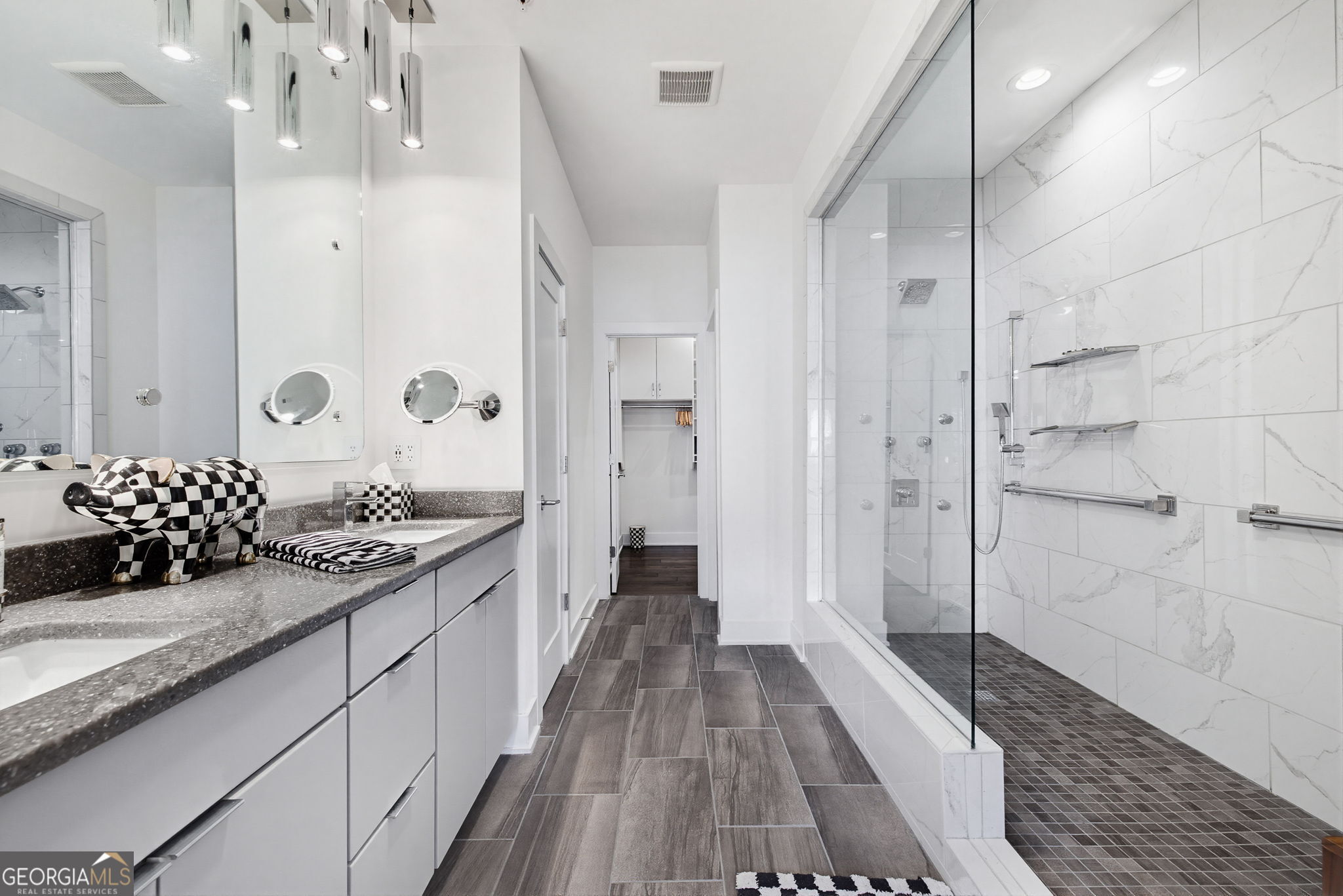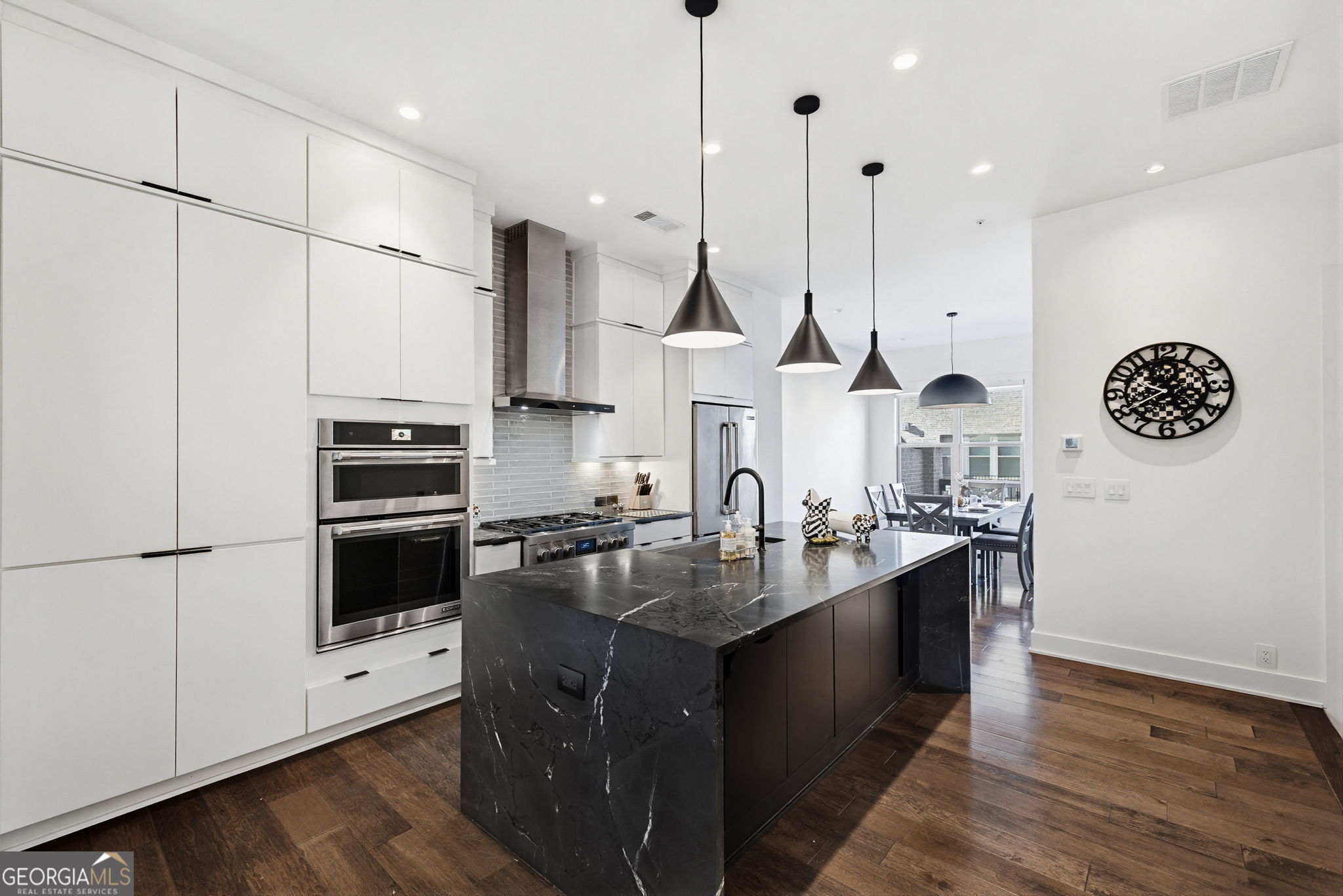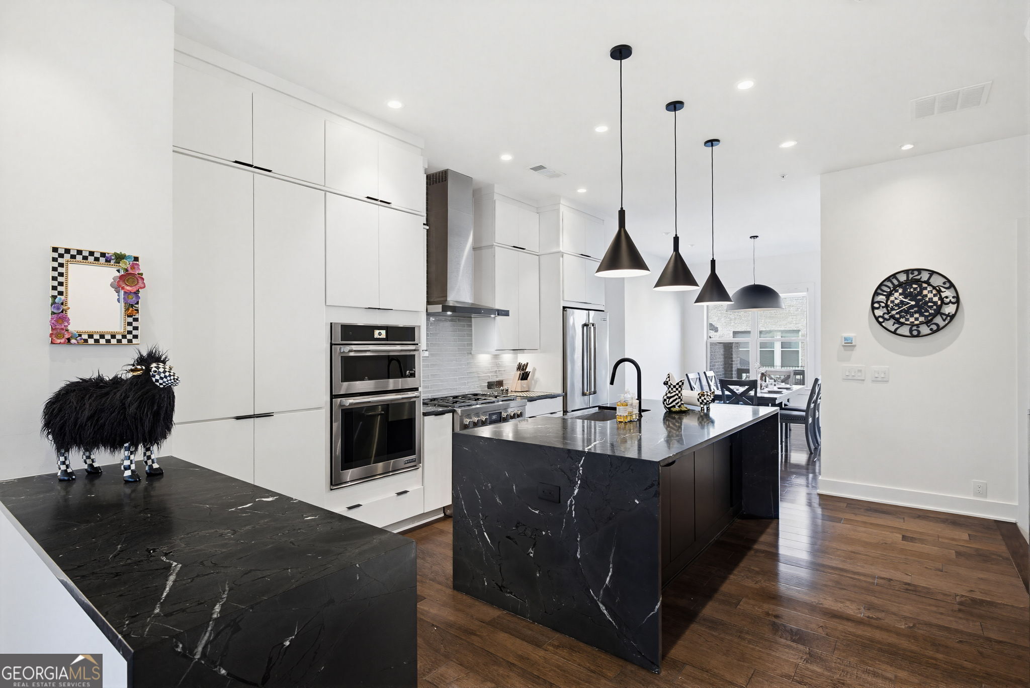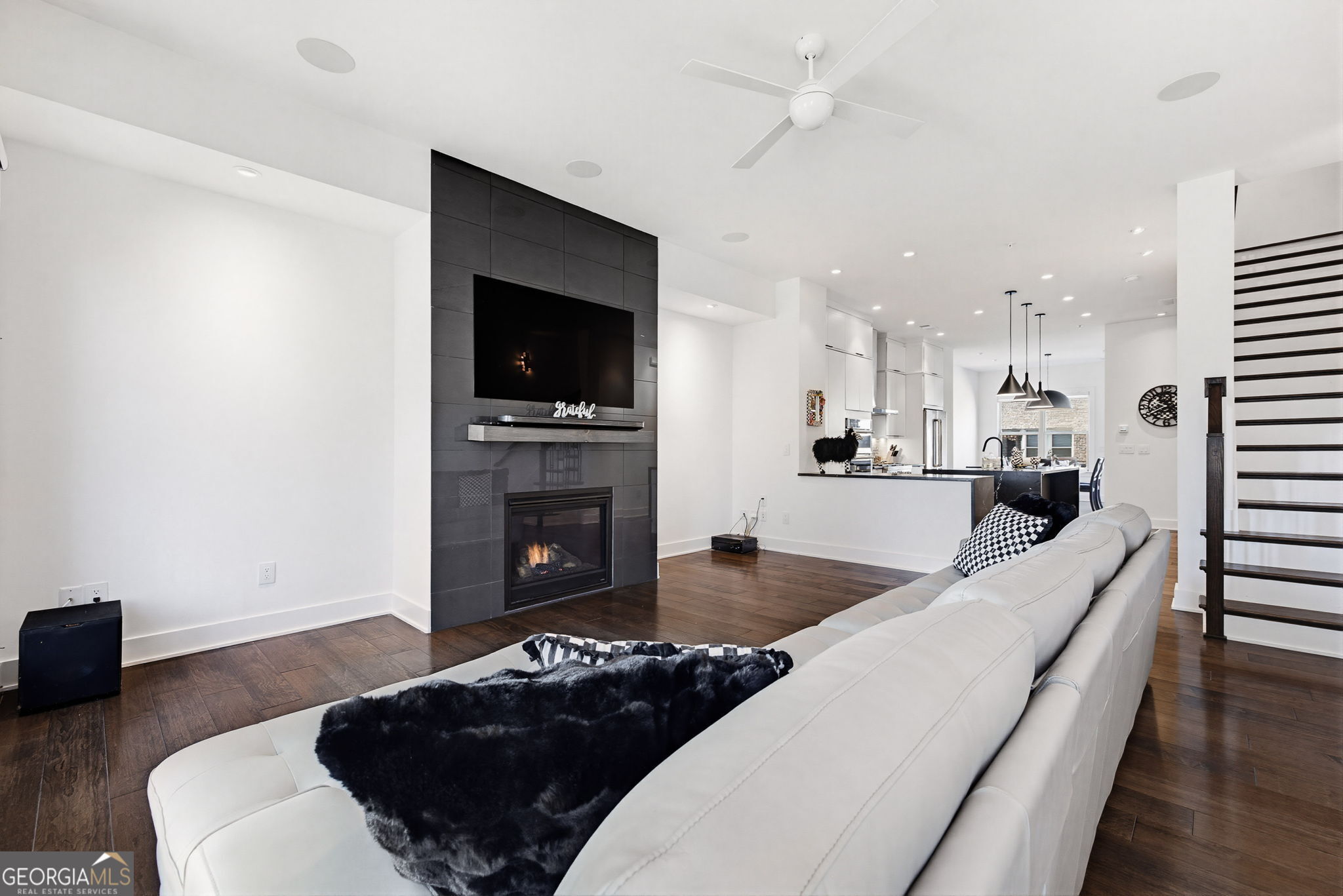 Welcome to Parkhaven, ideally positioned directly across from the expansive greenspace of Blackburn Park. This one-of-a-kind furnished luxury lease townhome offers over 2,400 square feet of thoughtfully designed living space with an exceptional level of customization throughout. Professionally designed and meticulously upgraded, the home features wide-plank hardwood floors, custom solid maple flat-panel cabinetry, premium quartz and quartzite countertops with a waterfall island, designer backsplash, and curated lighting fixtures. The chef's kitchen is anchored by a full Jenn-Air EuroStyle appliance suite, complete with wine cooler and ice maker-ideal for both everyday living and entertaining. The home is offered fully furnished with elevated, designer selections, including Havertys furniture, Ralph Lauren bedroom linens, and luxury Mattress Firm bedding, with two pillow-top beds. Decorative finishes include Mackenzie-Childs gold-gilded shadow box art, clocks, lamps, coordinated bathroom accessories, linens, and rugs, creating a refined and cohesive aesthetic throughout. The light-filled primary suite offers a true spa experience with marble floors and a luxury walk-in shower featuring dual controls, body sprays, and hand wand, along with a custom walk-in closet with built-ins, shelving, and drawers. Additional highlights include high-end surround sound, smart TVs throughout, USB outlets, custom window shades, and a full alarm system with cameras available. The lower level provides a flexible third bedroom suite or secondary living space with built-in custom cabinetry and access to a private courtyard. Enjoy tranquil park views from multiple levels, adding privacy, greenery, and a rare sense of openness. Walking distance to the newly opened Cambridge Square, with Publix, restaurants, and spa services just moments away, this exceptional furnished luxury lease in Parkhaven blends modern design, premium finishes, and unbeatable intown convenience.