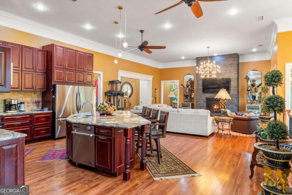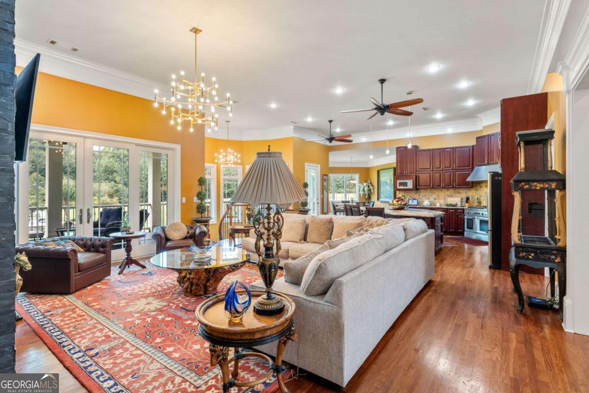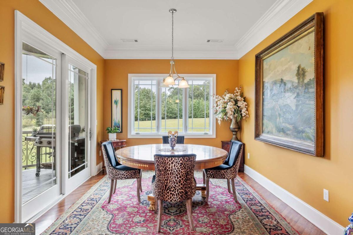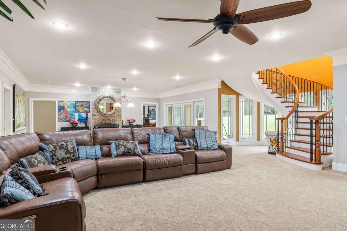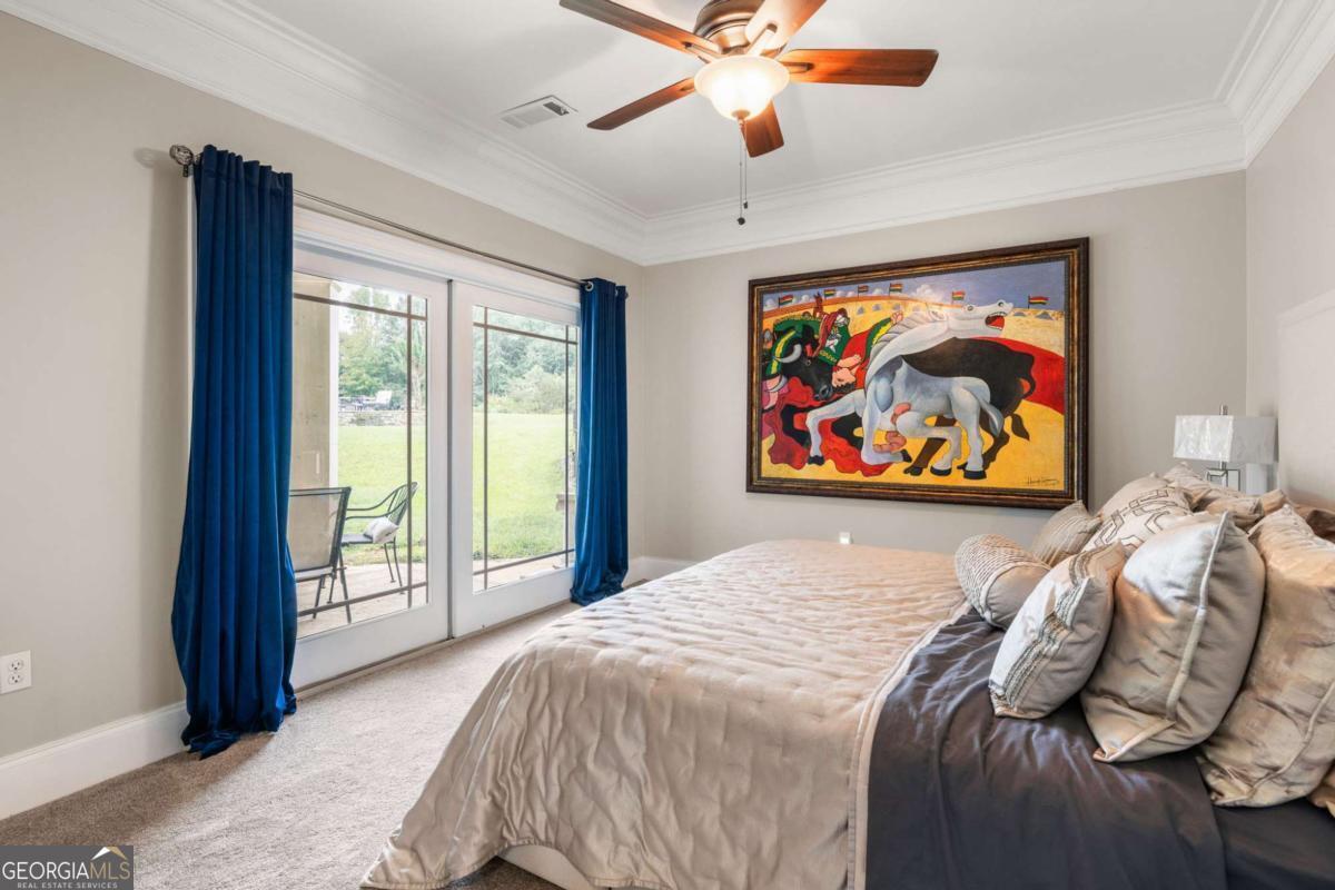 Imagine beginning each day with serene views of your own private two-acre lake, where a family of ducks glides peacefully across sun-dappled waters. Just beyond, an inviting in-ground pool with dual cascading waterfalls and an elegant pergola welcomes you into a remarkable 14-acre private estate. This extraordinary lifestyle awaits at 265 Honeysuckle Lane. This exceptional custom-built luxury residence offers over 6,000 square feet of refined living space, delivering a truly rare opportunity in today's market. With stately curb appeal, generous proportions, a seamless flowing floorplan, and multiple spaces designed for gathering and entertaining, this home is ideally suited for family living, hosting events, or enjoying a tranquil retirement surrounded by nature. Every detail has been thoughtfully curated, and no expense has been spared in preparing this home for its next owner. The grand entry opens into an expansive open-concept living area tailored to modern living, featuring 15-foot ceilings, premium crown molding, and an abundance of natural light. The living room centers around a striking fireplace and flows effortlessly into the gourmet kitchen and formal dining room, which comfortably seats twelve or more guests. A separate breakfast area offers direct access to the rear balcony, perfect for morning coffee or evening relaxation. One wing of the main level is dedicated to the impressive primary suite, bathed in natural light and offering scenic views along with a luxurious, resort-style primary bathroom. The opposite wing provides access to an oversized three-car garage with exceptional storage capacity. A sweeping, ballroom-style curved staircase leads to the terrace level, which features three additional bedrooms, two full bathrooms, a bonus room perfect for a gym, and a spacious great room-each finished with plush luxury carpeting and virgin padding. This level opens directly to the pool area and expansive backyard retreat. The grounds are equally as impressive, featuring eight cleared acres and four wooded acres, creating a private nature preserve. The fully stocked two-acre lake includes catfish, bream, and bass, complete with a flowing fountain and paddleboat for leisurely enjoyment. This fully fenced in, move-in-ready estate has been meticulously updated and includes electric gate entry, a boat garage, a brand-new roof, all new mechanicals, fresh interior and exterior paint, new light fixtures throughout, new tile on the front porch and rear balcony, a new well pump for the 500-foot-deep well, two septic tanks, and a Generac whole-home generator for peace of mind. Public water and sewer connections are conveniently available at the street, offering future flexibility. Located in a quiet community free from light pollution, within an excellent school district, less than ten minutes from Publix, and under forty minutes from downtown Atlanta, this property offers unmatched privacy without sacrificing convenience. Come experience the luxury, the land, the lake, and the star-filled skies of Honeysuckle Lane. There is truly no substitute for seeing this remarkable estate in person.