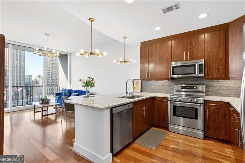 Step into 1010 Midtown and discover one of the building's largest one-bedroom, one-bath floor-plans, designed for ultimate comfort and luxury. This spacious residence features a welcoming entry foyer and boasts floor-to-ceiling windows in both the bedroom and living room, filling the space with natural light. Enjoy the convenience of custom, electric Lutron shades and custom kitchen finishes, including Bosch appliances and granite countertops. The spacious walk-in closet offers ample storage, and the west-facing balcony provides stunning sunset views. Additionally, the HVAC system was replaced in 2025, ensuring modern efficiency and comfort. Residents also enjoy top-tier amenities, including a 24/7 concierge, a fully-equipped fitness center, a renovated clubroom with a catering kitchen, and an outdoor lounge on the 8th-floor terrace with beautiful gardens. Relax by the resort-style pool, complete with grills and entertainment areas. Ideally located just minutes from dining, shopping, transportation, and cultural landmarks like the High Museum and Piedmont Park, this residence truly epitomizes city living.