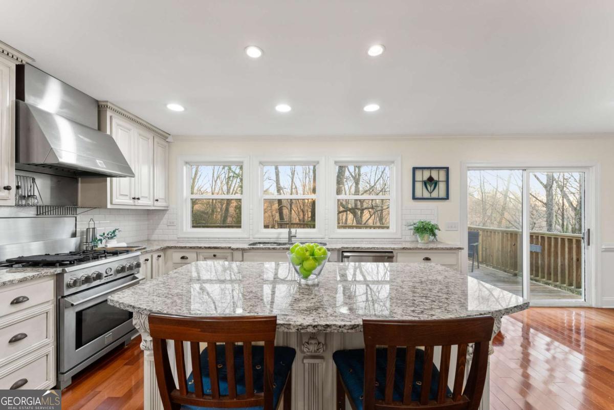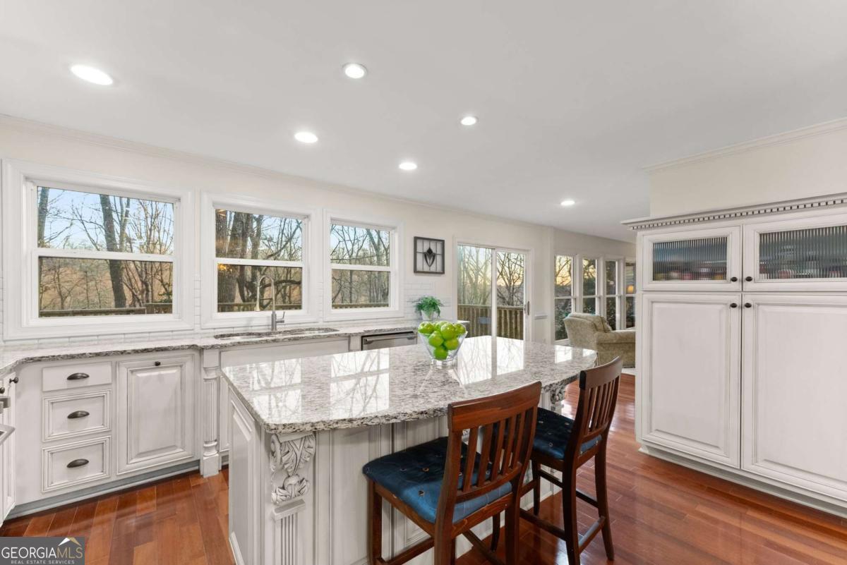 Make an offer! Enchanting lakeside retreat nestled in the heart of Gainesville just steps from Wessell Park! This home offers an unparalleled blend of elegance, comfort, and nature. Fronting Lake Lanier without the hassle of a dock, the property is perfect for launching your kayak or paddleboard right from your backyard. Step inside to find a completely renovated gourmet kitchen, designed to impress with high-end finishes and modern conveniences. Hardwood floors flow throughout the home, complementing the warmth of a real wood-burning fireplace and the charm of built-in bookshelves. The sunroom, featuring a breathtaking wall of windows for sunrise, brings in natural light and serene views of the whimsical, private backyard surrounded by mature woodlands. Every bathroom is beautifully updated and features luxurious heated tile floors for ultimate comfort. The versatile basement serves as a perfect guest suite, teen hangout, or bonus room to fit your lifestyle. Outside, the brick-paved courtyard offers a welcoming entrance and an ideal spot to enjoy your morning coffee. This home is a rare gem blending modern upgrades with timeless character, all in a prime Gainesville location.