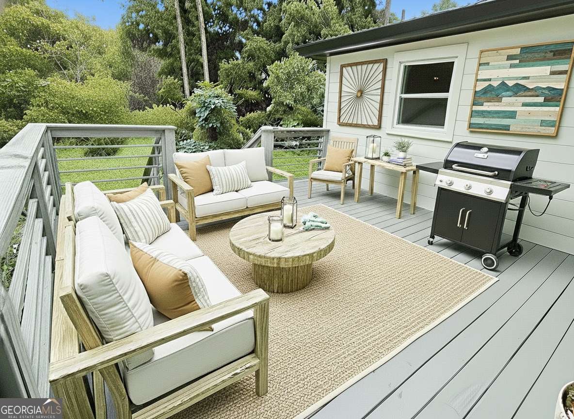 Fall in love with a home where timeless brick charm meets modern luxury in the perfect Decatur location! Text SNEAKPEAK to 59559 for your private online look. UP TO $4000 TO USE TOWARDS RATE BUYDOWN/CLOSING COSTS WHEN USING OUR PREFERRED LENDER! Just minutes from Downtown Atlanta, Downtown Decatur, Emory, and East Lake Country Club. Every detail of this beautifully renovated home has been thoughtfully curated, blending timeless brick architecture with refined modern luxury. This rare 4-bedroom, 2.5-bath retreat invites you into a light-filled, open-concept living space designed for both everyday comfort and effortless entertaining. The heart of the home is a stunning chef's kitchen featuring premium stainless steel appliances, a 5-burner gas range, a dramatic quartz waterfall island, and a custom Hot Glass backsplash that glows with under-cabinet lighting. Unwind in the private primary suite with your own spa-like escape after a long day, while three additional spacious bedrooms offer room to grow, work, or host guests. A generously sized laundry room with a quartz vanity and stainless steel utility sink, adding ease to everyday living. Mudroom area and oversized pantry for storage. Step outside to a large deck overlooking a lush backyard with a Georgia peach tree, perfect for morning coffee, sunset dinners, and evenings under the stars. A security system with cameras provides peace of mind. The owner is a licensed Realtor in the state of Georgia.