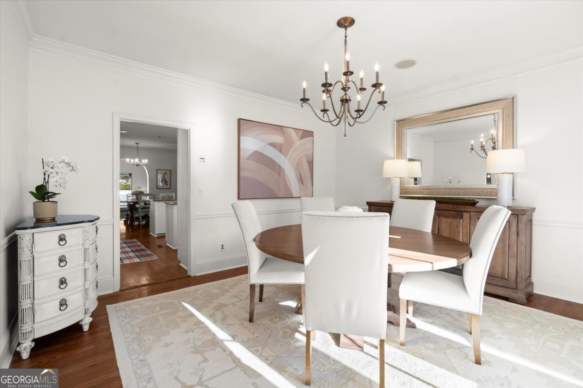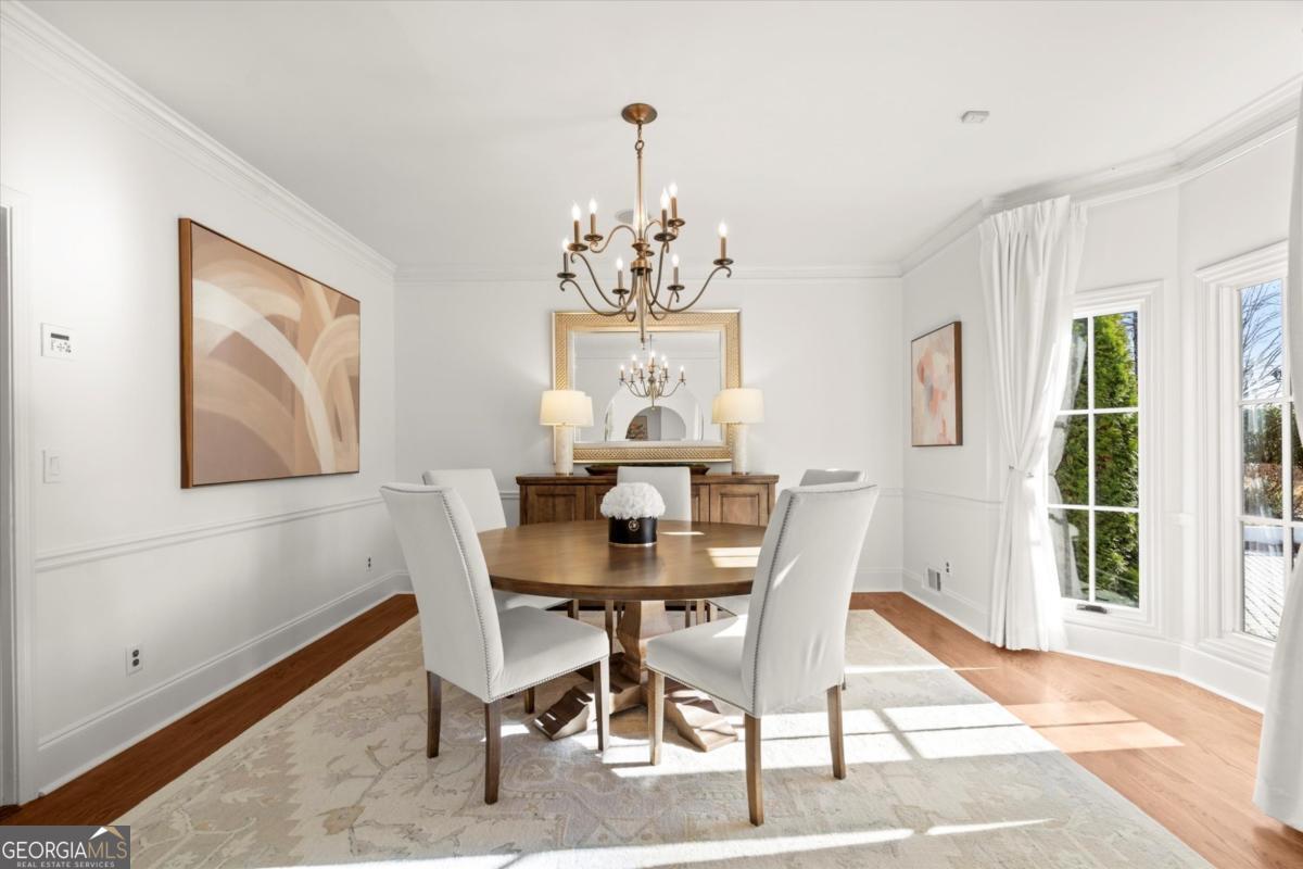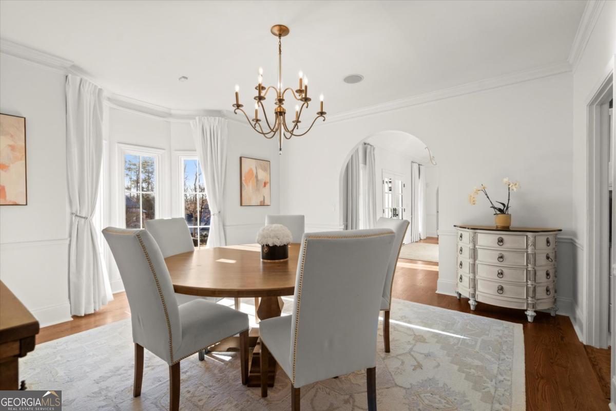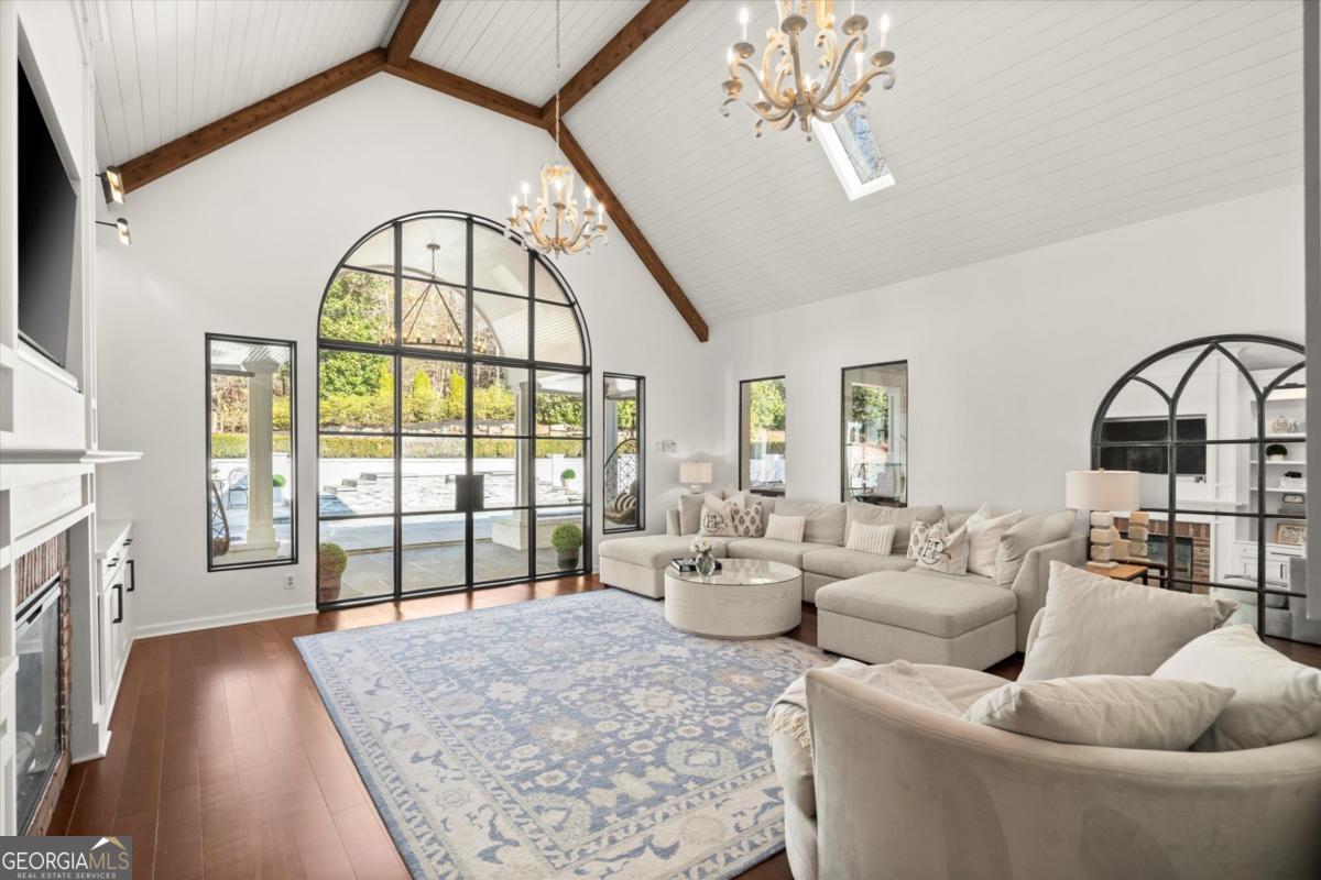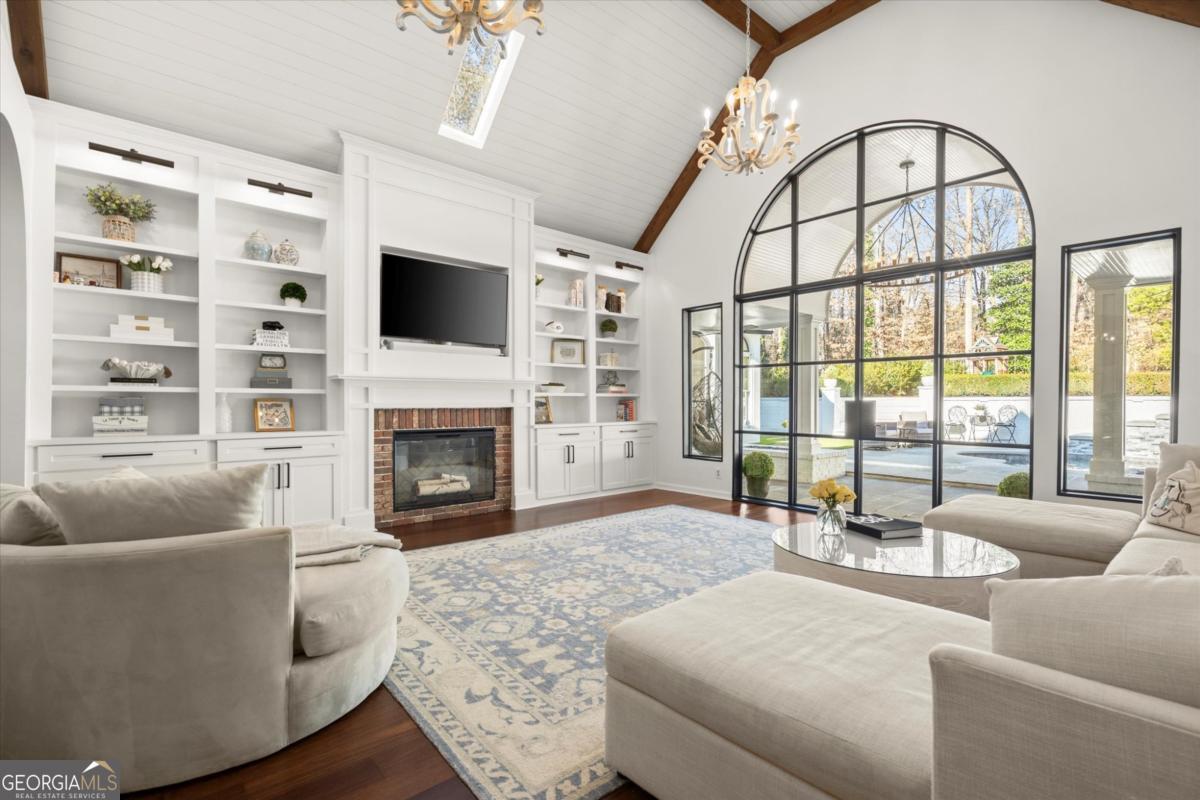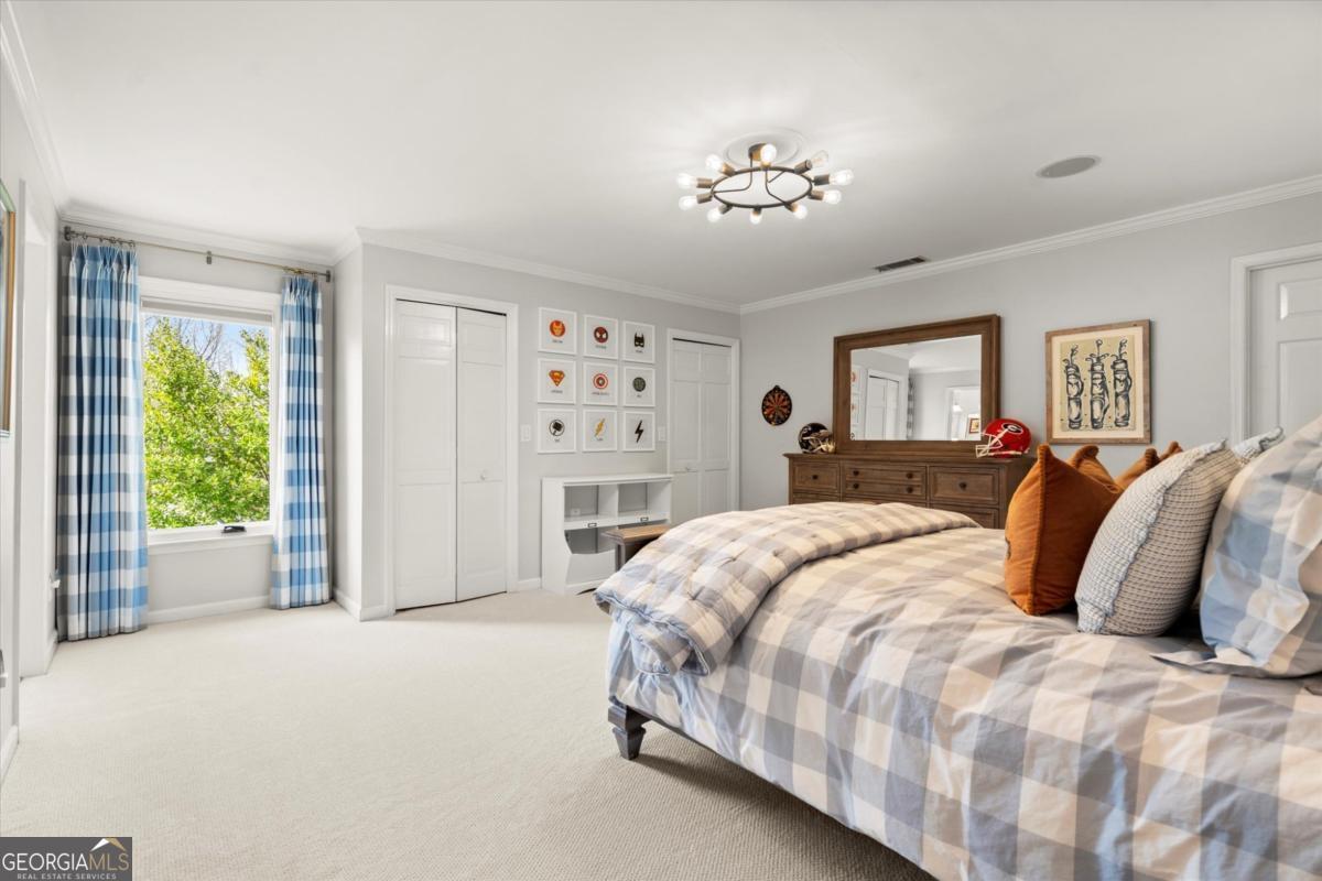 Tucked away on a quiet cul-de-sac in the prestigious Atlanta Country Club community and located within Cobb County's top-rated school district, this custom-designed, all-brick residence (stucco on top) is a true entertainer's retreat. Thoughtfully positioned on a beautifully landscaped half-acre+ flat lot, the home offers exceptional privacy, generous separation from neighboring properties, and a rare sense of both exclusivity and community. The resort-style backyard renovation is nothing short of spectacular. Designed for year-round enjoyment, it features a walkout level saltwater, heated pool and spa with WiFi-controlled, multicolored lighting and flagstone decking, a private putting green, an expansive outdoor kitchen and grilling area, and plenty of flat, grassy space-all fully fenced and surrounded by lush landscaping for total seclusion. Whole-home audio with four independent outdoor zones completes this exceptional outdoor living experience. A circular paver driveway and ample parking provide ease for everyday living and effortless entertaining. Inside, the home showcases solid construction and timeless design, lovingly maintained by the current owner, who grew up in the residence. The floor plan seamlessly blends formal and casual spaces, ideal for both intimate gatherings and larger celebrations. A gracious foyer opens to expansive main living and dining areas adorned with hardwood floors and abundant natural light, creating a warm yet refined atmosphere. The kitchen is both functional and elegant, featuring white cabinetry, a large center island, Thermador double ovens, and a Viking gas cooktop, perfect for cooking and hosting simultaneously. The kitchen flows into a light-filled sunroom with built-in bookshelves and striking steel doors, overlooking the tranquil backyard oasis and pool. The main-level primary wing is a private sanctuary. Along the way, you'll pass a spacious walk-in laundry room. The primary suite offers stunning pool views, a separate private movie room with a double-sided fireplace, and an adjoining circular office with beautiful pitched ceiling-both overlooking the putting green and amazing backyard. The spa-like primary bath includes a corner jetted tub, separate shower, double vanities, two walk-in closets, and a dedicated shoe closet. Also on the main level is a well-appointed private guest suite with a walk-in shower, ideal for visitors. Upstairs, brand-new carpeting leads to two spacious bedrooms connected by a Jack-and-Jill bath. The terrace level expands the living space further with a gym, theater area, playroom, an additional bedroom and full bath, plus abundant unfinished storage. Notable upgrades include a whole-home PowerShare backup generator, Tesla electric car charger, new windows, fresh paint, new carpet. Atlanta Country Club is one of the area's premier private golf clubs, yet notably has no homeowners association and no mandatory club membership. Residents enjoy proximity to The Avenue East Cobb, shopping and dining, Cochran Shoals Riverwalk, Truist Park and The Battery, with quick access to I-75 and GA-400 for convenient travel to Buckhead and beyond. Enjoy a country club lifestyle-or simply the exceptional convenience of this sought-after East Cobb community-with access to top-rated public schools (Sope Creek, Dickerson, and Walton), premier entertainment, outdoor recreation, healthcare, and low Cobb County property taxes.