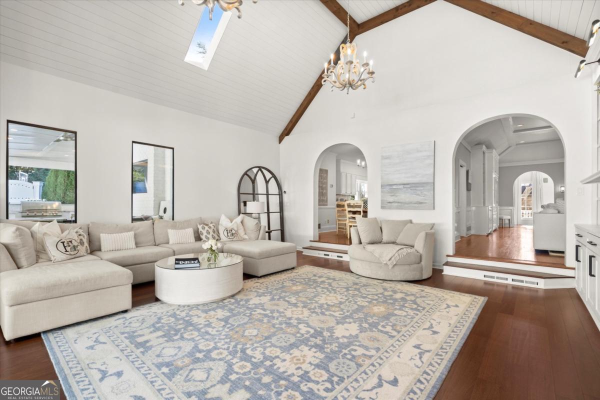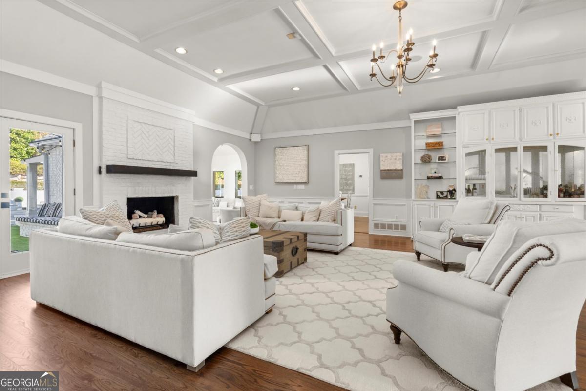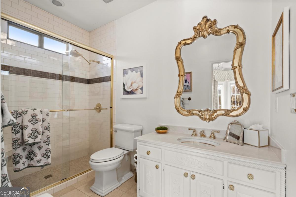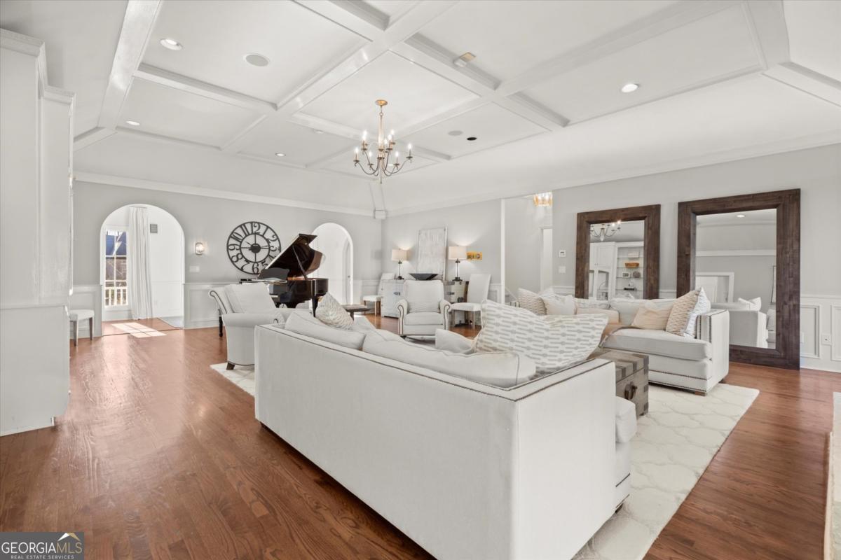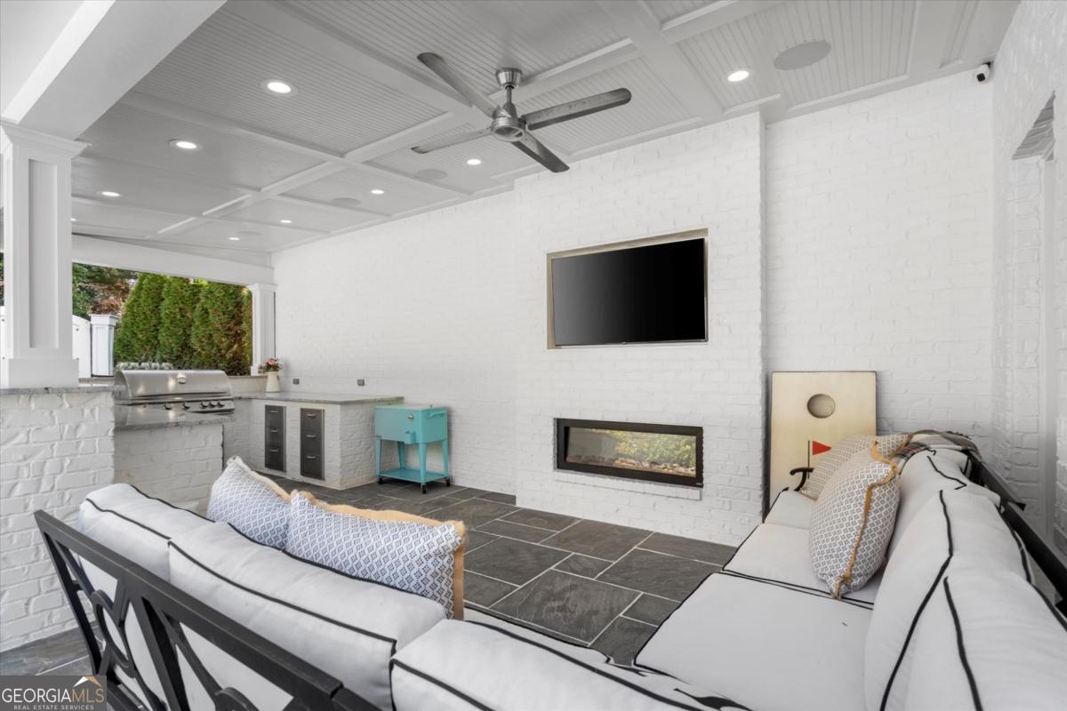 Tucked away on a quiet cul-de-sac in the prestigious Atlanta Country Club community and located within Cobb County's top-rated school district, this custom-designed, all-brick residence (stucco on top) is a true entertainer's retreat. Thoughtfully positioned on a beautifully landscaped half-acre+ flat lot, the home offers exceptional privacy, generous separation from neighboring properties, and a rare sense of both exclusivity and community. The resort-style backyard renovation is nothing short of spectacular. Designed for year-round enjoyment, it features a walkout level saltwater, heated pool and spa with WiFi-controlled, multicolored lighting and flagstone decking, a private putting green, an expansive outdoor kitchen and grilling area, and plenty of flat, grassy space-all fully fenced and surrounded by lush landscaping for total seclusion. Whole-home audio with four independent outdoor zones completes this exceptional outdoor living experience. A circular paver driveway and ample parking provide ease for everyday living and effortless entertaining. Inside, the home showcases solid construction and timeless design, lovingly maintained by the current owner, who grew up in the residence. The floor plan seamlessly blends formal and casual spaces, ideal for both intimate gatherings and larger celebrations. A gracious foyer opens to expansive main living and dining areas adorned with hardwood floors and abundant natural light, creating a warm yet refined atmosphere. The kitchen is both functional and elegant, featuring white cabinetry, a large center island, Thermador double ovens, and a Viking gas cooktop, perfect for cooking and hosting simultaneously. The kitchen flows into a light-filled sunroom with built-in bookshelves and striking steel doors, overlooking the tranquil backyard oasis and pool. The main-level primary wing is a private sanctuary. Along the way, you'll pass a spacious walk-in laundry room. The primary suite offers stunning pool views, a separate private movie room with a double-sided fireplace, and an adjoining circular office with beautiful pitched ceiling-both overlooking the putting green and amazing backyard. The spa-like primary bath includes a corner jetted tub, separate shower, double vanities, two walk-in closets, and a dedicated shoe closet. Also on the main level is a well-appointed private guest suite with a walk-in shower, ideal for visitors. Upstairs, brand-new carpeting leads to two spacious bedrooms connected by a Jack-and-Jill bath. The terrace level expands the living space further with a gym, theater area, playroom, an additional bedroom and full bath, plus abundant unfinished storage. Notable upgrades include a whole-home PowerShare backup generator, Tesla electric car charger, new windows, fresh paint, new carpet. Atlanta Country Club is one of the area's premier private golf clubs, yet notably has no homeowners association and no mandatory club membership. Residents enjoy proximity to The Avenue East Cobb, shopping and dining, Cochran Shoals Riverwalk, Truist Park and The Battery, with quick access to I-75 and GA-400 for convenient travel to Buckhead and beyond. Enjoy a country club lifestyle-or simply the exceptional convenience of this sought-after East Cobb community-with access to top-rated public schools (Sope Creek, Dickerson, and Walton), premier entertainment, outdoor recreation, healthcare, and low Cobb County property taxes.