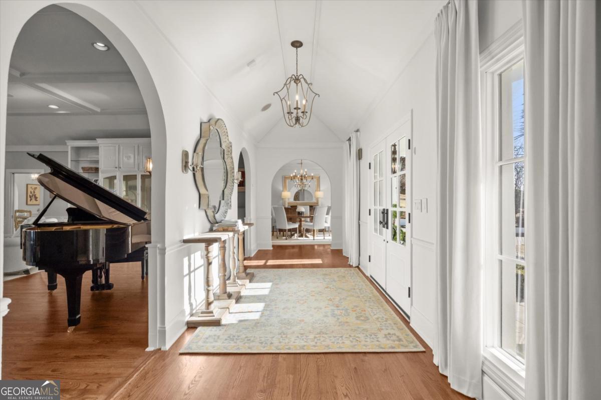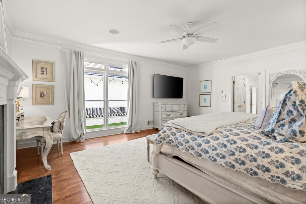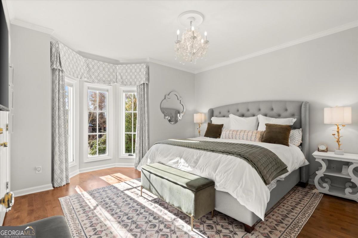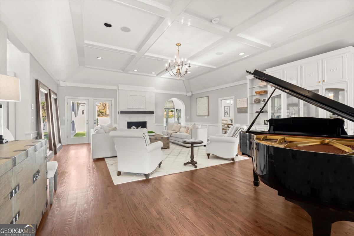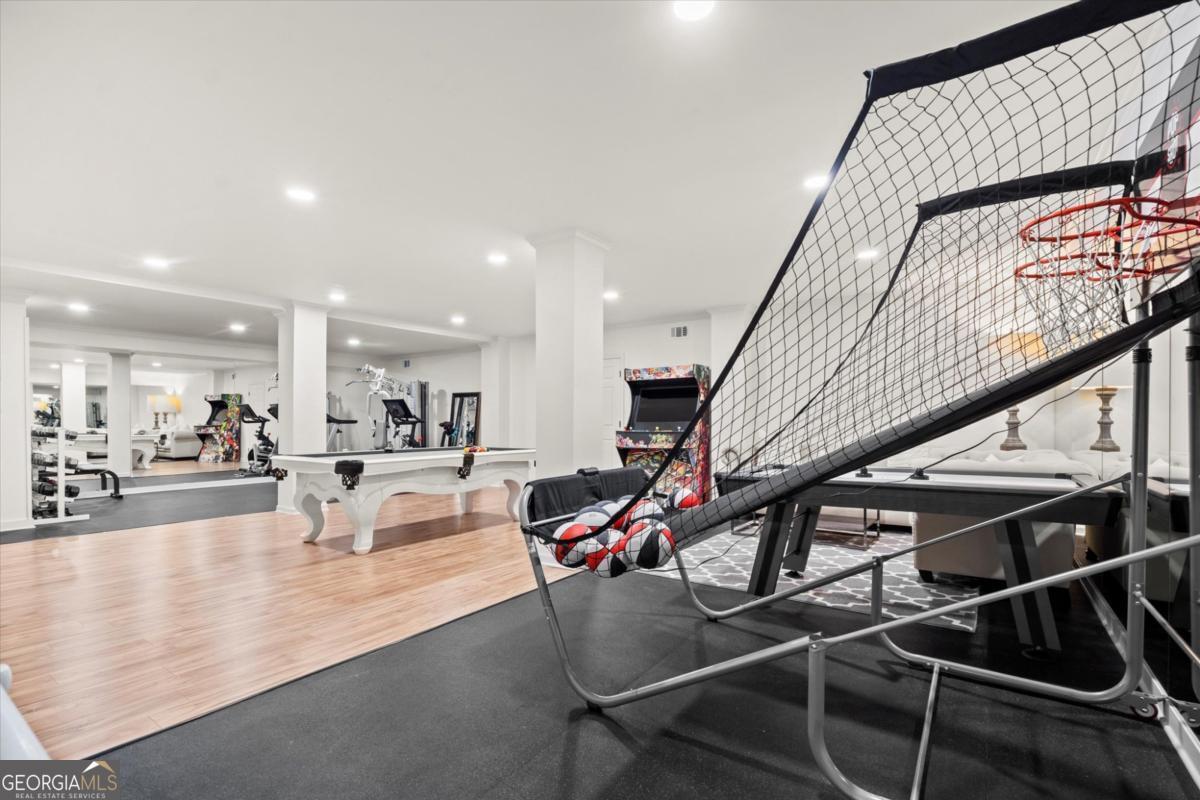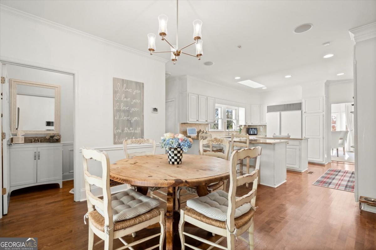 Tucked away on a quiet cul-de-sac in the prestigious Atlanta Country Club community and located within Cobb County's top-rated school district, this custom-designed, all-brick residence (stucco on top) is a true entertainer's retreat. Thoughtfully positioned on a beautifully landscaped half-acre+ flat lot, the home offers exceptional privacy, generous separation from neighboring properties, and a rare sense of both exclusivity and community. The resort-style backyard renovation is nothing short of spectacular. Designed for year-round enjoyment, it features a walkout level saltwater, heated pool and spa with WiFi-controlled, multicolored lighting and flagstone decking, a private putting green, an expansive outdoor kitchen and grilling area, and plenty of flat, grassy space-all fully fenced and surrounded by lush landscaping for total seclusion. Whole-home audio with four independent outdoor zones completes this exceptional outdoor living experience. A circular paver driveway and ample parking provide ease for everyday living and effortless entertaining. Inside, the home showcases solid construction and timeless design, lovingly maintained by the current owner, who grew up in the residence. The floor plan seamlessly blends formal and casual spaces, ideal for both intimate gatherings and larger celebrations. A gracious foyer opens to expansive main living and dining areas adorned with hardwood floors and abundant natural light, creating a warm yet refined atmosphere. The kitchen is both functional and elegant, featuring white cabinetry, a large center island, Thermador double ovens, and a Viking gas cooktop, perfect for cooking and hosting simultaneously. The kitchen flows into a light-filled sunroom with built-in bookshelves and striking steel doors, overlooking the tranquil backyard oasis and pool. The main-level primary wing is a private sanctuary. Along the way, you'll pass a spacious walk-in laundry room. The primary suite offers stunning pool views, a separate private movie room with a double-sided fireplace, and an adjoining circular office with beautiful pitched ceiling-both overlooking the putting green and amazing backyard. The spa-like primary bath includes a corner jetted tub, separate shower, double vanities, two walk-in closets, and a dedicated shoe closet. Also on the main level is a well-appointed private guest suite with a walk-in shower, ideal for visitors. Upstairs, brand-new carpeting leads to two spacious bedrooms connected by a Jack-and-Jill bath. The terrace level expands the living space further with a gym, theater area, playroom, an additional bedroom and full bath, plus abundant unfinished storage. Notable upgrades include a whole-home PowerShare backup generator, Tesla electric car charger, new windows, fresh paint, new carpet. Atlanta Country Club is one of the area's premier private golf clubs, yet notably has no homeowners association and no mandatory club membership. Residents enjoy proximity to The Avenue East Cobb, shopping and dining, Cochran Shoals Riverwalk, Truist Park and The Battery, with quick access to I-75 and GA-400 for convenient travel to Buckhead and beyond. Enjoy a country club lifestyle-or simply the exceptional convenience of this sought-after East Cobb community-with access to top-rated public schools (Sope Creek, Dickerson, and Walton), premier entertainment, outdoor recreation, healthcare, and low Cobb County property taxes.