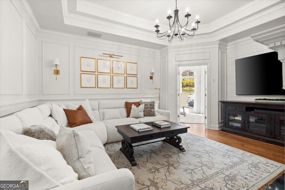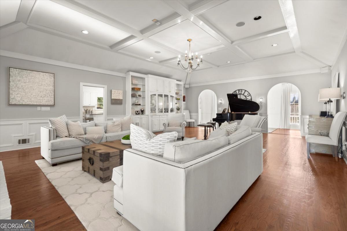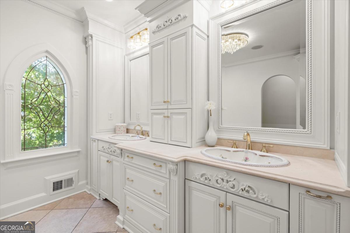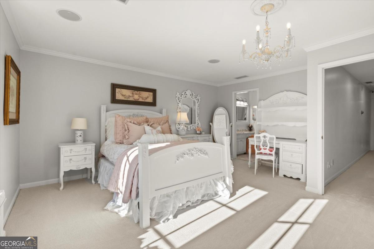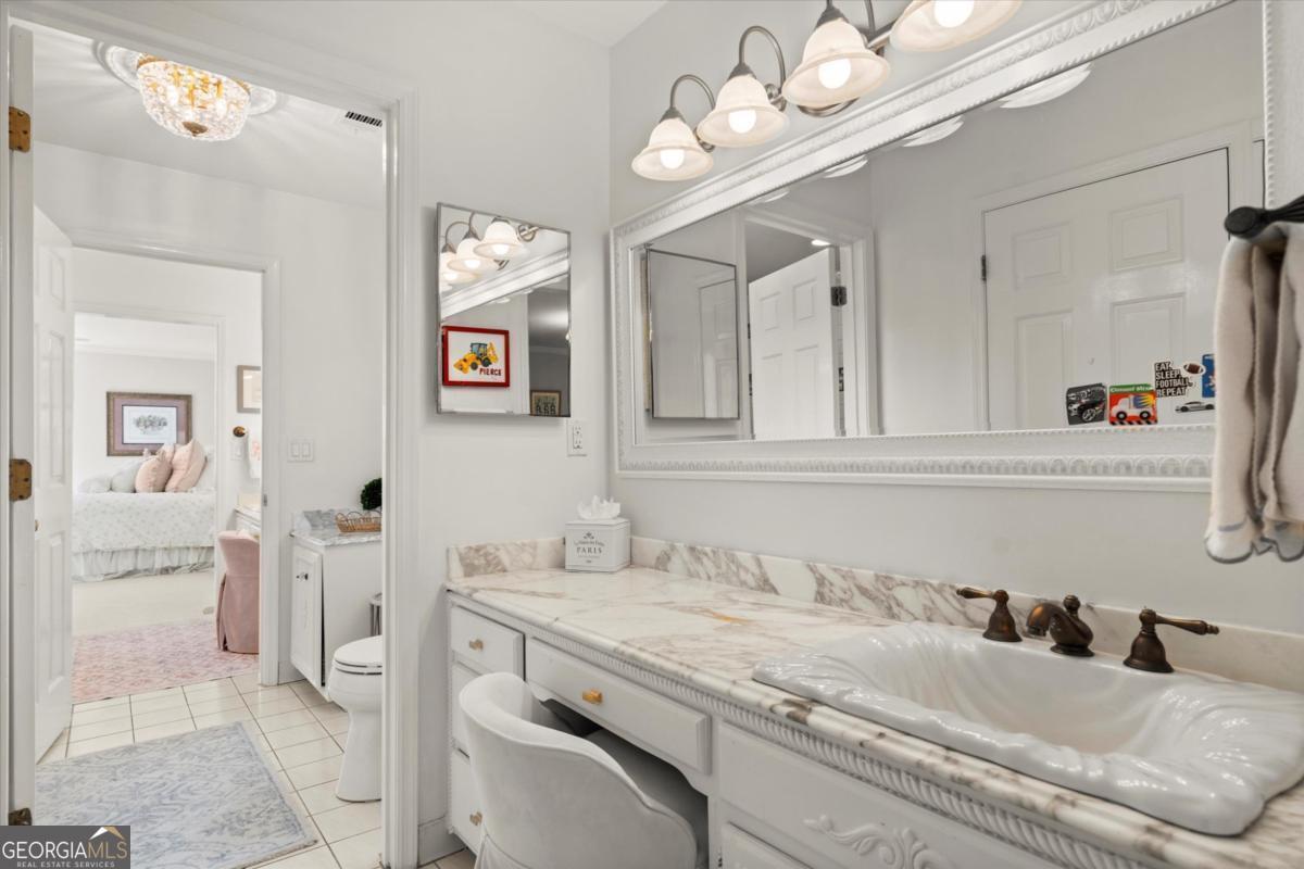 Tucked away on a quiet cul-de-sac in the prestigious Atlanta Country Club community and located within Cobb County's top-rated school district, this custom-designed, all-brick residence (stucco on top) is a true entertainer's retreat. Thoughtfully positioned on a beautifully landscaped half-acre+ flat lot, the home offers exceptional privacy, generous separation from neighboring properties, and a rare sense of both exclusivity and community. The resort-style backyard renovation is nothing short of spectacular. Designed for year-round enjoyment, it features a walkout level saltwater, heated pool and spa with WiFi-controlled, multicolored lighting and flagstone decking, a private putting green, an expansive outdoor kitchen and grilling area, and plenty of flat, grassy space-all fully fenced and surrounded by lush landscaping for total seclusion. Whole-home audio with four independent outdoor zones completes this exceptional outdoor living experience. A circular paver driveway and ample parking provide ease for everyday living and effortless entertaining. Inside, the home showcases solid construction and timeless design, lovingly maintained by the current owner, who grew up in the residence. The floor plan seamlessly blends formal and casual spaces, ideal for both intimate gatherings and larger celebrations. A gracious foyer opens to expansive main living and dining areas adorned with hardwood floors and abundant natural light, creating a warm yet refined atmosphere. The kitchen is both functional and elegant, featuring white cabinetry, a large center island, Thermador double ovens, and a Viking gas cooktop, perfect for cooking and hosting simultaneously. The kitchen flows into a light-filled sunroom with built-in bookshelves and striking steel doors, overlooking the tranquil backyard oasis and pool. The main-level primary wing is a private sanctuary. Along the way, you'll pass a spacious walk-in laundry room. The primary suite offers stunning pool views, a separate private movie room with a double-sided fireplace, and an adjoining circular office with beautiful pitched ceiling-both overlooking the putting green and amazing backyard. The spa-like primary bath includes a corner jetted tub, separate shower, double vanities, two walk-in closets, and a dedicated shoe closet. Also on the main level is a well-appointed private guest suite with a walk-in shower, ideal for visitors. Upstairs, brand-new carpeting leads to two spacious bedrooms connected by a Jack-and-Jill bath. The terrace level expands the living space further with a gym, theater area, playroom, an additional bedroom and full bath, plus abundant unfinished storage. Notable upgrades include a whole-home PowerShare backup generator, Tesla electric car charger, new windows, fresh paint, new carpet. Atlanta Country Club is one of the area's premier private golf clubs, yet notably has no homeowners association and no mandatory club membership. Residents enjoy proximity to The Avenue East Cobb, shopping and dining, Cochran Shoals Riverwalk, Truist Park and The Battery, with quick access to I-75 and GA-400 for convenient travel to Buckhead and beyond. Enjoy a country club lifestyle-or simply the exceptional convenience of this sought-after East Cobb community-with access to top-rated public schools (Sope Creek, Dickerson, and Walton), premier entertainment, outdoor recreation, healthcare, and low Cobb County property taxes.
