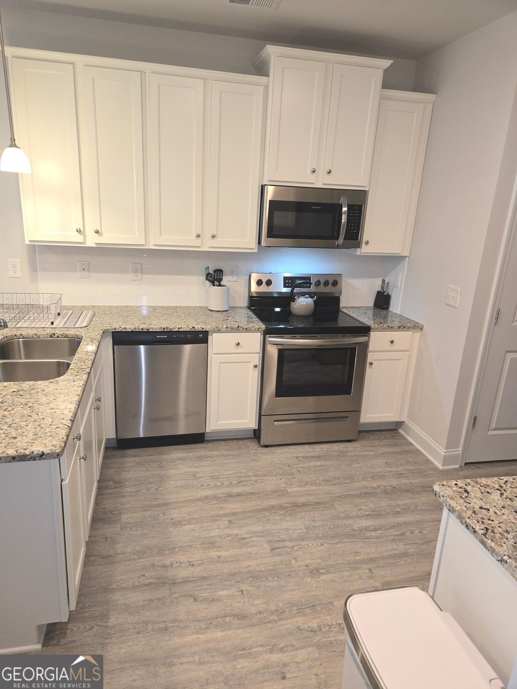 - AppliancesDishwasher, Disposal, Ice Maker, Microwave, Oven/Range (Combo), Refrigerator, Stainless Steel Appliance(s)