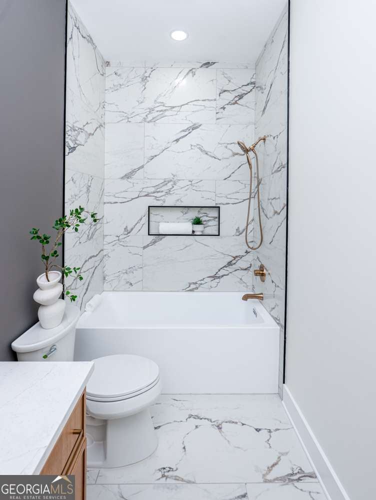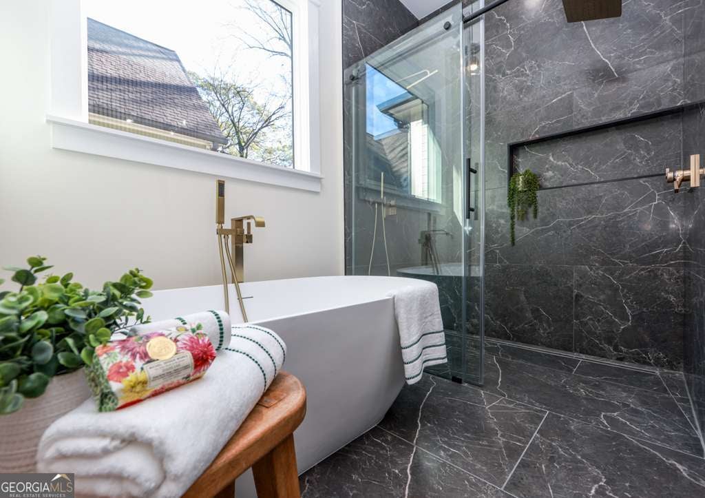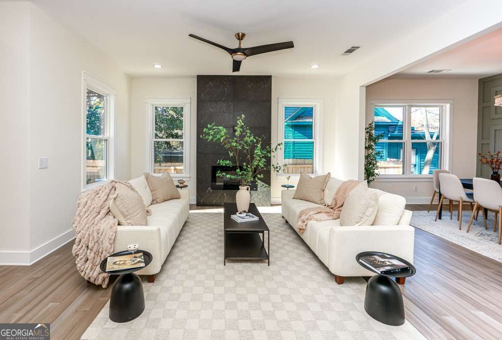 A 1920 classic, Fully Rebuilt from the foundation up in 2025-offering a true New-construction feel in one of Atlanta's coolest, most walkable neighborhoods! This stunning EAV home features 3 Brdms, 2 Full Bathrooms, a dedicated Home Office/Studio with modern glass doors, and approximately 2,090 sq ft of thoughtfully designed living space.The bright open-concept layout is perfect for entertaining and showcases designer details throughout, including a Modern fireplace accent wall and a stylish dining space.The chef's kitchen offers custom cabinetry, SS Appliances, and oversized island with seating.The primary suite is a true retreat with a custom walk-in closet and a spa-like inspired bathroom featuring a freestanding tub and oversized walk-in shower. Enjoy outdoor living with a covered front porch, a private driveway with off-street parking, and a large fenced backyard with deck- just a short walk to East Atlanta Village restaurants, coffee shops, nightlife , and local favorites plus minutes to the BeltLine, Madison Yards, Marta and I-20.