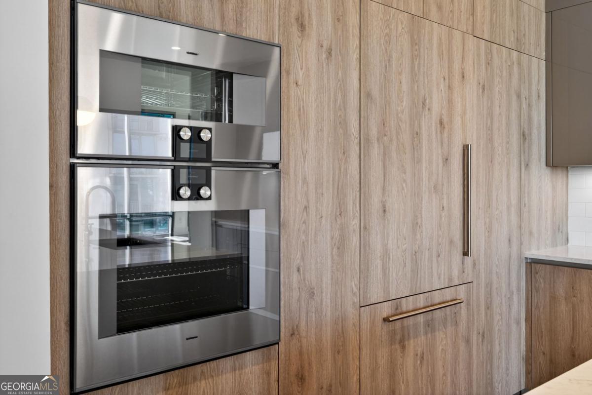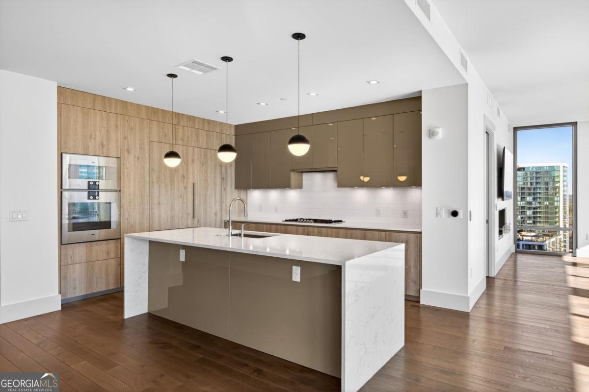 Welcome to The Charles, a luxury boutique condominium offering just 56 exclusive residences in the heart of Buckhead. The Charles caters to the discerning owner seeking concierge services, high-end finishes, and an unbeatable walkable lifestyle - steps from Buckhead's premier dining, shopping, markets, and entertainment. Residence 1504 is a corner home featuring 2 bedrooms, 2.5 bathrooms, plus a versatile den, all spanning across 2,460 square feet of thoughtfully designed living space. The den easily functions as a sitting room, home office, or a third bedroom offering flexibility to suit your lifestyle. The chef's kitchen, complete with a wet bar, features Cambria quartz countertops with a waterfall island, Pedini cabinetry, and a full suite of Gaggenau appliances including refrigerator, convection oven, steam oven, gas cooktop, wine tower, microwave, and dishwasher. The expansive living and dining area is ideal for entertaining and is highlighted by a sleek ventless fireplace and three walls of floor-to-ceiling windows showcasing views of downtown Atlanta, Stone Mountain, and the Buckhead skyline. Retract the NanaWall door system to extend the living and dining space onto a covered terrace featuring a fireplace, television, gas grill, and ample space for lounge seating - perfect for indoor-outdoor living year-round! The primary suite offers downtown Atlanta views and direct access to the covered terrace. The primary ensuite bathroom features Pedini cabinetry, double vanities, water closet, frameless glass shower, Victoria + Albert soaking tub, and a walk-in closet with custom built-ins. The second bedroom provides guests with a private balcony, walk-in closet, and ensuite bathroom with double vanities. The den conveniently connects to the guest ensuite bath thereby enhancing its functionality. Soaring 10-foot ceilings, wood flooring, and automatic roller shades throughout! The residence includes a temperature-controlled storage unit and two adjacent parking spaces with an electric car charger connection. The Charles' 8th-floor amenity level is the heart of the building, offering a club room, guest suite, standalone fitness center, dog walk, outdoor seating with fire pits, and an infinity-edge-style pool. Residents enjoy 24-hour concierge service and valet parking for a truly elevated living experience.