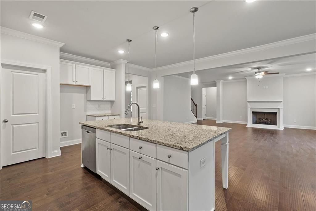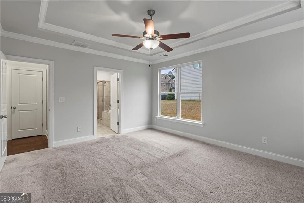 Welcome to 3455 Spring Place Ct, a beautifully designed home in one of Loganville's most desirable swim/tennis communities. This spacious residence offers the perfect blend of comfort, style, and functionality - all in a prime location. Step onto the charming covered front porch, ideal for morning coffee or quiet evenings. Inside, you'll find a thoughtfully planned layout featuring a master suite on the main level. The master bath impresses with a double vanity, separate shower and soaking tub, and an oversized walk-in closet offering exceptional storage. The home boasts a separate dining room perfect for entertaining, while the living room with a cozy gas fireplace flows seamlessly into the open-concept kitchen. The kitchen is a chef's dream, complete with granite countertops, a gas cooktop, double ovens, and a large island with a breakfast bar. Enjoy outdoor living on the covered back porch, overlooking a private backyard - ideal for grilling, gatherings, or relaxing. Upstairs, you're greeted by a massive loft, perfect as a second living area, playroom, office, or media space. The upper level features three bright, spacious bedrooms, including one with its own en-suite bathroom. Additional highlights include a 2-car garage, excellent natural light throughout, and access to top-notch community amenities including swim and tennis facilities. Only minutes from public parks, shopping, dining and US78. This home truly has it all - space, style, and location. Don't miss the opportunity to make it yours!