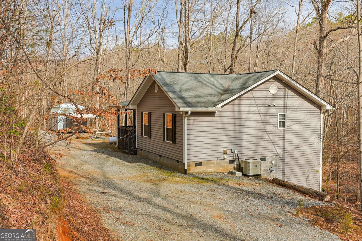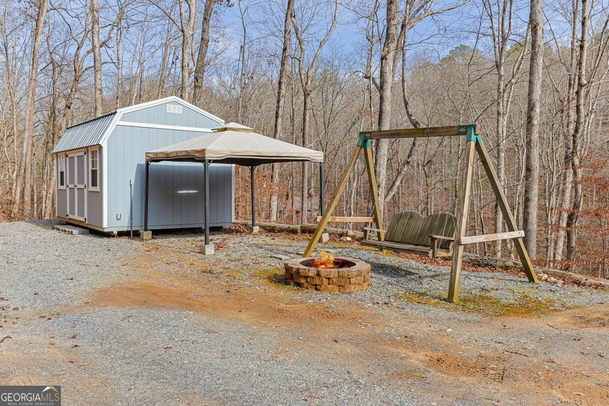 Tucked away on 2.93 private acres within a gated community, this charming 2-bedroom, 2-bath home offers peaceful, one-level living surrounded by nature. Thoughtfully designed, the home includes a small study or hobby space, perfect for working from home, crafting, or quiet reflection. Inside, wood floors and a stone fireplace create warmth and character, making the living area a cozy place to gather year-round. with Plenty of Closet space there is plenty of room in the cozy home. Step outside onto the deck overlooking a lively spring, where the soothing sound of flowing water and wooded views provide a true sense of retreat. The property is well-equipped for outdoor living and projects, featuring a work shed, covered canopy for equipment or additional workspace, and an inviting fire pit for evenings under the stars. With all living spaces on one level, this home is both comfortable and convenient. Whether you're seeking privacy, a nature-focused lifestyle, or a low-maintenance mountain escape, this property offers a rare combination of seclusion, function, natural beauty and all the amenities of Coosawattee River Resort
