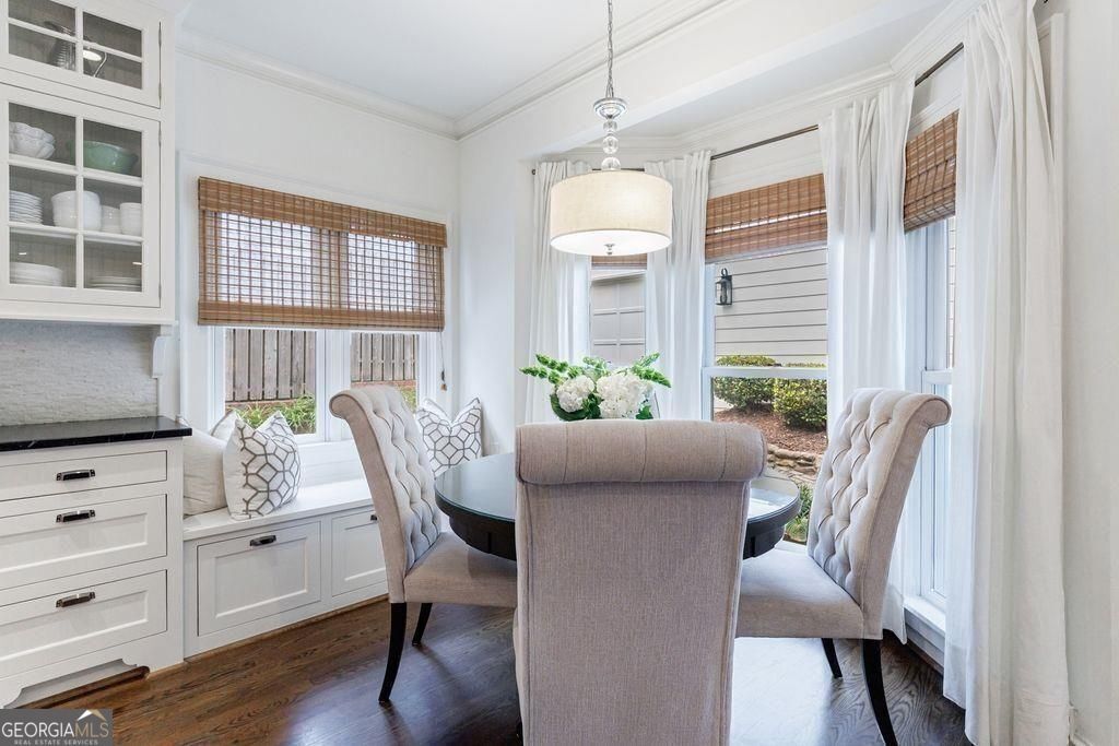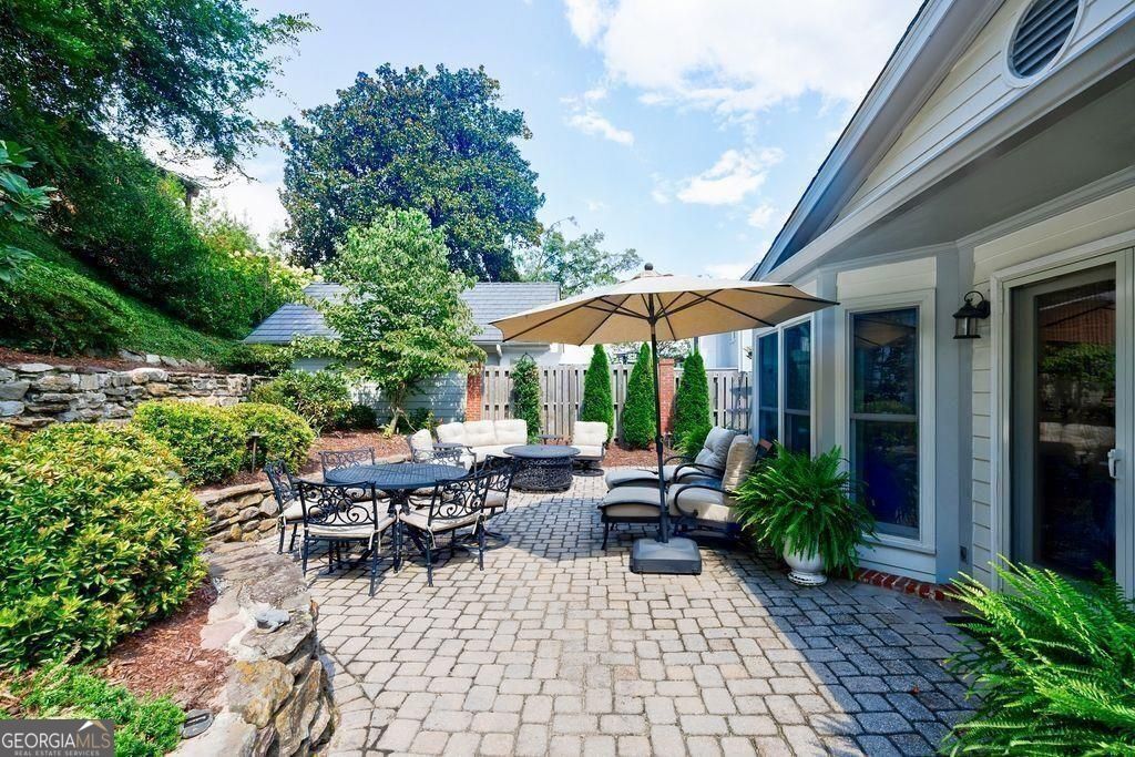 Located in coveted Brookwood Hills. This neighborhood is known for its exclusivity, tree-lined sidewalks, timeless architecture and great amenities. 42 Camden captures the most discerning buyer's attention the moment they walk through the door. This beauty captivates the eye with its elegant tone, high ceilings, arched doorways and Nancy Myers' inspired kitchen. The main level was designed for gathering-with the bright and inviting open floor plan, thoughtfully designed for both everyday living and effortless entertaining. Two fireside living areas flow seamlessly into the dining space and designer kitchen, creating a warm and connected atmosphere. Expansive windows fill the rooms with natural light, while the open design allows guests to mingle with ease. Whether hosting a gathering or enjoying a quiet evening in, the layout encourages connection and conversation, all while offering plenty of room to relax and entertain in style. Upstairs, the owner's suite is spacious and inviting. A walk-in closet provides ample storage and organization, while the spa-like bath with vaulted ceiling features dual vanities, heated floors, a soaking tub, and a separate glass-enclosed shower. There are two additional spacious bedrooms (one with an en-suite bath). From the fireside living is access to the professionally landscaped outdoor living/dining area, vegetable garden and the detached garage which offers plenty of storage. The owners use the unfinished basement for storage and home gym. Voluntary membership at the Brookwood Hills Community Club is available immediately to neighborhood residents. Close proximity to high-end shopping, dining, Beltline, excellent schools and interstate.