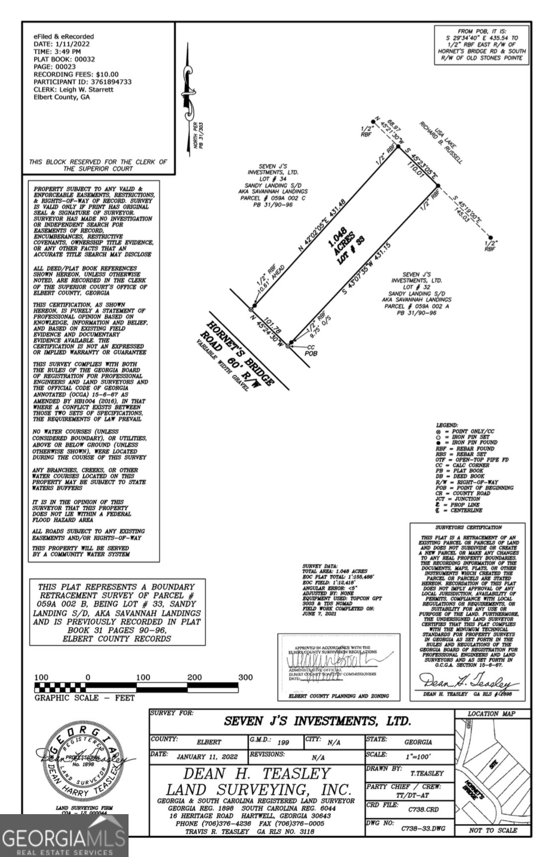 OWNER FINANCING AVAILABLE! If you're looking for privacy, tranquility and lake life, this 1.048 acres in a gated lake community checks all the boxes. Build your dream house and enjoy the amazing views of Lake Russel from your backyard. This lot has a very clear and smooth path all the way to the water's edge. Only a short drive to play golf on one of the top 10 courses in Georgia at Richard B Russell State Park. Electricity is available, and a community water system is in place. Call today to see this amazing property! The adjoining lot can also be purchased. See covenants and all info at www.savannahlandings.org HOA Fees are $250 per year per lot. lot #33