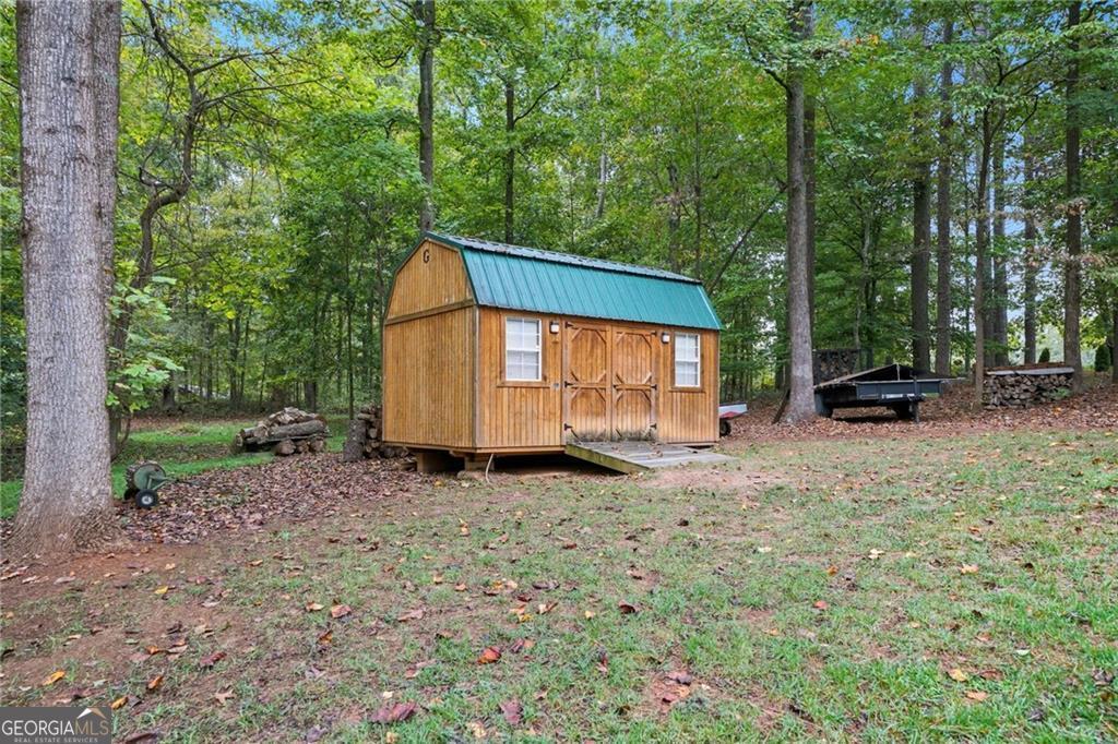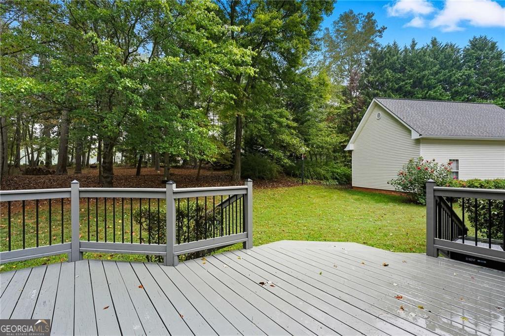 Custom-built, ONE-LEVEL LIVING on 2.04 PRIVATE ACRES in a PRIME ALPHARETTA LOCATION WITH CHEROKEE COUNTY TAXES, this FOUR-SIDED BRICK home offers an exceptional blend of privacy, space, and functionality. The OVERSIZED VAULTED LIVING ROOM feels open and inviting and flows into the EAT-IN KITCHEN with NATURAL WOOD CABINETRY, HARDWOOD FLOORS, a LARGE ISLAND WITH STORAGE, and DOUBLE PANTRIES, while a GAS LOG FIREPLACE anchors the main living space. Outdoor living includes an OVERSIZED DECK overlooking a LEVEL, PRIVATE BACKYARD WITH SHED and a LARGE ROCKING-CHAIR FRONT PORCH offering classic Southern charm. The home features THREE BEDROOMS AND TWO FULL BATHS, including an OVERSIZED PRIMARY SUITE with TRAY CEILING, HIS AND HER WALK-IN CLOSETS, DOUBLE VANITY, SOAKING TUB, and LARGE WALK-IN SHOWER, along with TWO ADDITIONAL BEDROOMS, a full bath, and a DEDICATED LAUNDRY ROOM WITH SINK AND HANGING RACK. A LARGE WALK-IN / STAND-UP CRAWL SPACE for storage, EXTRA-LARGE FINISHED TWO-CAR GARAGE (23 X 27) ideal for a LONG-BED TRUCK, and a SEPARATE OVERSIZED GARAGE / WORKSHOP (24 X 32) suitable for a 27-FOOT RV complete this rare opportunity offering SPACE, STORAGE, AND LOCATION rarely found in this area.