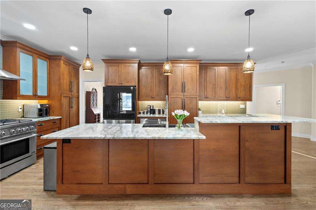 Welcome to 67 Pointer Lane in Braselton, a home where the sellers didn't just update - they elevated. All the homes in the community are on @ 1+ acres (or larger properties) and the houses are graciously spaced. Fantastic Opportunity! Seller has an assumable mortgage with a balance of $296,000 @ 3%. You'll just need to pay the difference of Purchase Price and assumable mortgage amount. The heart of the home is the beautifully renovated kitchen featuring quartz countertops, rich custom-stained shaker style cabinetry with oil-rubbed bronze hardware. This chef's kitchen also offers (2) 36" pantry cabinets, a 2-tier island, custom glass tile backsplash, farm sink, and stainless steel appliances highlighted by a 36" JennAir stove and elegant range hood - a clean, modern look that still feels warm and inviting. Beyond the finishes, the sellers added approximately 300 square feet to the rear of the home, creating an oversized eat-in / dining area with skylights that flows seamlessly alongside the keeping room and kitchen - perfect for daily living, entertaining, and those "everyone ends up in the kitchen" moments. Situated on a cul-de-sac lot just under an acre, this property offers the rare advantage of two separate driveways and three garage spaces. The main driveway leads to a two-car garage, while the side driveway features a one-car garage with private access to the basement workshop / man cave, ideal for hobbies, projects, or flexible living. A charming walkway leads to the impressive entrance with double front doors and a brick porch accented by stone and wood railings. Inside, you're welcomed by a two-story foyer with hardwood floors and staircase, and a formal dining room showcasing crown molding, tray ceiling, and wainscoting, setting the stage for memorable gatherings. Convenient access to the garage and a half bath sits just off the main living area before opening into a bright family room with fireplace and a wall of windows, flowing effortlessly into the expanded kitchen and keeping room with a second fireplace and abundant natural light. The open layout delivers excellent flow for both intimate evenings and larger celebrations. Step outside through double doors to enjoy exceptional outdoor living with a 15x15 covered deck with ceiling fan, lattice privacy panel, and recessed lighting, plus an expansive 20x40 uncovered deck overlooking a fenced, wooded backyard backing to a peaceful farm, offering privacy, tranquility, and beautiful natural views. Upstairs features the laundry room, three spacious secondary bedrooms, and a full bath. The oversized primary suite is a true retreat with an updated bath including a tiled shower with frameless glass enclosure, Jacuzzi tub, Moen faucetry, and a two-room walk-in closet nearly the size of a bedroom with custom built-in cabinetry and Island. The basement adds incredible versatility. It's stubbed for a bath and has a large office / game room, workshop or man cave space, utility room, and a third garage bay with direct access from the second driveway and exterior entry, making it ideal for storage, projects, or multi-generational living. Major systems and improvements provide peace of mind, including two HVAC units (2024) and architectural roof less than two years old, water heater approximately four years old, hardwood floors refinished in 2021, full kitchen renovation in 2021, deck additions in 2022, and primary shower remodel in 2024. Located in vibrant Braselton, you'll enjoy easy access to local restaurants, parks, community events, walking trails, and quick access to I-85 and major highways, making commuting and weekend adventures effortless. 67 Pointer Lane delivers thoughtful upgrades, exceptional space, privacy, and a lifestyle that truly elevates everyday living.